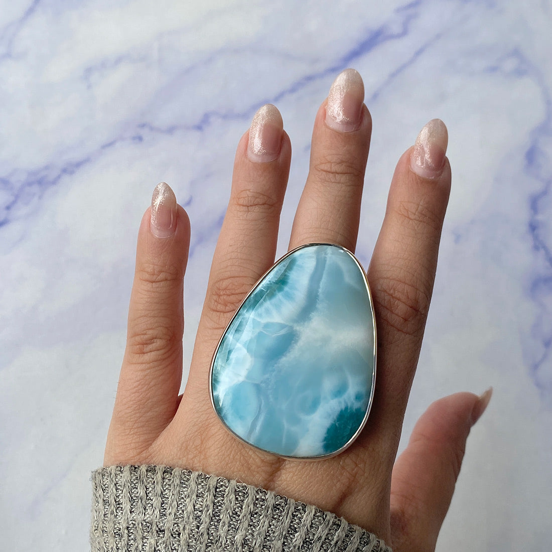 Ocean's Serenity: Sterling Silver Statement Larimar Rings