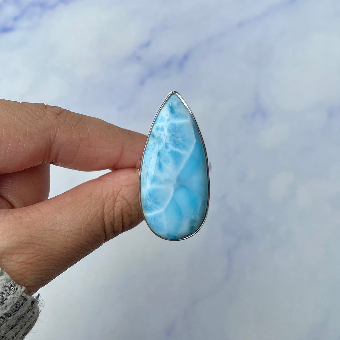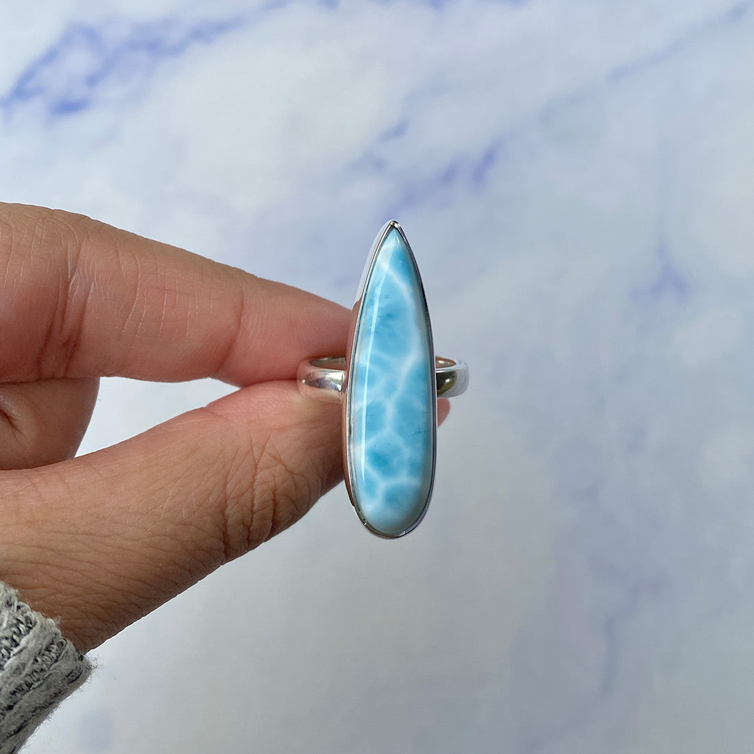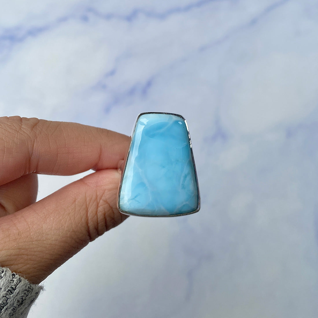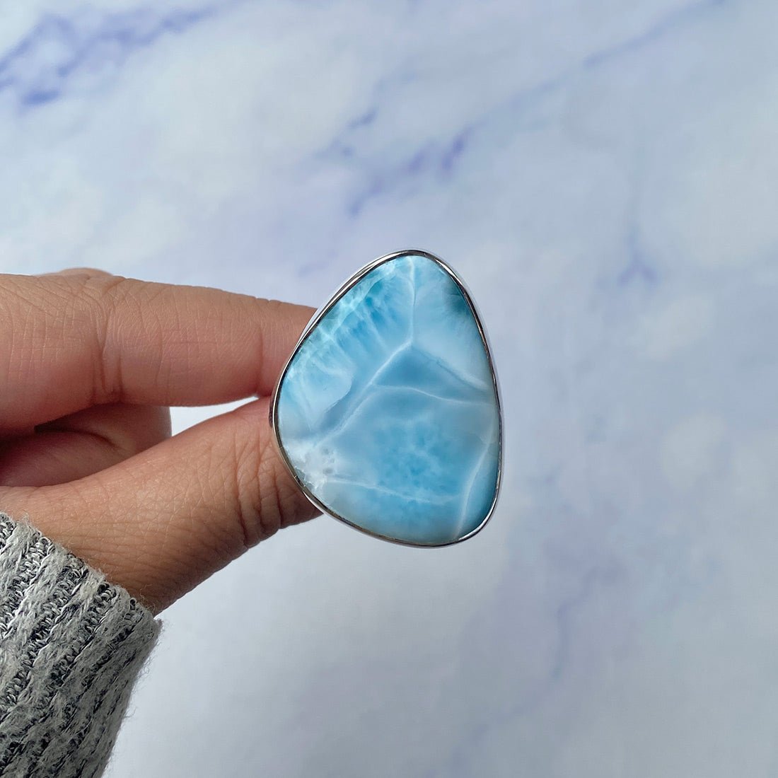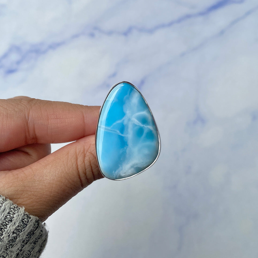 Larimar rings are thought to provide a number of therapeutic benefits. It is claimed to give relaxation and lessen tension and anxiety in the wearer by having a calming and soothing impact. Larimar's stunning blue hue is frequently connected to the sky and the ocean, fostering calm and peace. Some people think that wearing Larimar jewelry, such as Larimar bracelets, earrings, Larimar pendants, and necklaces, can aid in calming the mind and promoting inner peace.