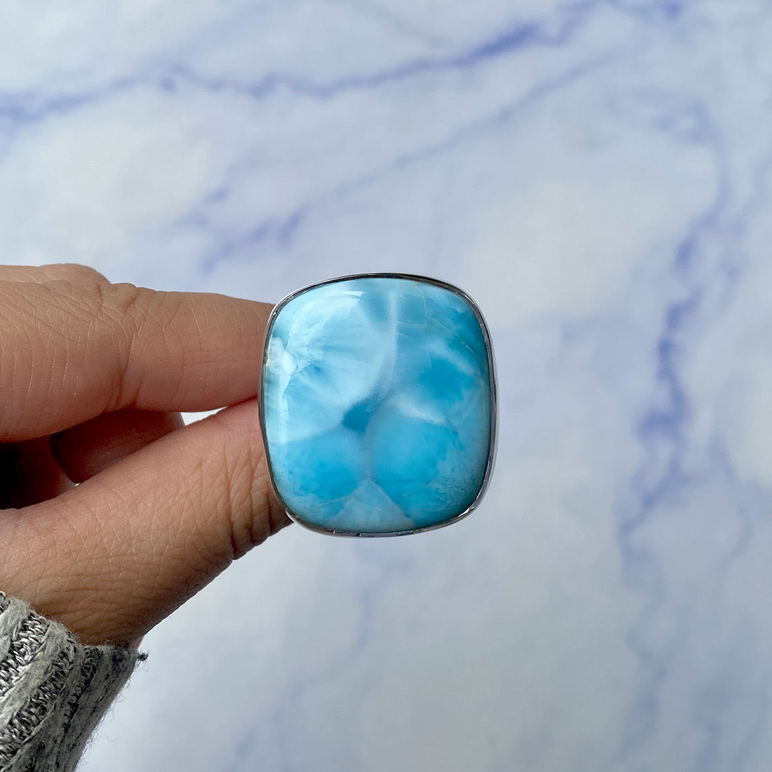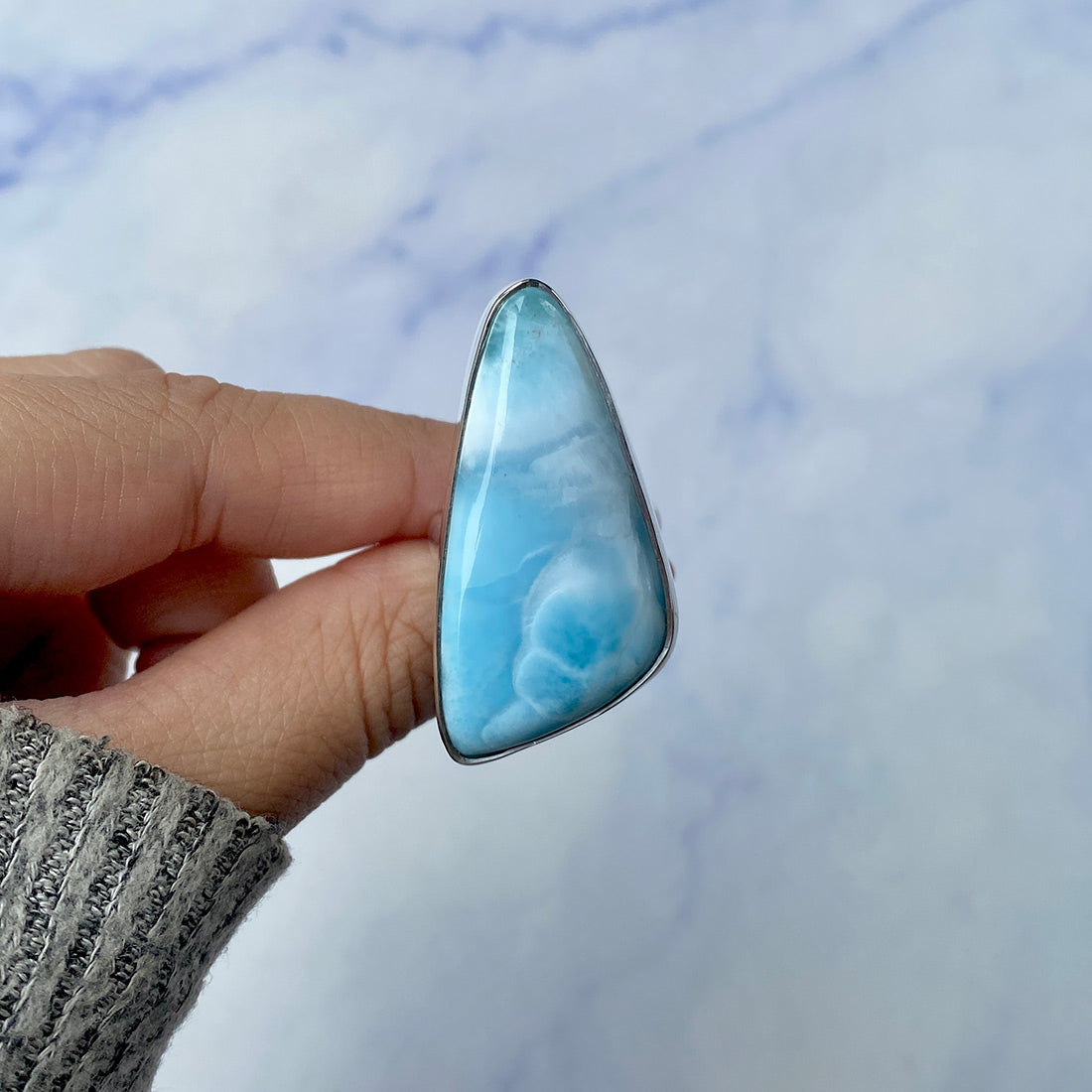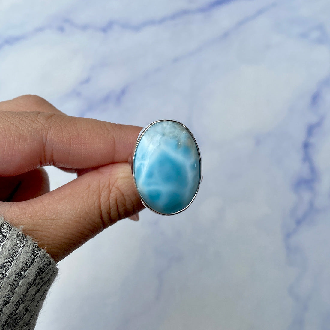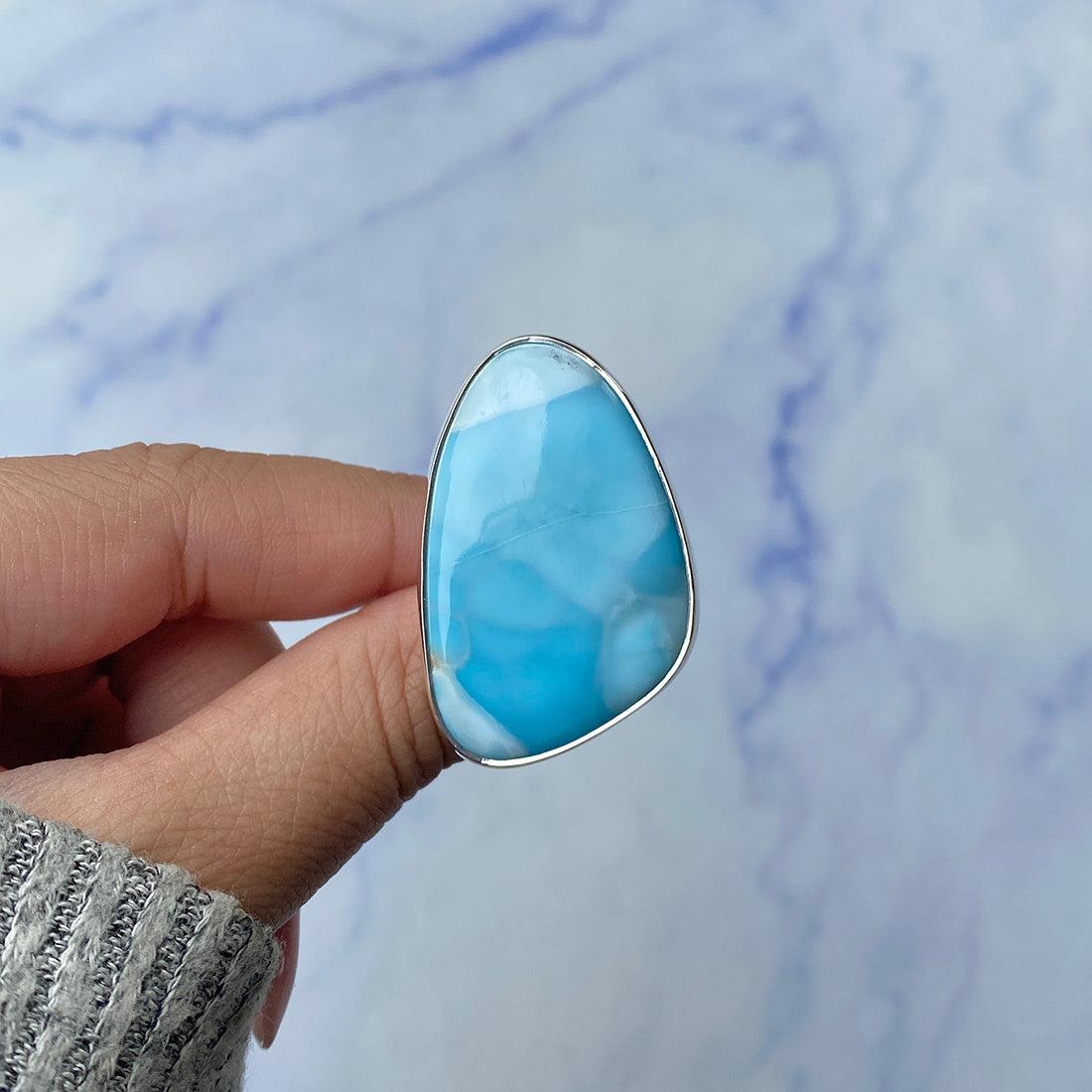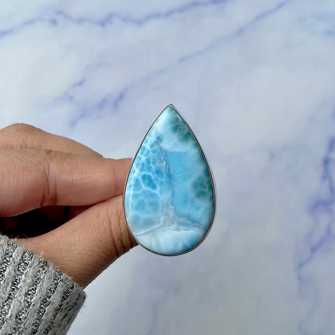 Larimar rings are thought to provide a number of therapeutic benefits. It is claimed to give relaxation and lessen tension and anxiety in the wearer by having a calming and soothing impact. Larimar's stunning blue hue is frequently connected to the sky and the ocean, fostering calm and peace. Some people think that wearing Larimar jewelry, such as Larimar bracelets, earrings, Larimar pendants, and necklaces, can aid in calming the mind and promoting inner peace.