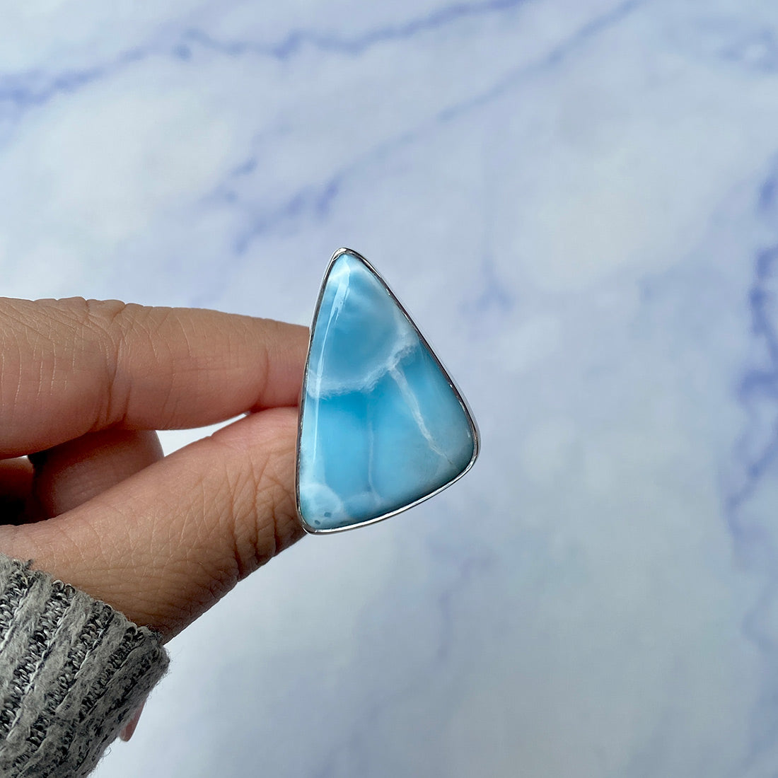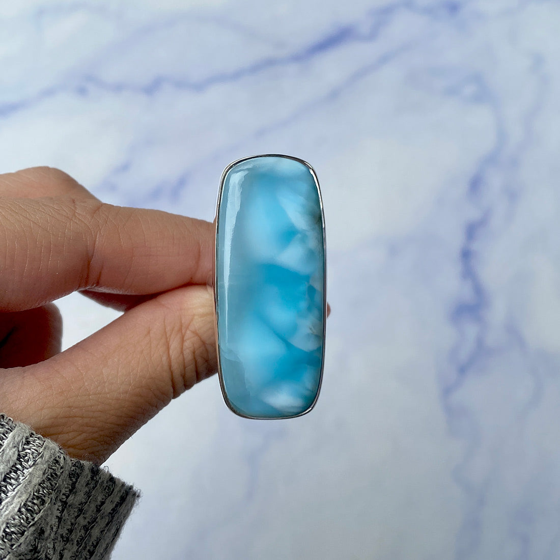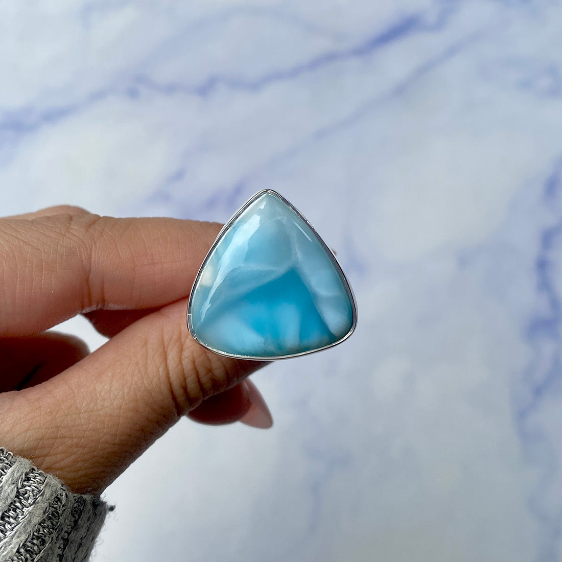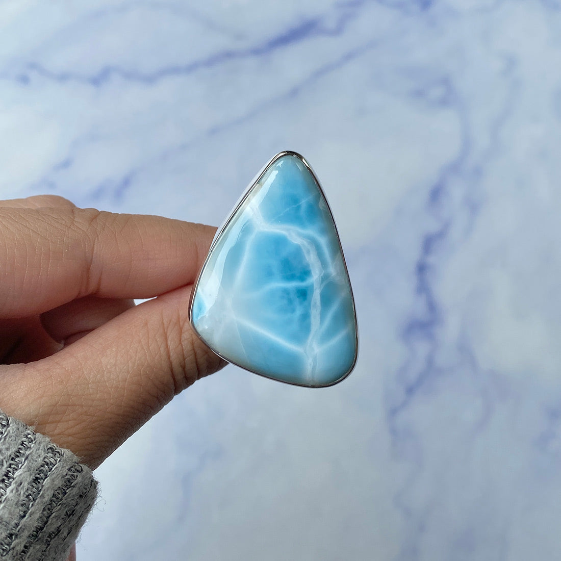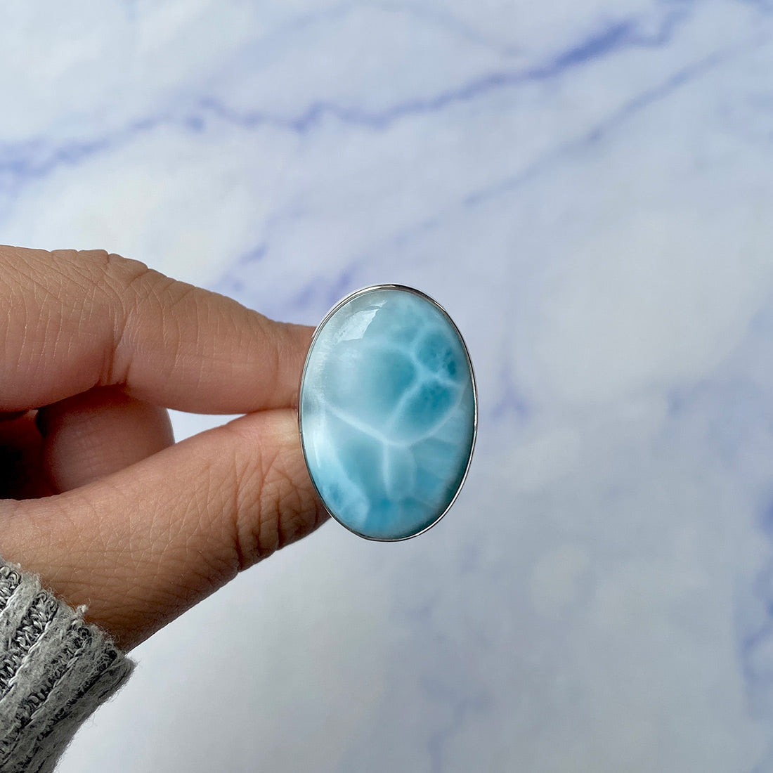 Larimar rings are thought to provide a number of therapeutic benefits. It is claimed to give relaxation and lessen tension and anxiety in the wearer by having a calming and soothing impact. Larimar's stunning blue hue is frequently connected to the sky and the ocean, fostering calm and peace. Some people think that wearing Larimar jewelry, such as Larimar bracelets, earrings, Larimar pendants, and necklaces, can aid in calming the mind and promoting inner peace.