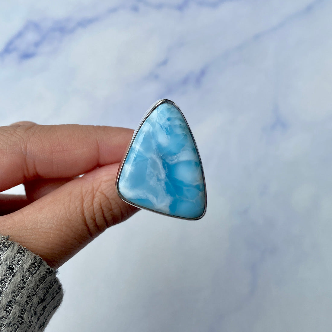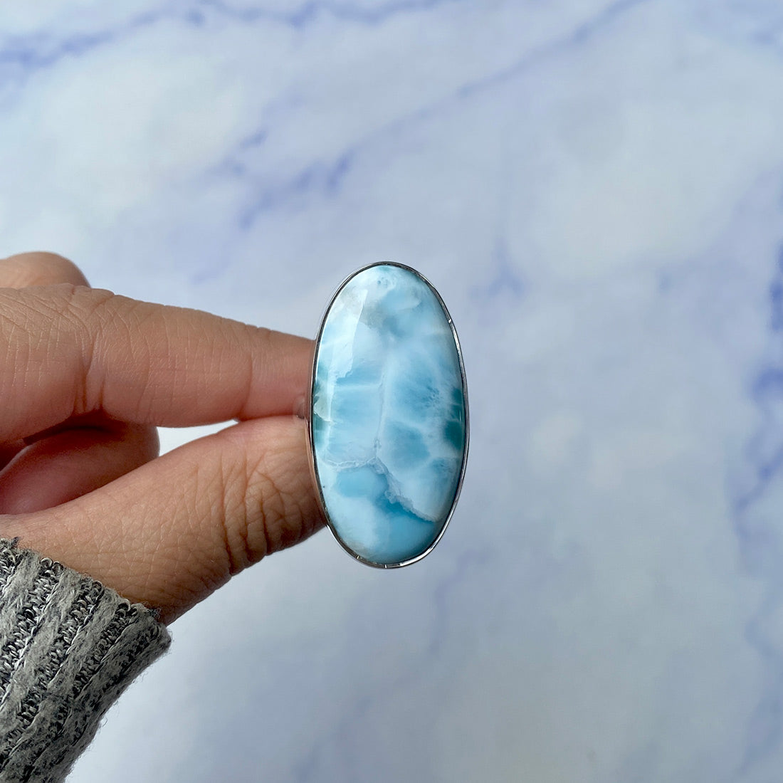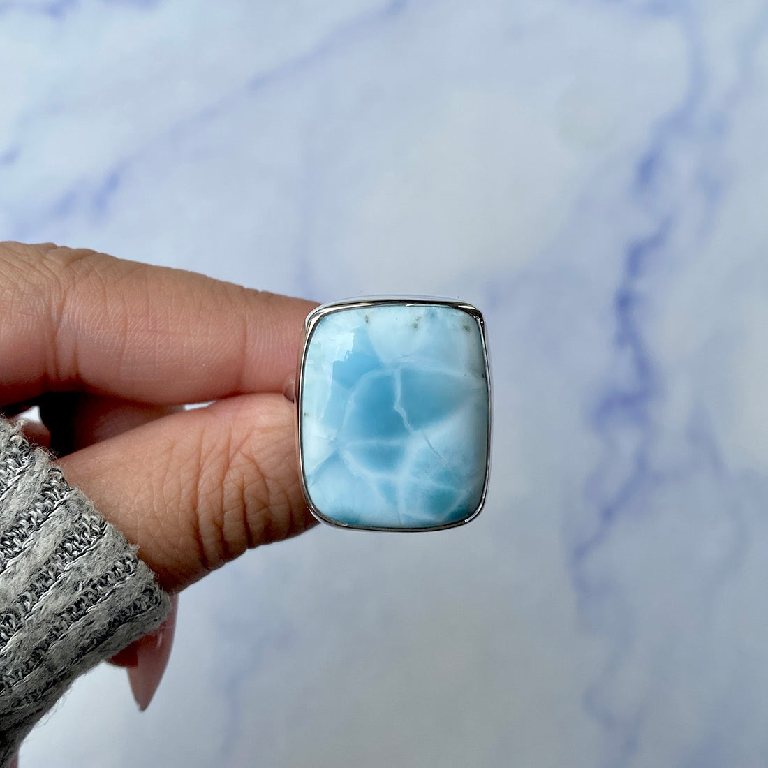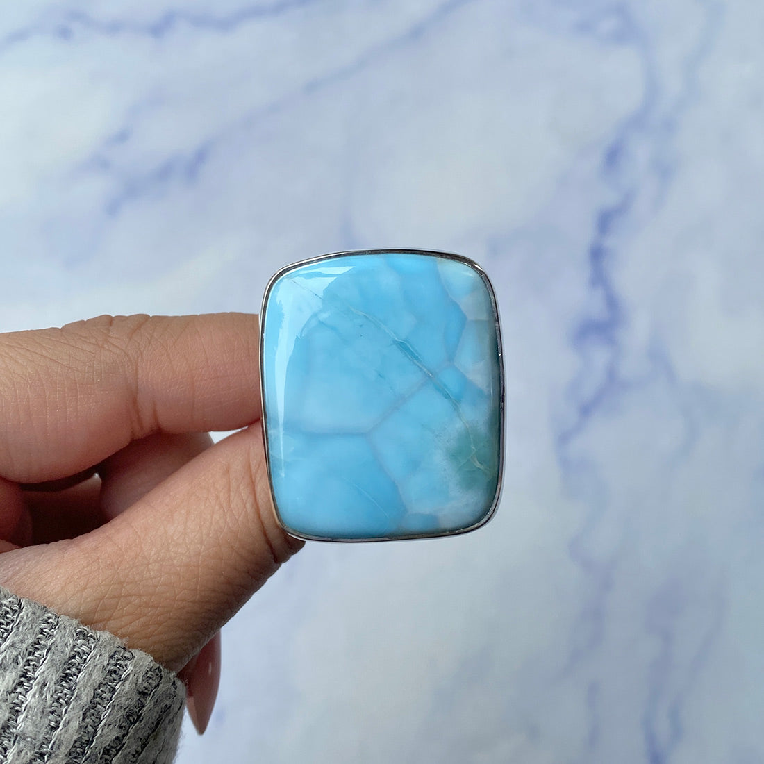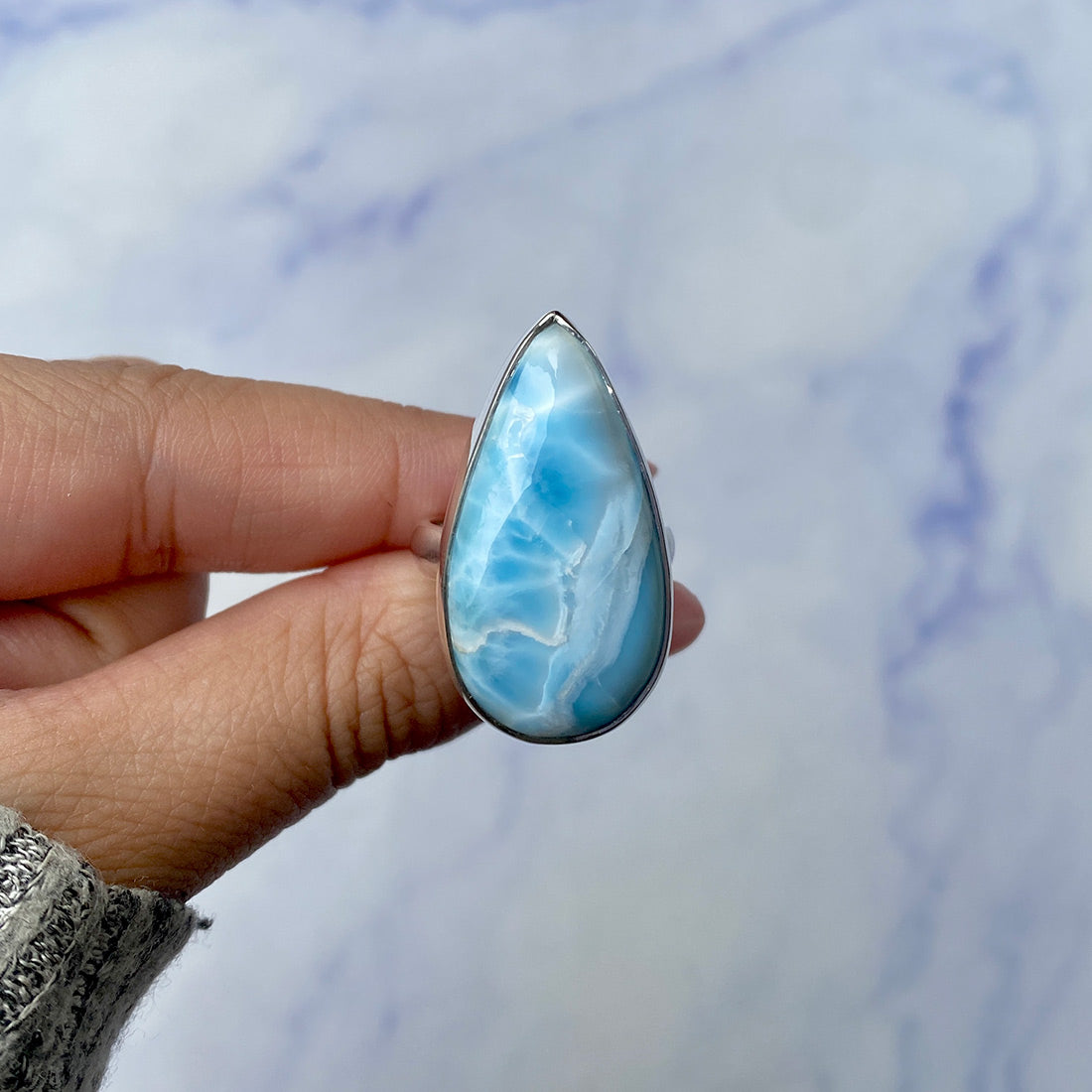 Larimar rings are thought to provide a number of therapeutic benefits. It is claimed to give relaxation and lessen tension and anxiety in the wearer by having a calming and soothing impact. Larimar's stunning blue hue is frequently connected to the sky and the ocean, fostering calm and peace. Some people think that wearing Larimar jewelry, such as Larimar bracelets, earrings, Larimar pendants, and necklaces, can aid in calming the mind and promoting inner peace.