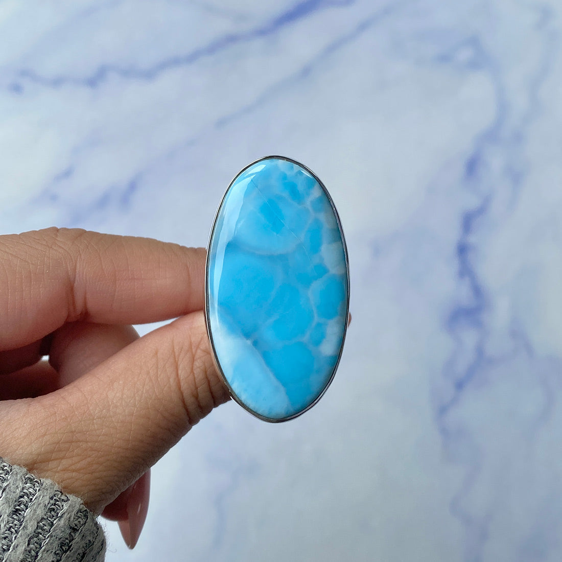 Ocean's Serenity: Sterling Silver Statement Larimar Rings