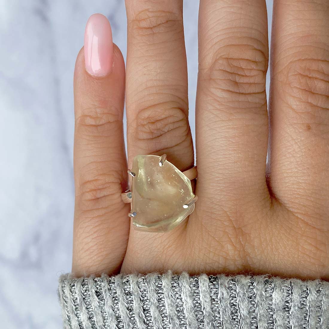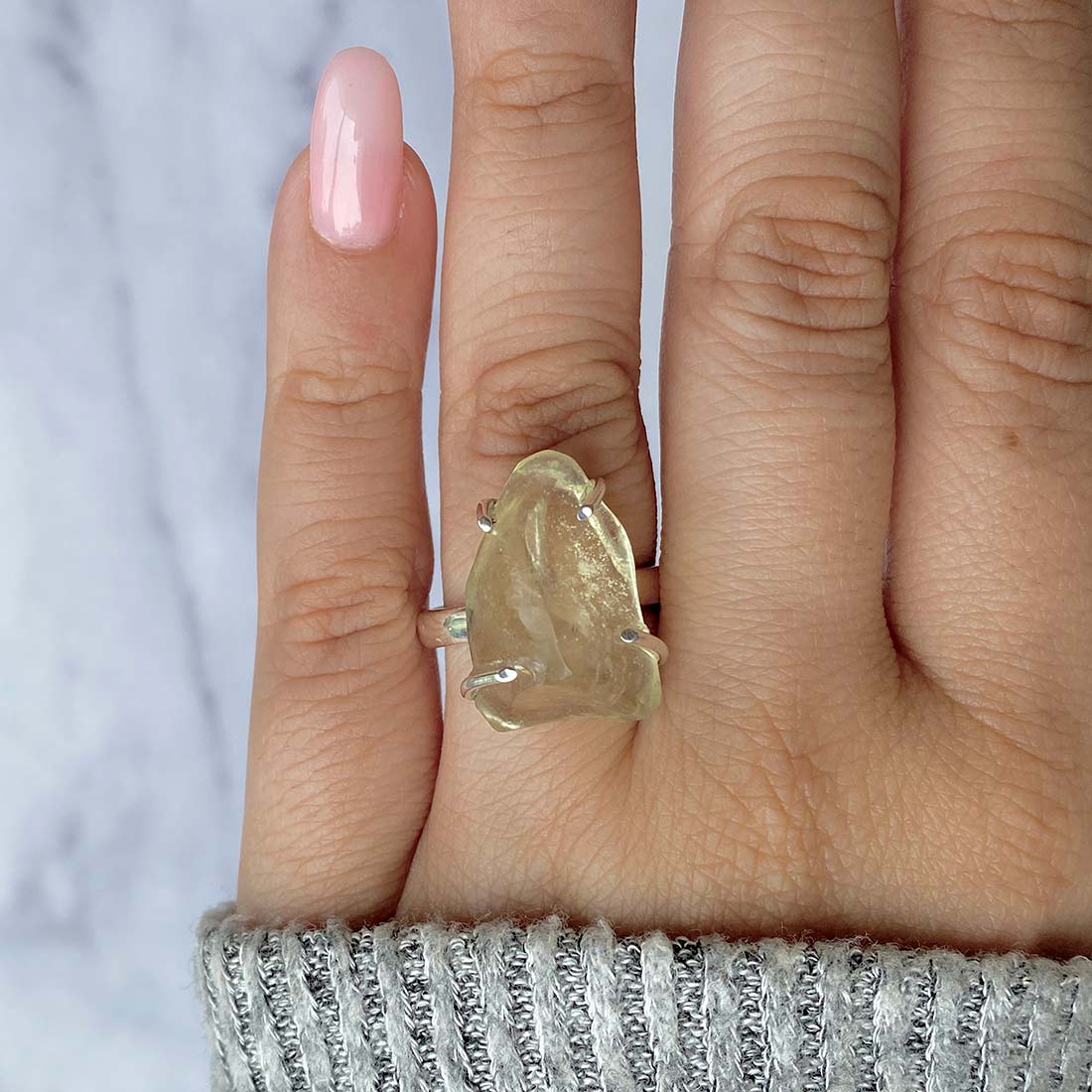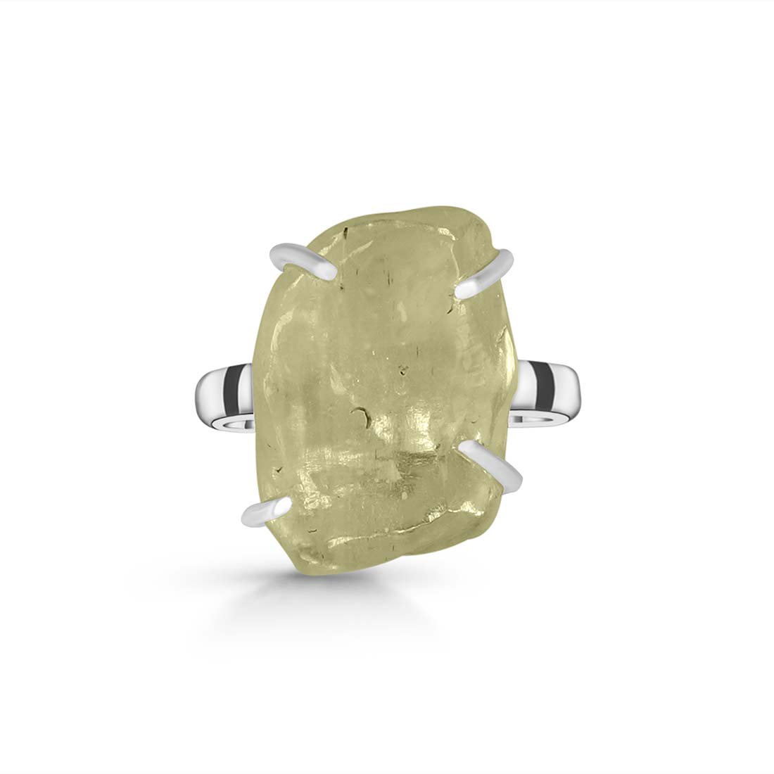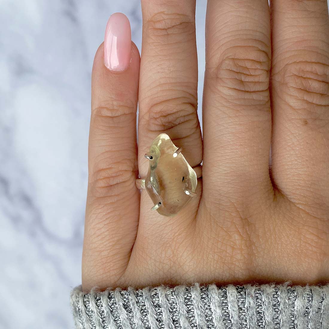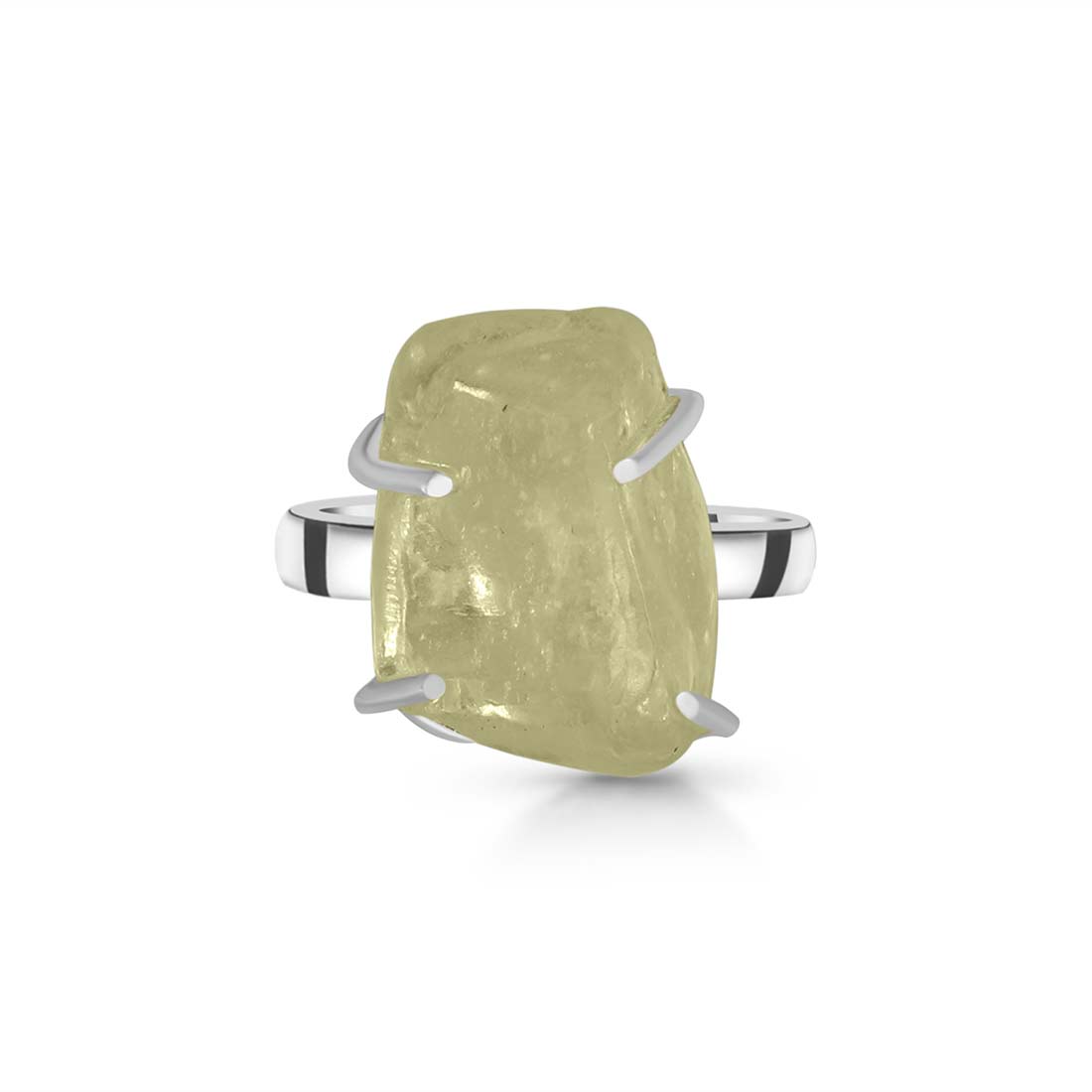 This rare gold, yellow-tinged Tektite contains higher levels of silica, aluminum, and iron oxides, along with trace amounts of elements like titanium, nickel, and cobalt. This symphony of chemical properties gives the glass its transparency, strength, and durability with a 6.5–7 Mohs hardness. So, you can accessorize your Libyan Desert Glass rings on a daily basis to embrace its healing vibrations.