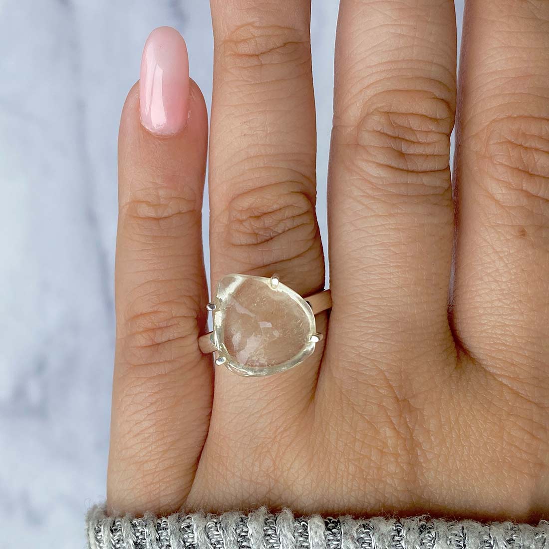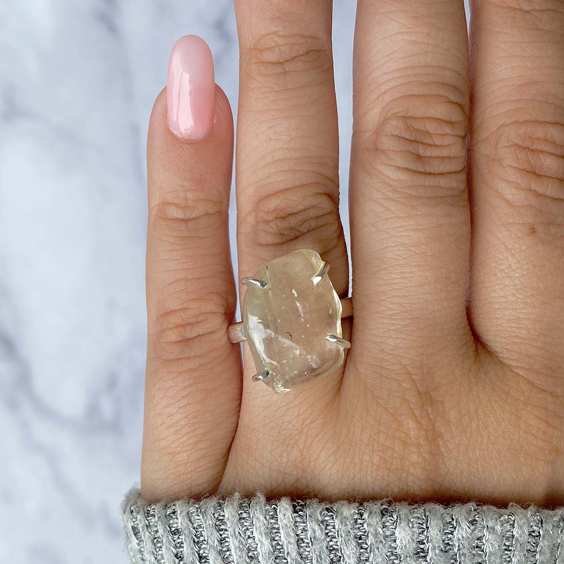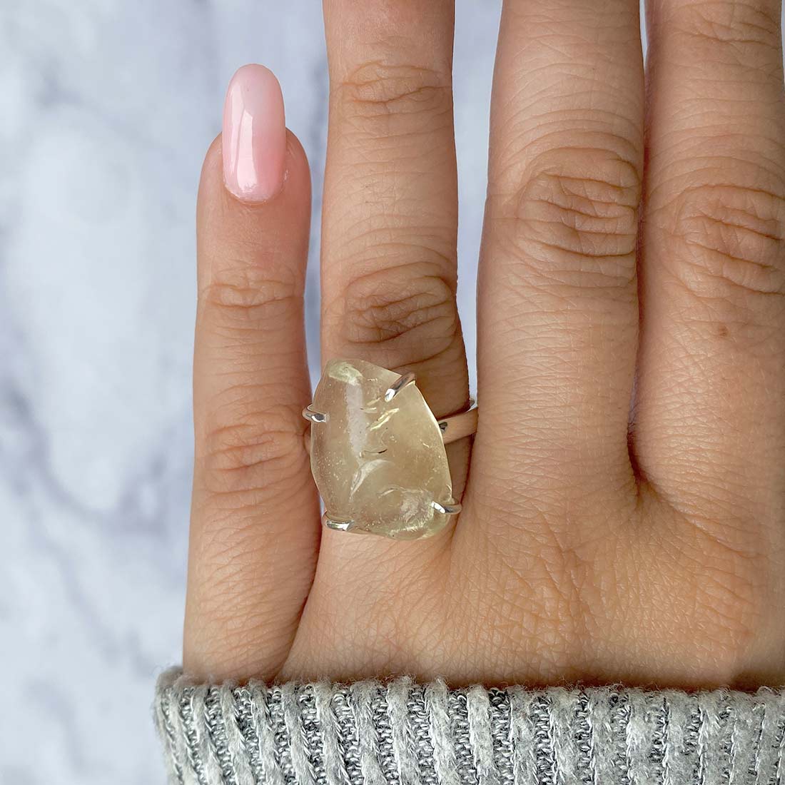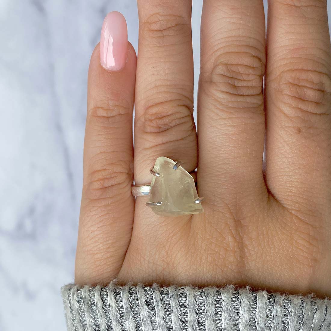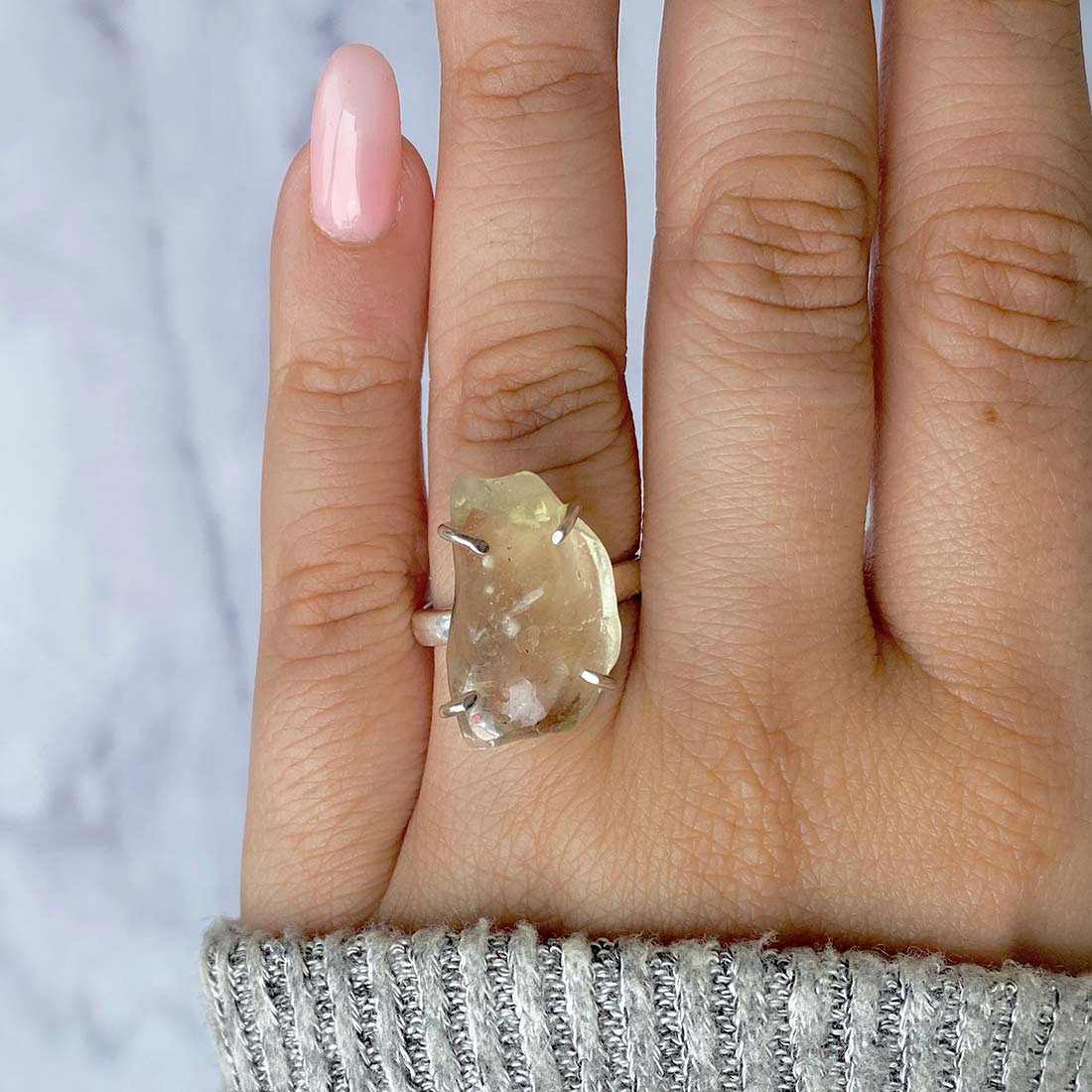 This rare gold, yellow-tinged Tektite contains higher levels of silica, aluminum, and iron oxides, along with trace amounts of elements like titanium, nickel, and cobalt. This symphony of chemical properties gives the glass its transparency, strength, and durability with a 6.5–7 Mohs hardness. So, you can accessorize your Libyan Desert Glass rings on a daily basis to embrace its healing vibrations.