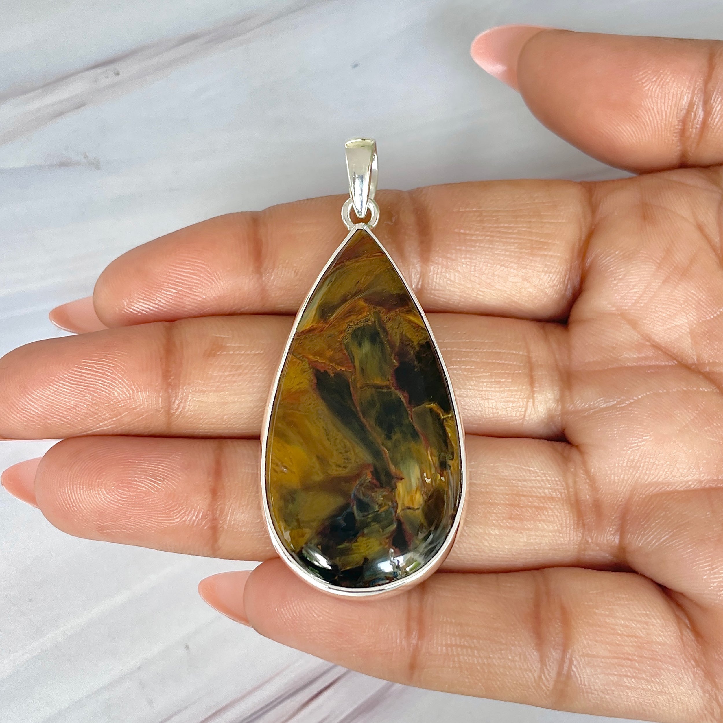 The incredibly rare and remarkable stone is most commonly found in Namibia and China. Categorized as a chalcedony stone, the distinctive gleaming golden swirls make Pietersite pendants so special and alluring. Additionally, if you are a fan of "Tiger's Eye" or "Hawk Eye", Pietersite has these qualities. That's because Pietersite comes from the Quartz family and is known as "eagle's eye."