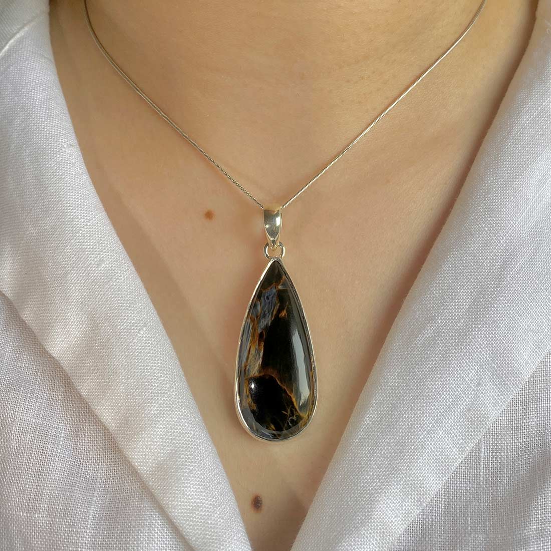Necklaces, or we say pendants, have long been a fashion statement among both men and women for a variety of reasons, serving as a symbol of grace, femininity, and individual taste. Some accessories do more than complement an attire, and pendants are one of them, especially pietersite pendants. Whether you want to add them for a formal outfit or layer them with other dainty chains to create a bold and eye-catching look, they are a great way to stand out in a crowd. It offers versatility with the ability to be worn in more than one way. Besides defining the beauty of the wearer's neck, it effortlessly adds flair to your outfit.