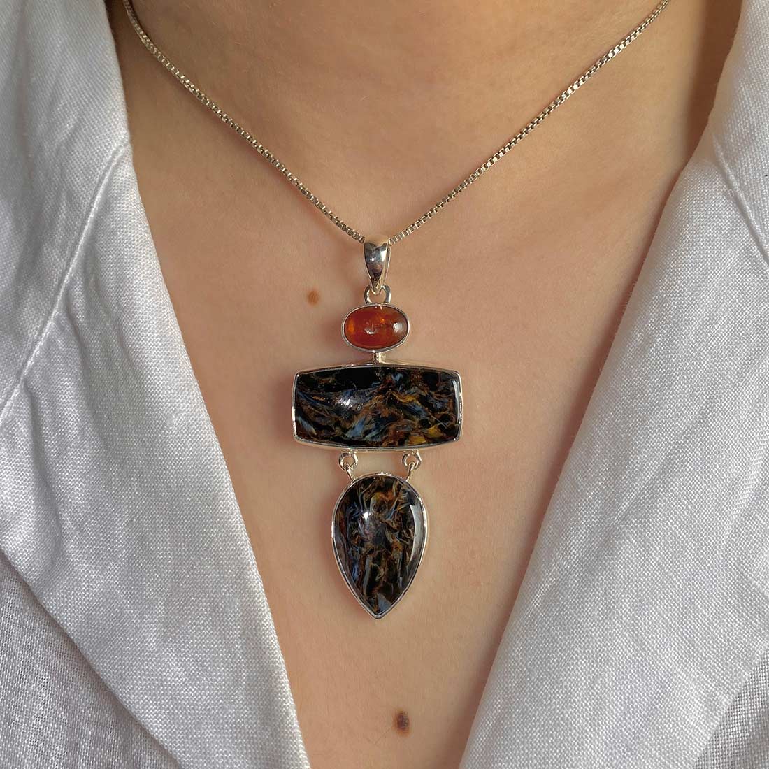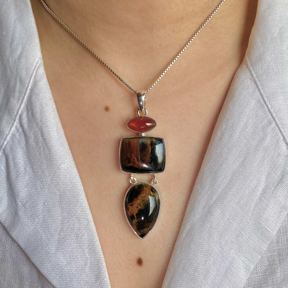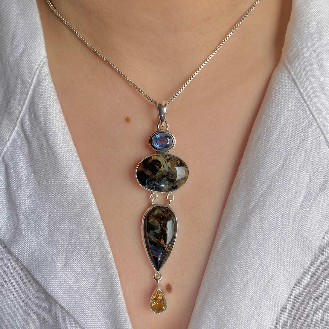 Necklaces, or we say pendants, have long been a fashion statement among both men and women for a variety of reasons, serving as a symbol of grace, femininity, and individual taste. Some accessories do more than complement an attire, and pendants are one of them, especially pietersite pendants. Whether you want to add them for a formal outfit or layer them with other dainty chains to create a bold and eye-catching look, they are a great way to stand out in a crowd. It offers versatility with the ability to be worn in more than one way. Besides defining the beauty of the wearer's neck, it effortlessly adds flair to your outfit.