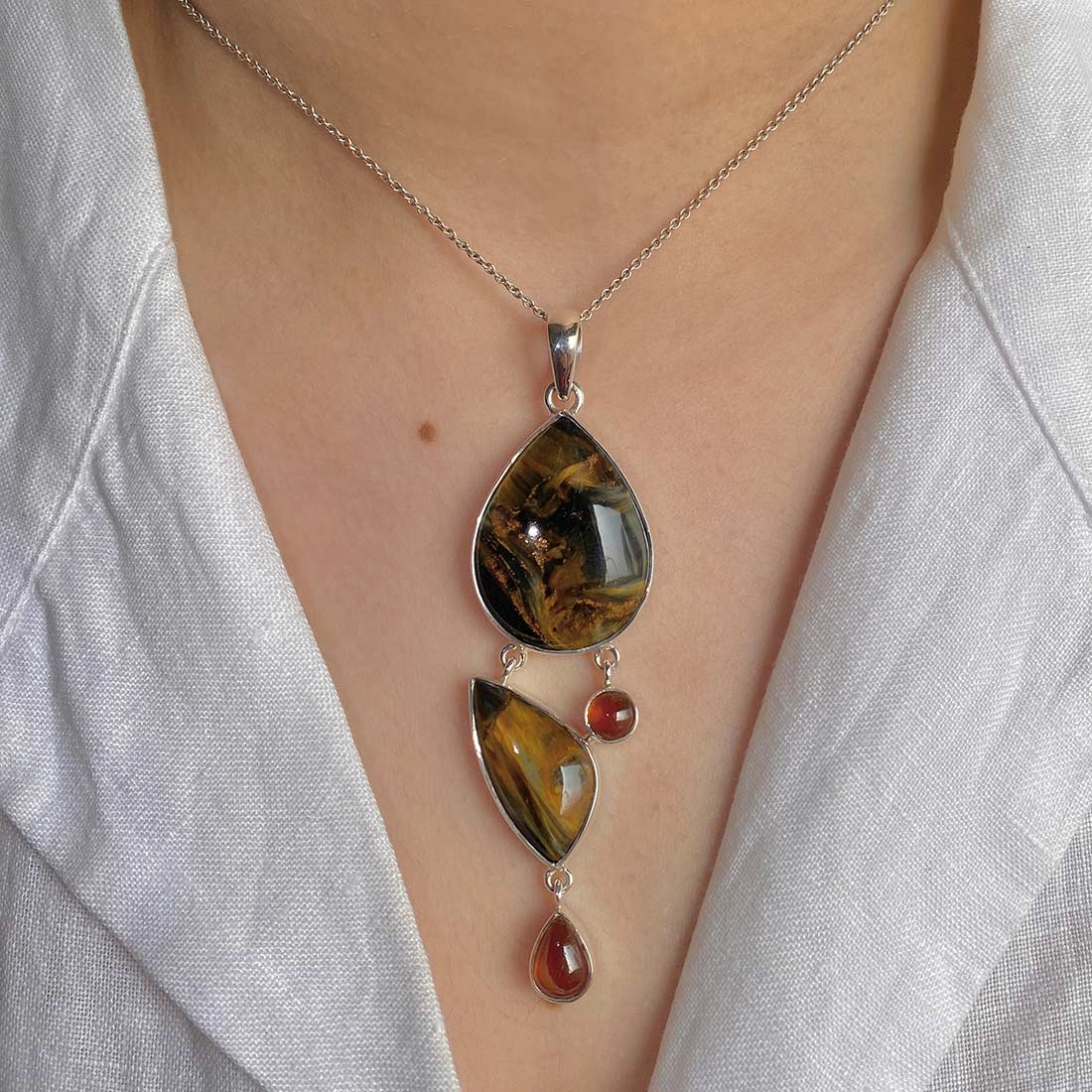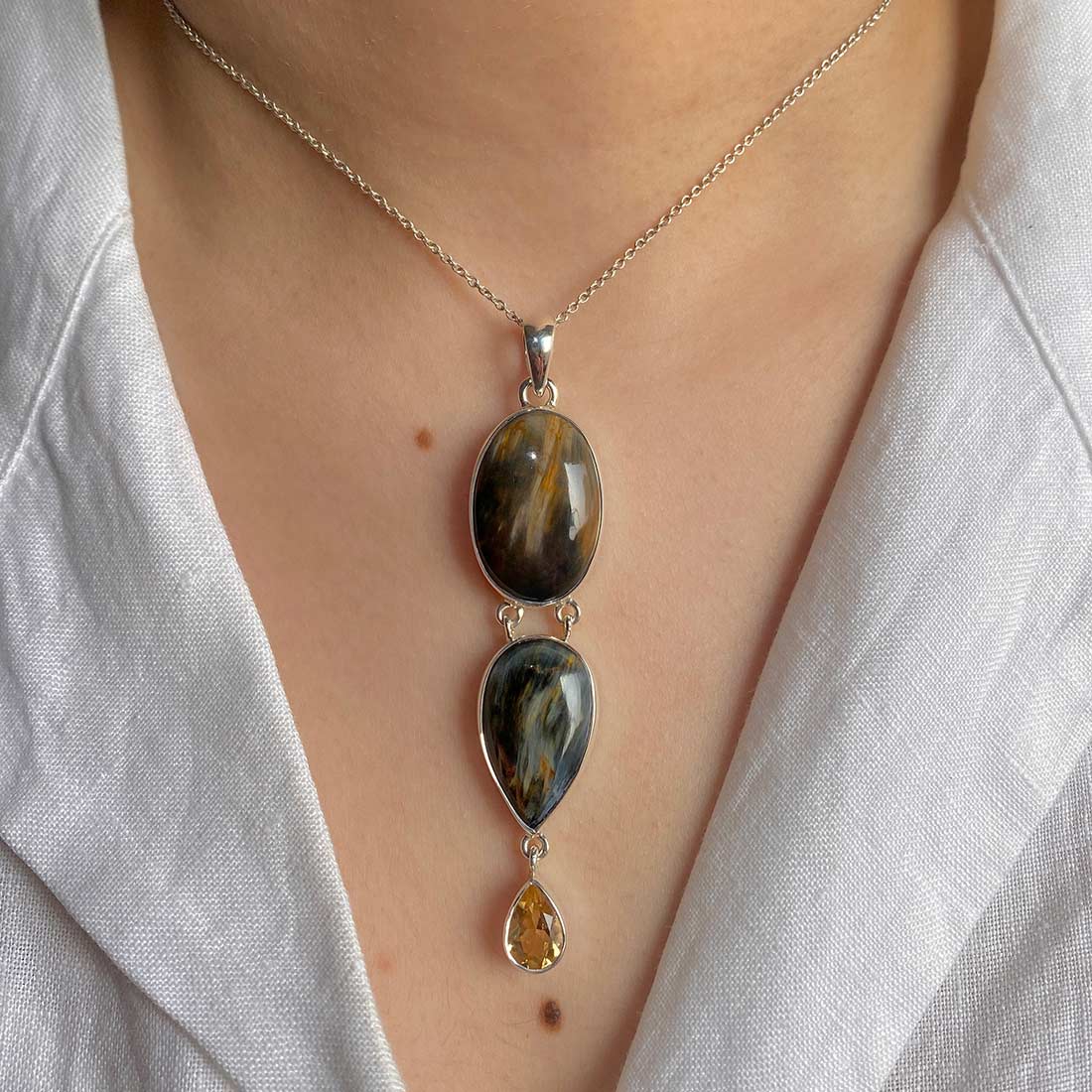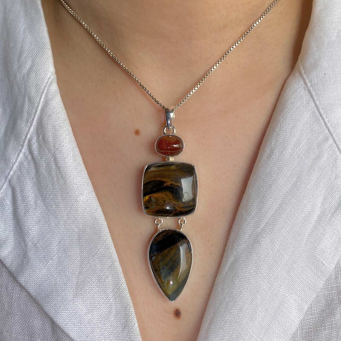 Necklaces, or we say pendants, have long been a fashion statement among both men and women for a variety of reasons, serving as a symbol of grace, femininity, and individual taste. Some accessories do more than complement an attire, and pendants are one of them, especially pietersite pendants. Whether you want to add them for a formal outfit or layer them with other dainty chains to create a bold and eye-catching look, they are a great way to stand out in a crowd. It offers versatility with the ability to be worn in more than one way. Besides defining the beauty of the wearer's neck, it effortlessly adds flair to your outfit.