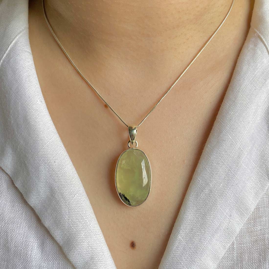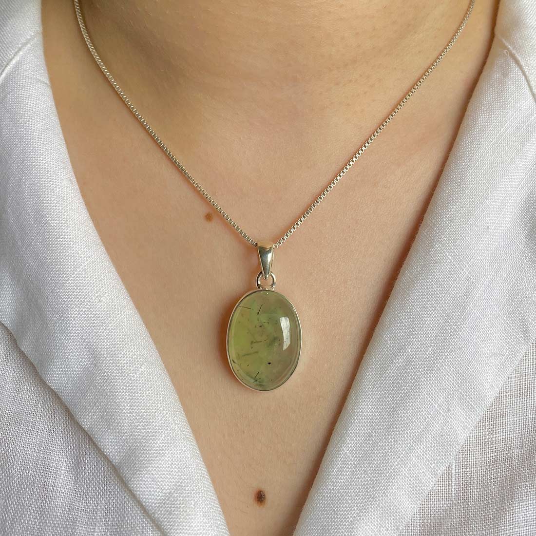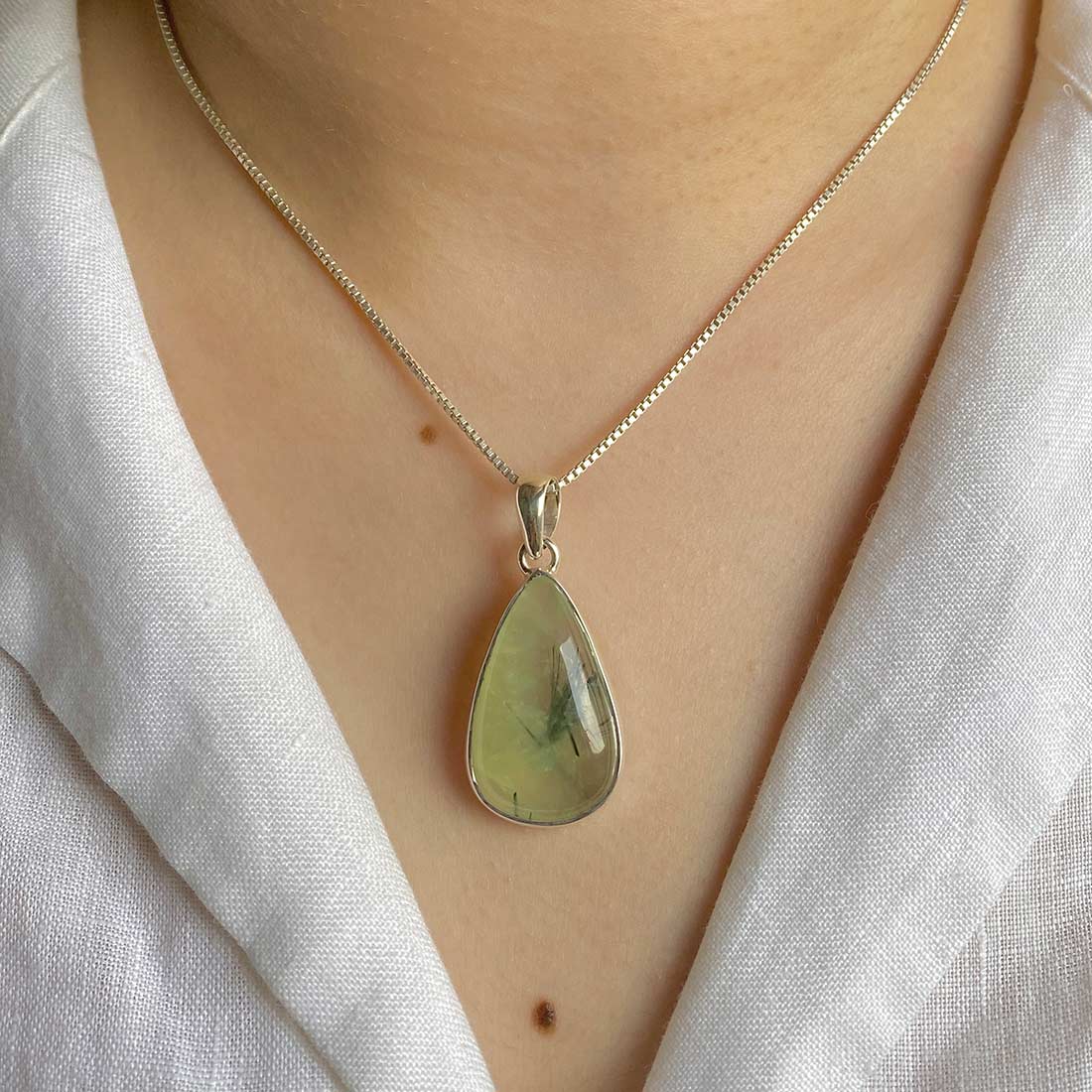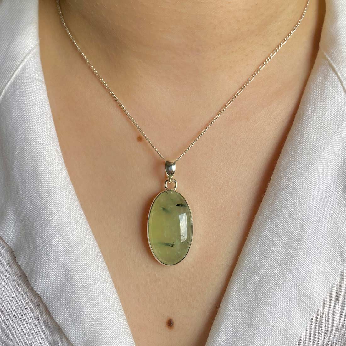 Colorful, symbolic, and effortlessly stylish gemstone pendants never goes out of style. As other trends may come and go, you can always find them as gorgeous as they were. Besides being a powerful way to express ourselves, these pendants allow us to add a hint of personalization and glamour to our outfits for all occasions. Among the vast range of gemstones Mother Earth has blessed us, Prehnite stands out as a stone that embodies elegance and enigma.