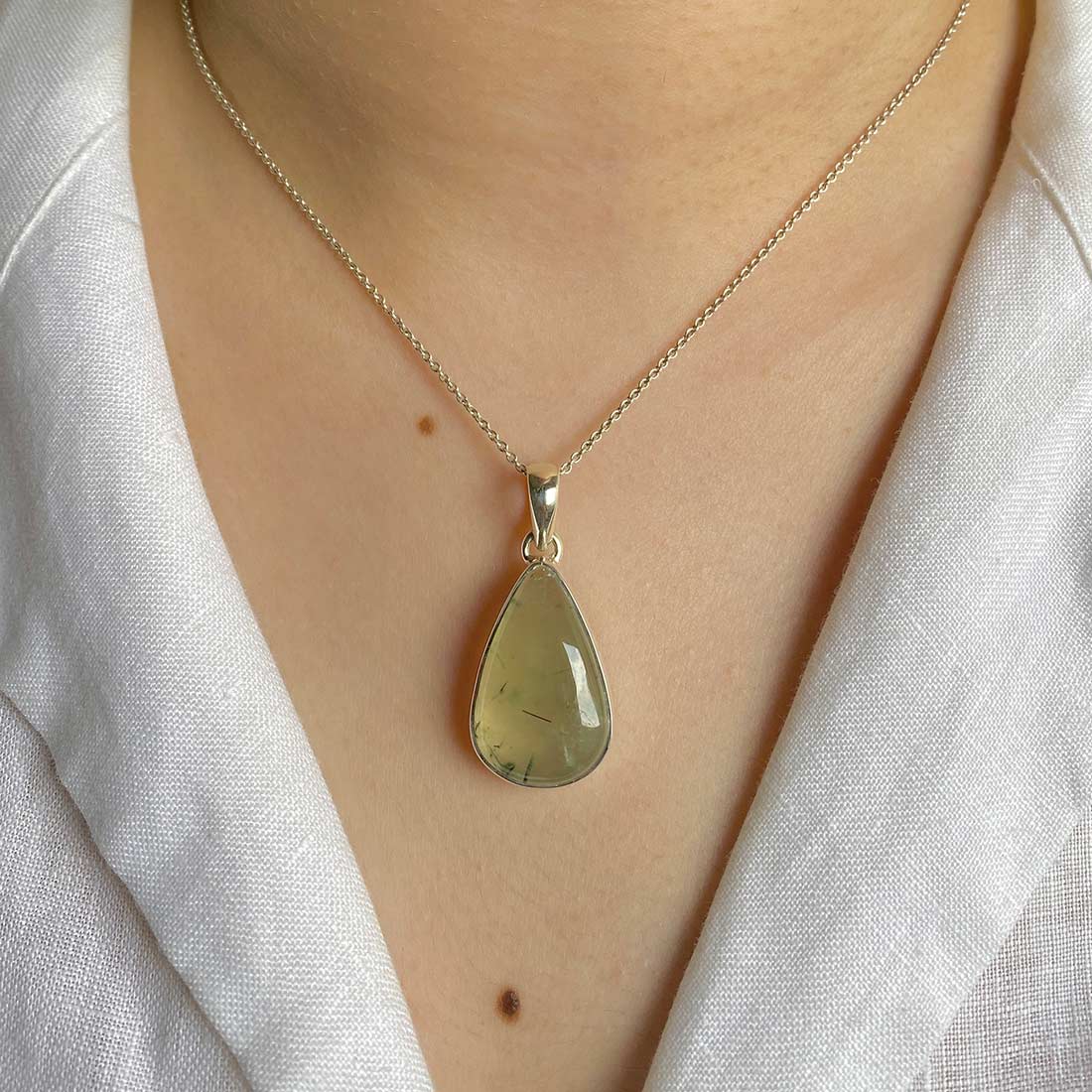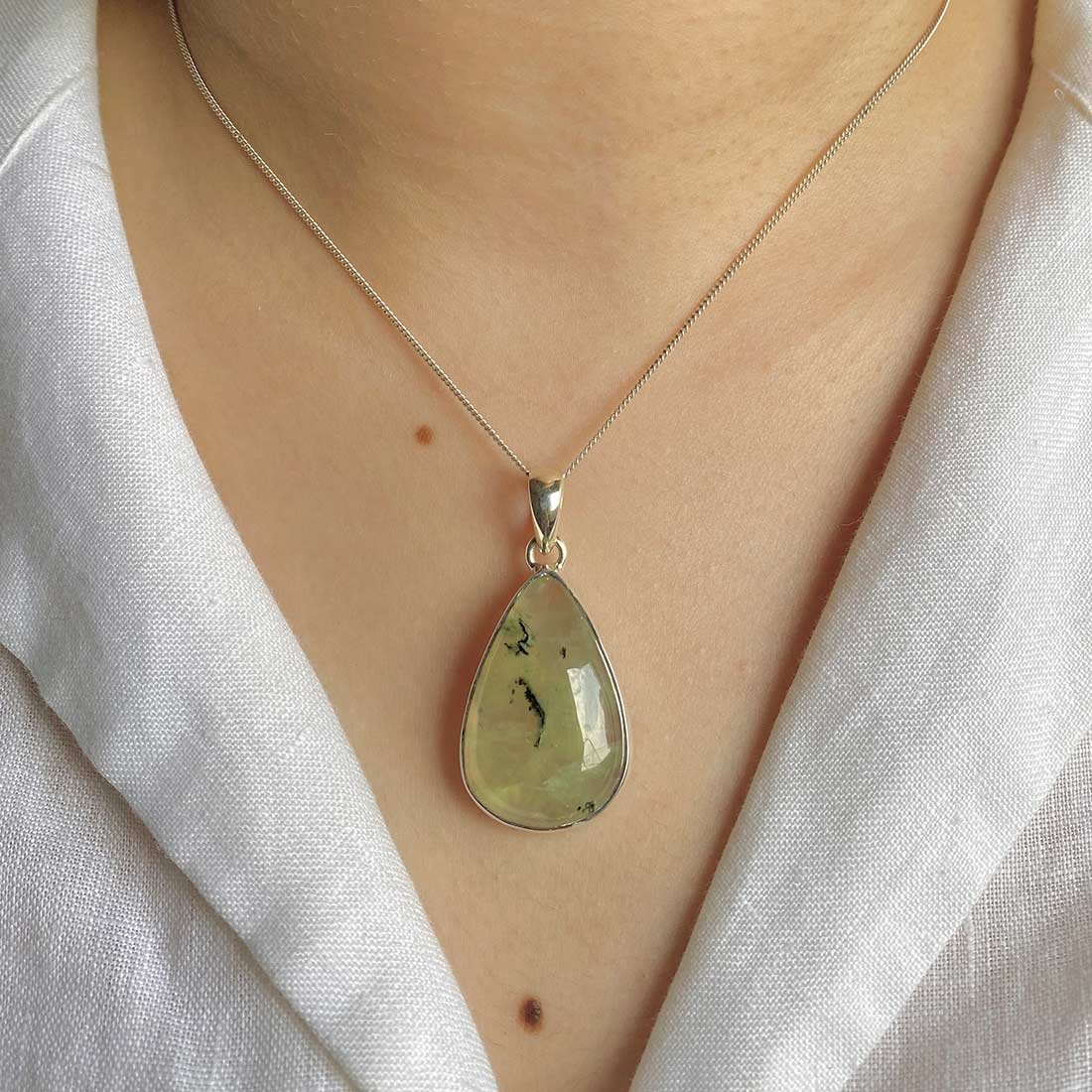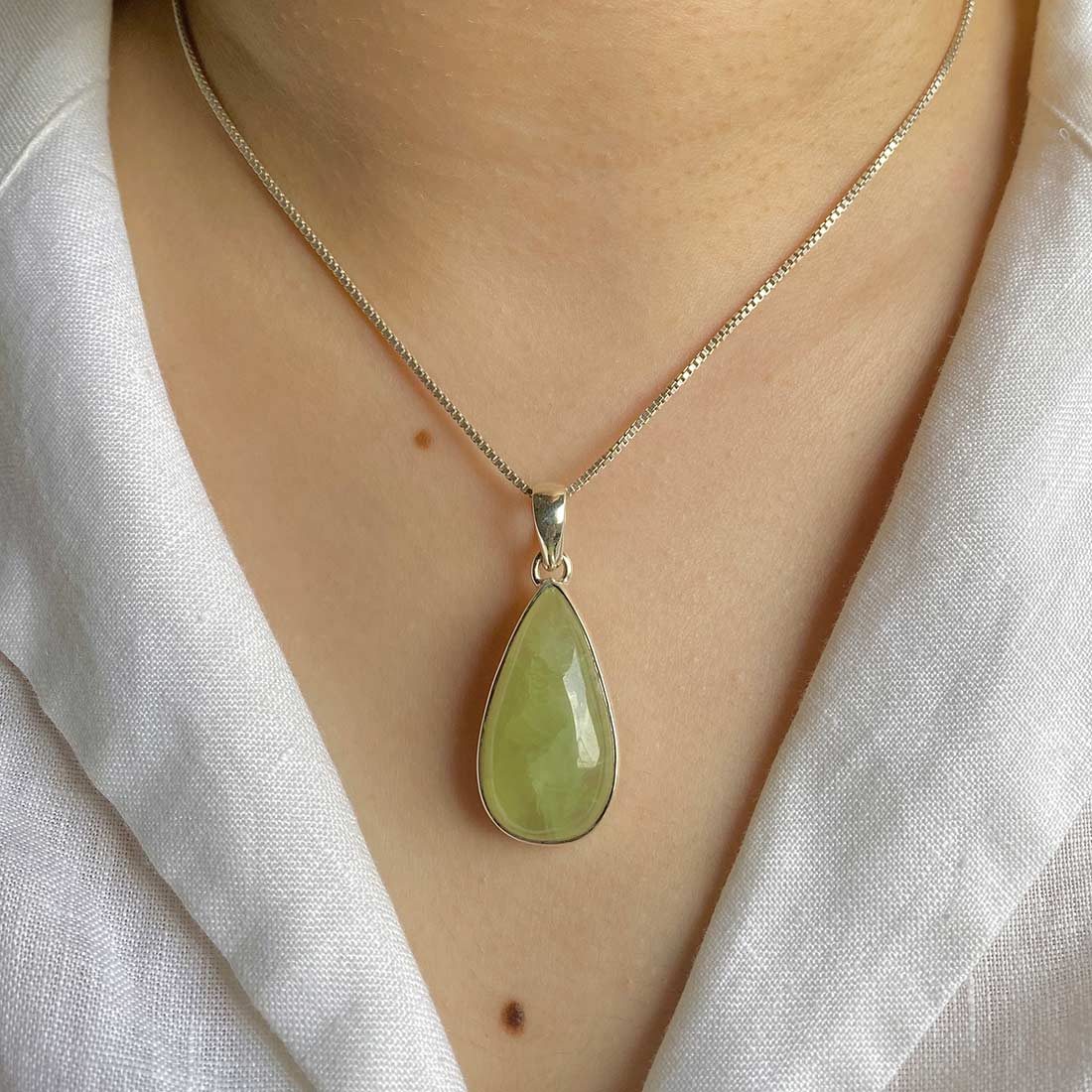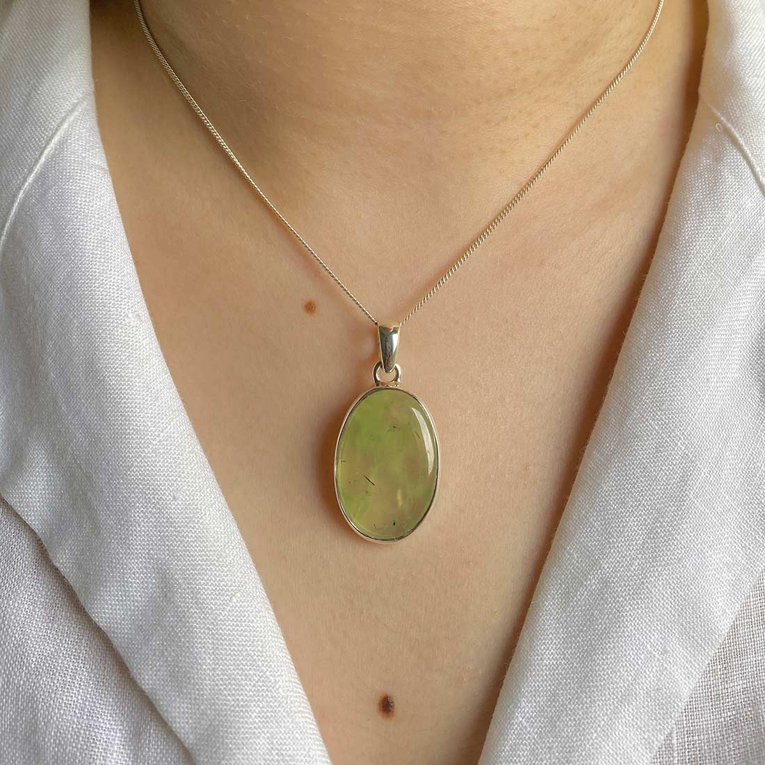 Colorful, symbolic, and effortlessly stylish gemstone pendants never goes out of style. As other trends may come and go, you can always find them as gorgeous as they were. Besides being a powerful way to express ourselves, these pendants allow us to add a hint of personalization and glamour to our outfits for all occasions. Among the vast range of gemstones Mother Earth has blessed us, Prehnite stands out as a stone that embodies elegance and enigma.