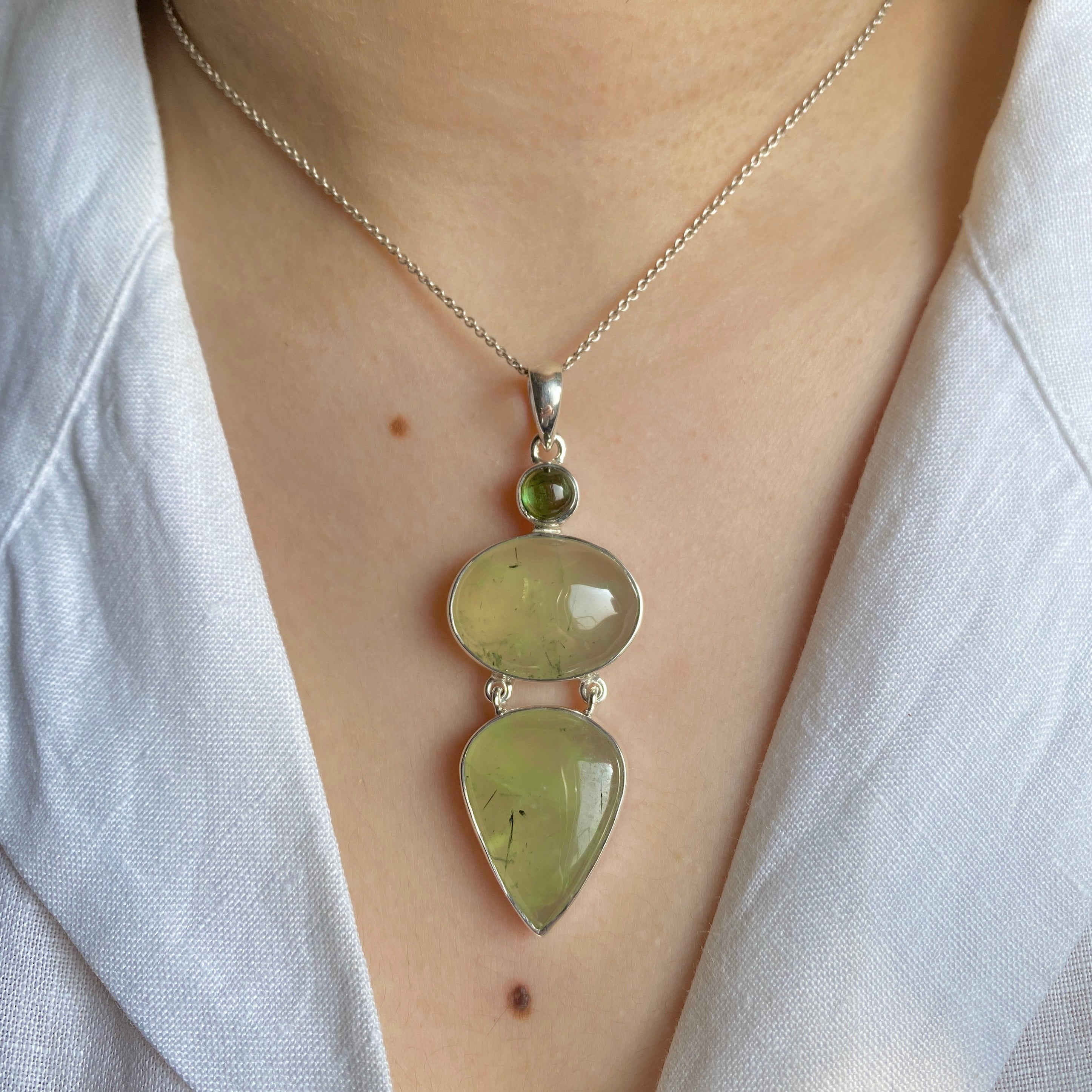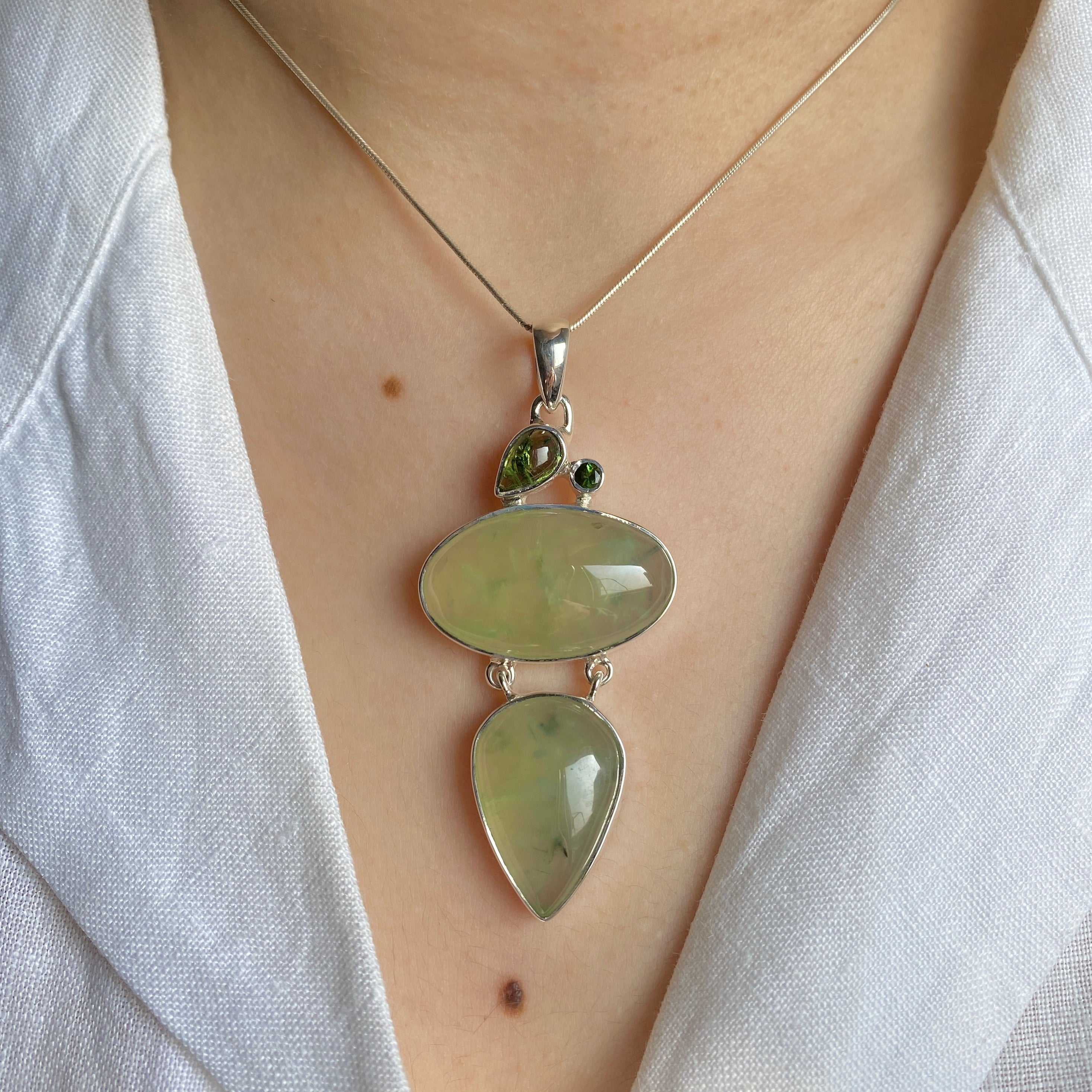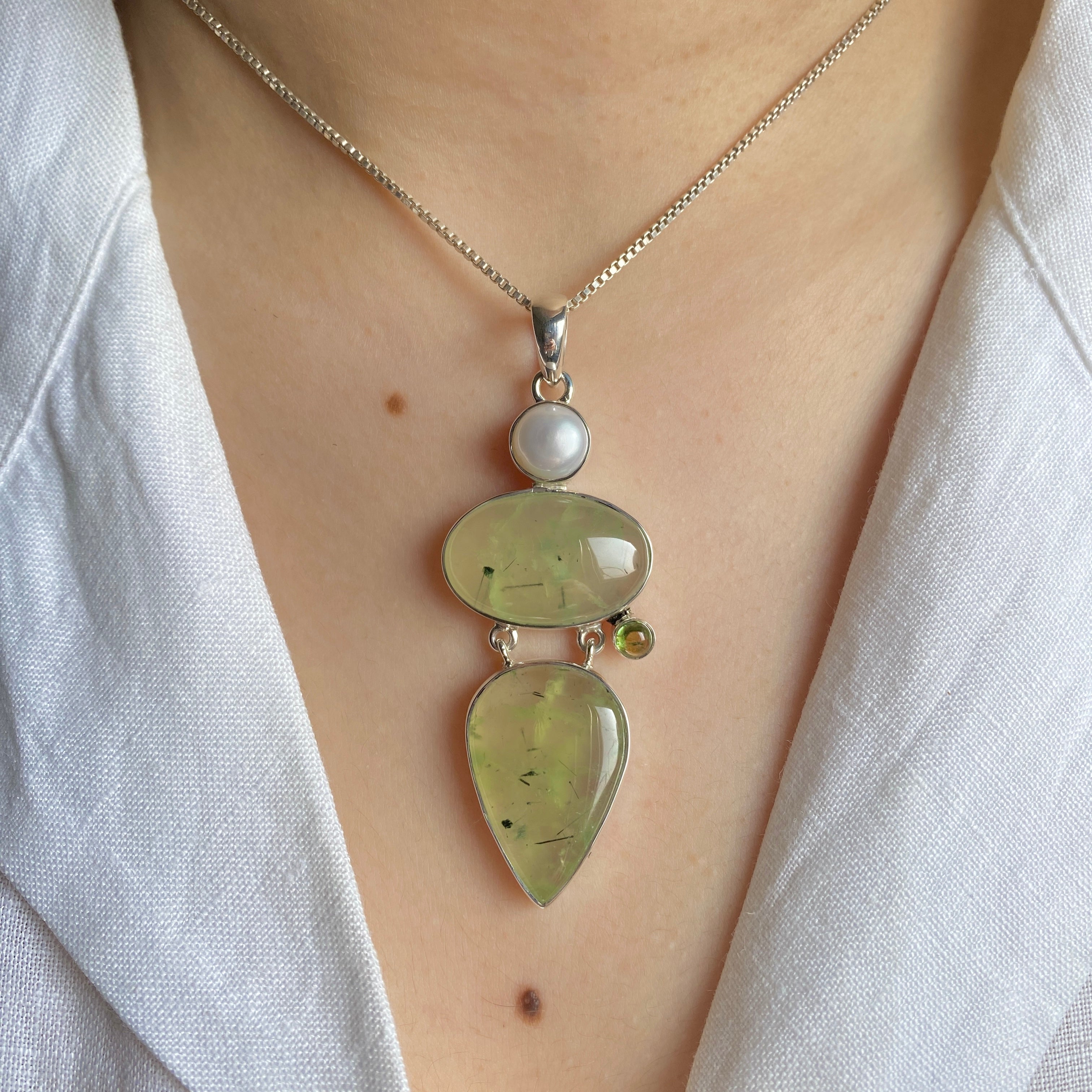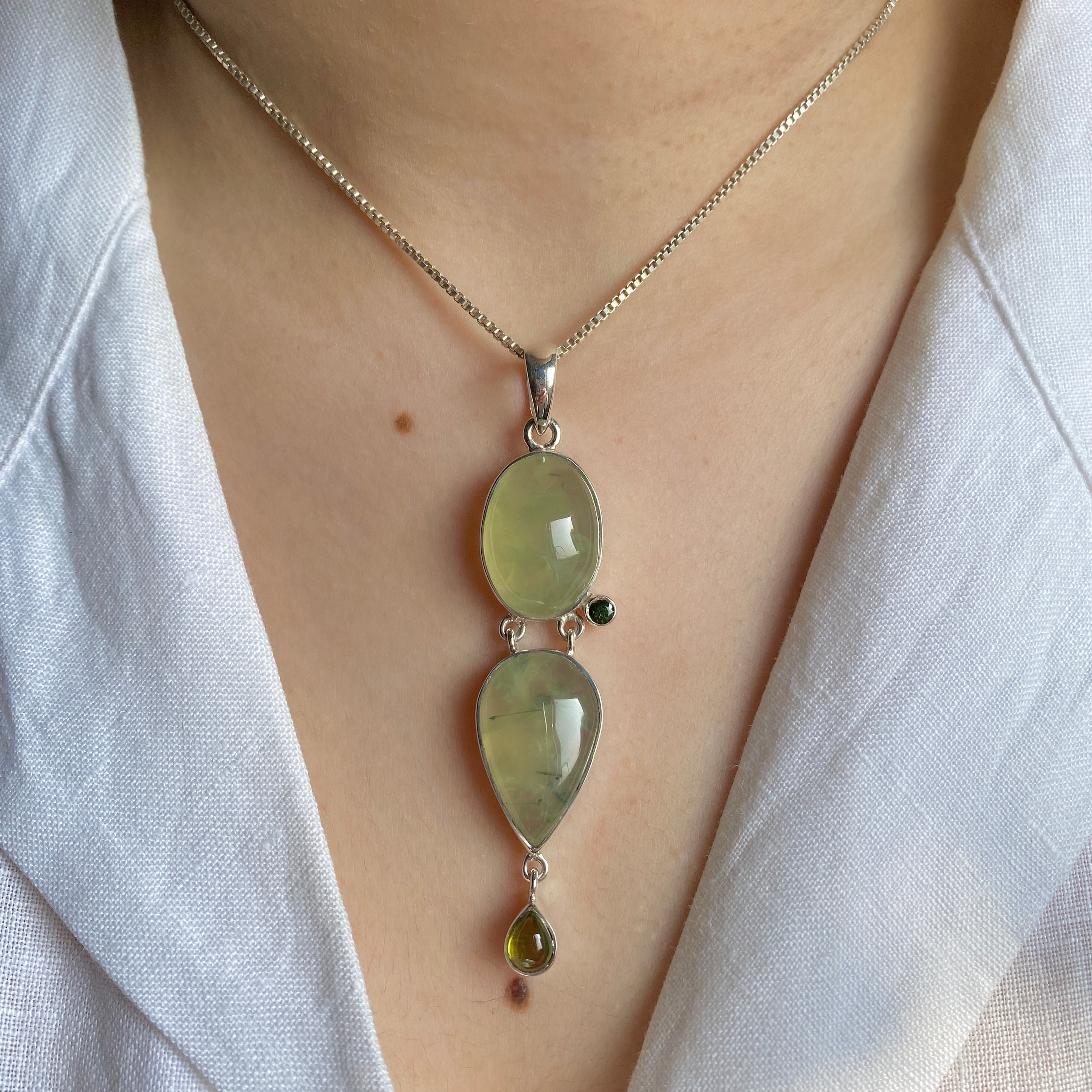 Colorful, symbolic, and effortlessly stylish gemstone pendants never goes out of style. As other trends may come and go, you can always find them as gorgeous as they were. Besides being a powerful way to express ourselves, these pendants allow us to add a hint of personalization and glamour to our outfits for all occasions. Among the vast range of gemstones Mother Earth has blessed us, Prehnite stands out as a stone that embodies elegance and enigma.