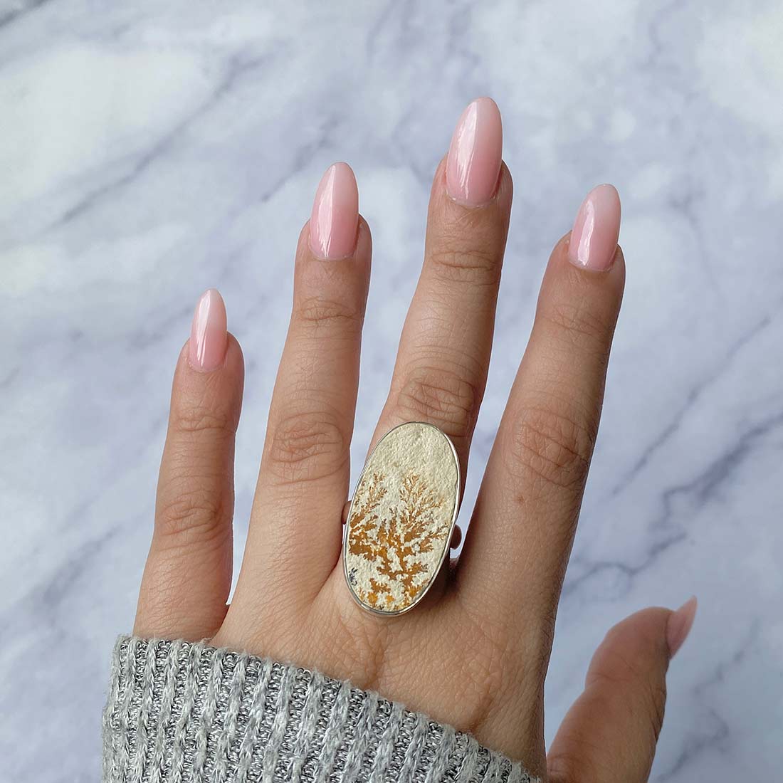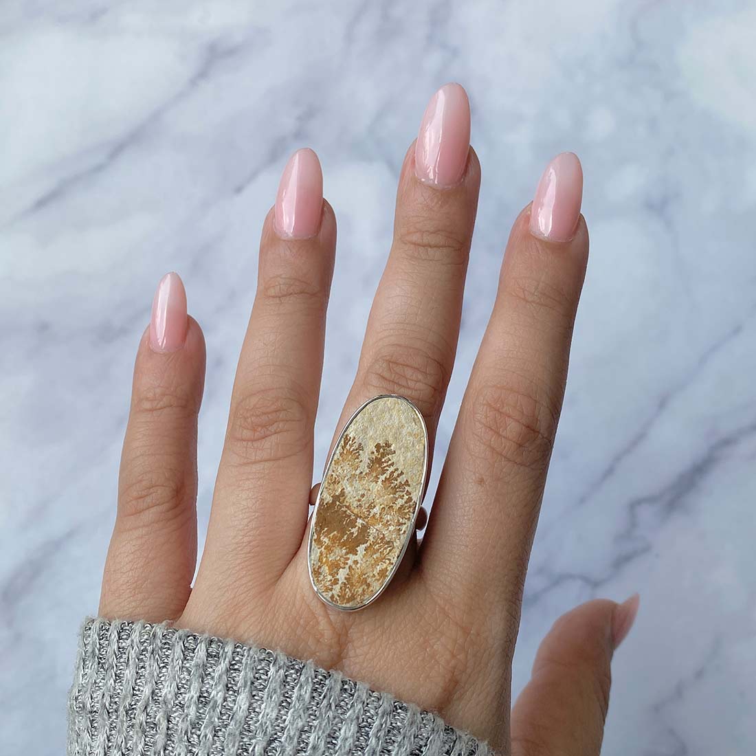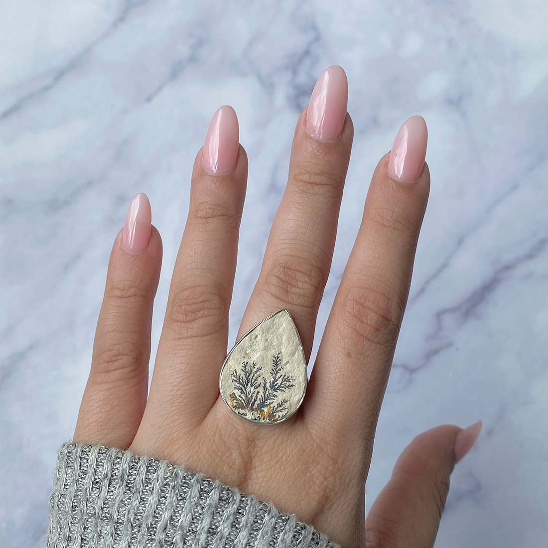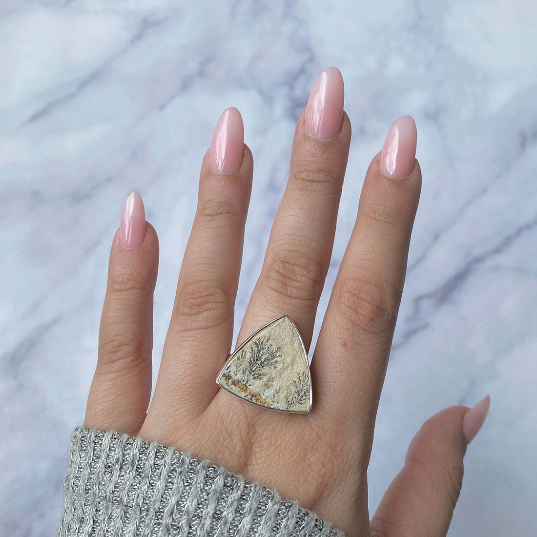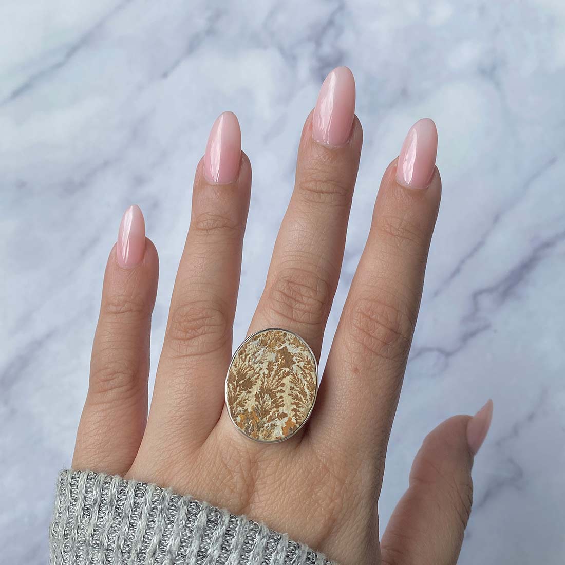 Rings make great statement pieces, plus they are so beautiful and easy to pair with outfits, making them a perfect accessory for a complementing personality. Moreover, you can mix and match them with other dainty silver or golden bands to create an outgoing, bohemian-inspired look. If you're searching for an ideal piece of statement ring, we recommend them with the added beauty of colored gemstones. On this page, you can find one of our classic findings from the astonishing world of gemstones that would complement your personal style and color scheme of the entire ensemble.  It is Psilomelane Dendrite which is being highly celebrated in Psilomelane Dendrite Jewelry pieces, especially Psilomelane Dendrite rings that exude nature's refinement and splendor wrapped through our fingers.
