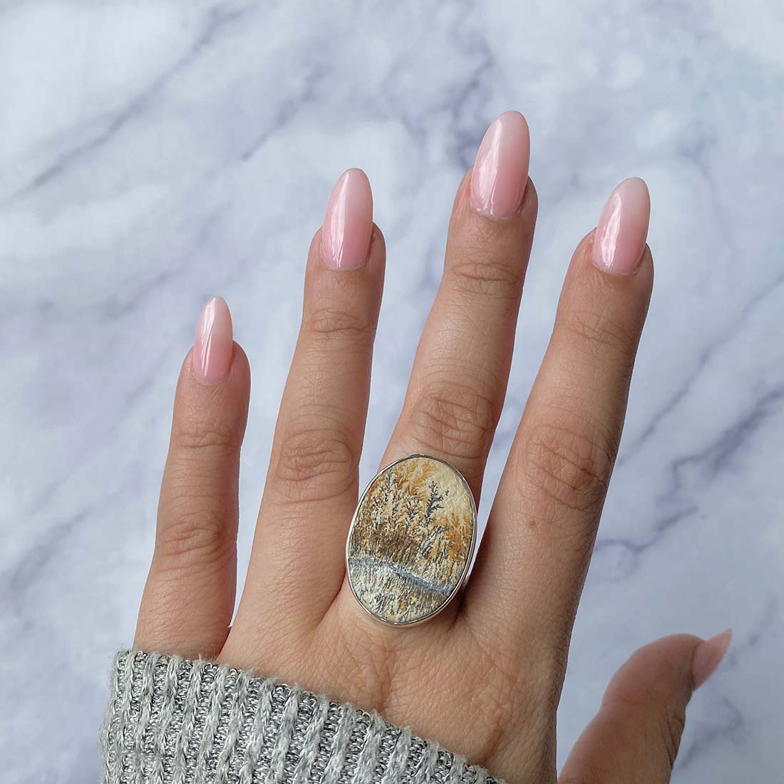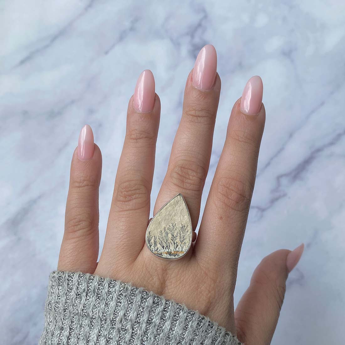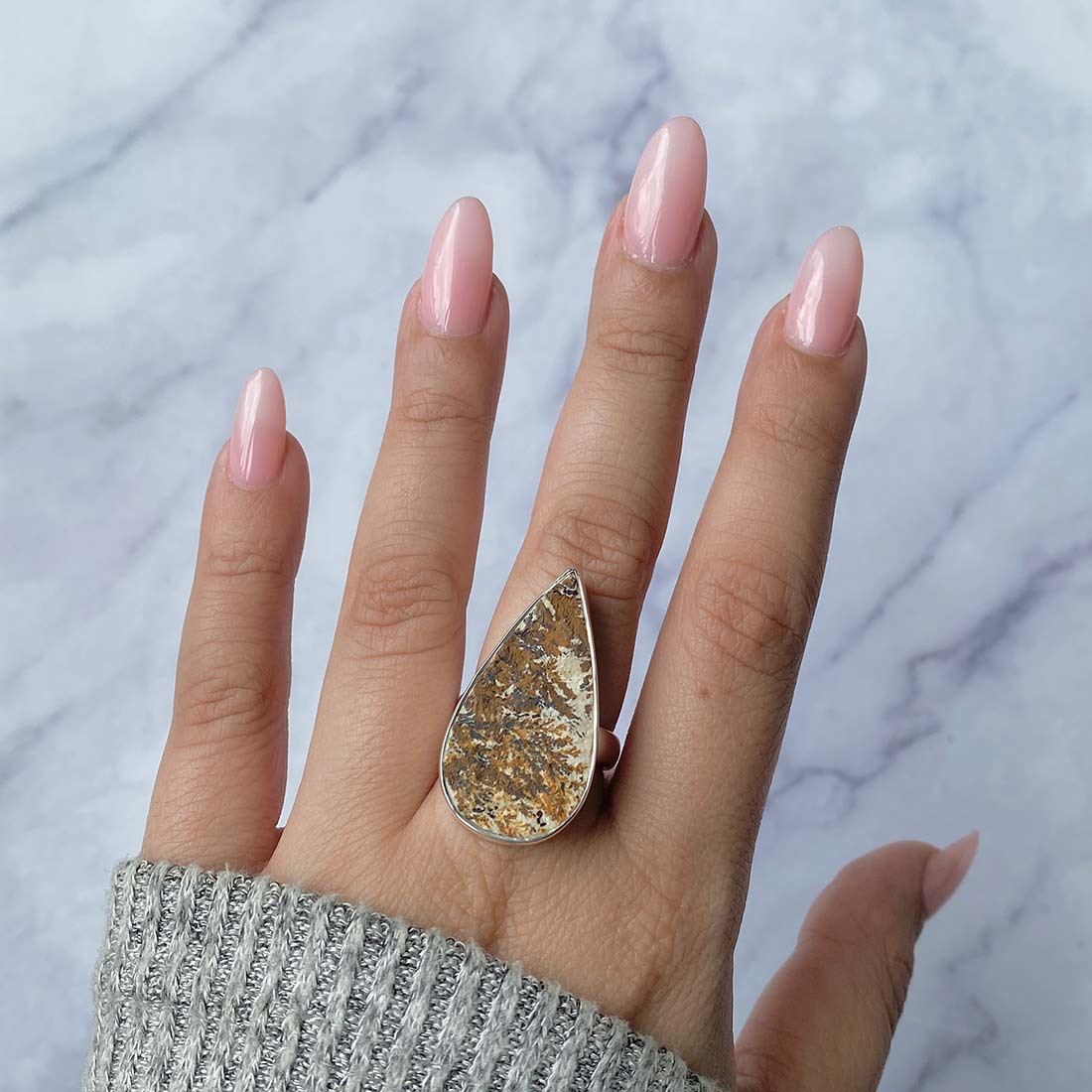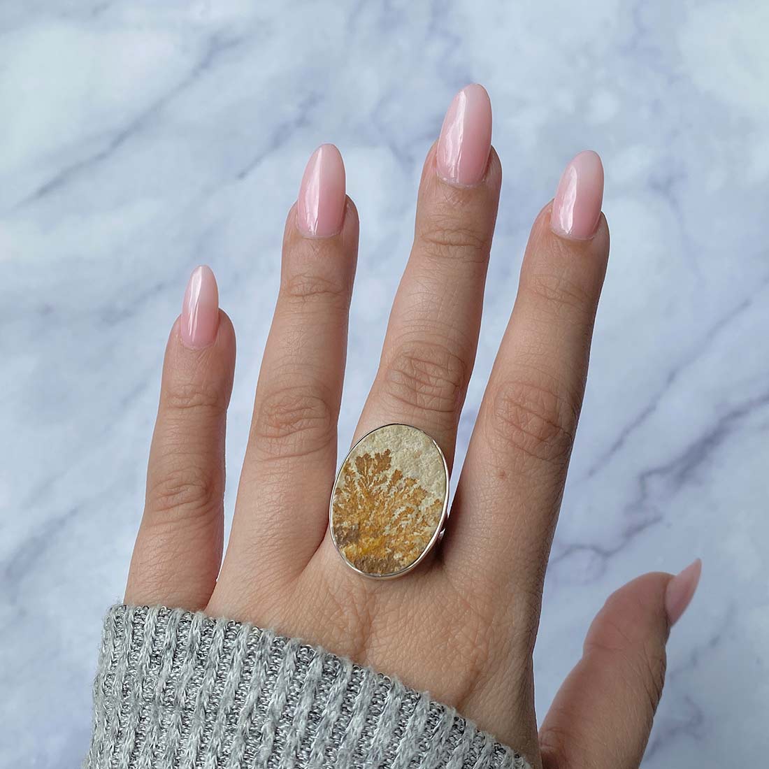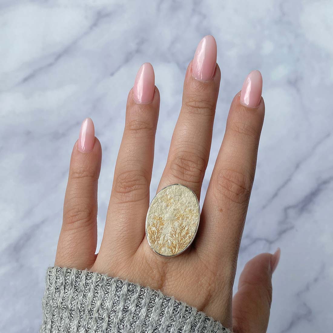 Rings make great statement pieces, plus they are so beautiful and easy to pair with outfits, making them a perfect accessory for a complementing personality. Moreover, you can mix and match them with other dainty silver or golden bands to create an outgoing, bohemian-inspired look. If you're searching for an ideal piece of statement ring, we recommend them with the added beauty of colored gemstones. On this page, you can find one of our classic findings from the astonishing world of gemstones that would complement your personal style and color scheme of the entire ensemble.  It is Psilomelane Dendrite which is being highly celebrated in Psilomelane Dendrite Jewelry pieces, especially Psilomelane Dendrite rings that exude nature's refinement and splendor wrapped through our fingers.