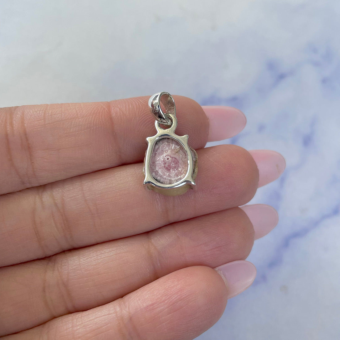 In terms of durability, rhodochrosite is a soft stone, ranging between three and four on the Moh’s Scale of Mineral Hardness. This is why you need to take proper care of this stone, and you need to be cautious – rhodochrosite can easily get scratched and it can even break if you drop it from a height. However, you do not need to worry too much about rhodochrosite jewelry if you get it made in a protective setting, such as the bezel setting, where a metal rim covers the stone from all sides. If you check out Sagacia Jewelry’s inventory of rhodochrosite pendants, you will find that all the pendants are made in a bezel setting, in which the setting itself protects the stone and reduces its chances of breakage.