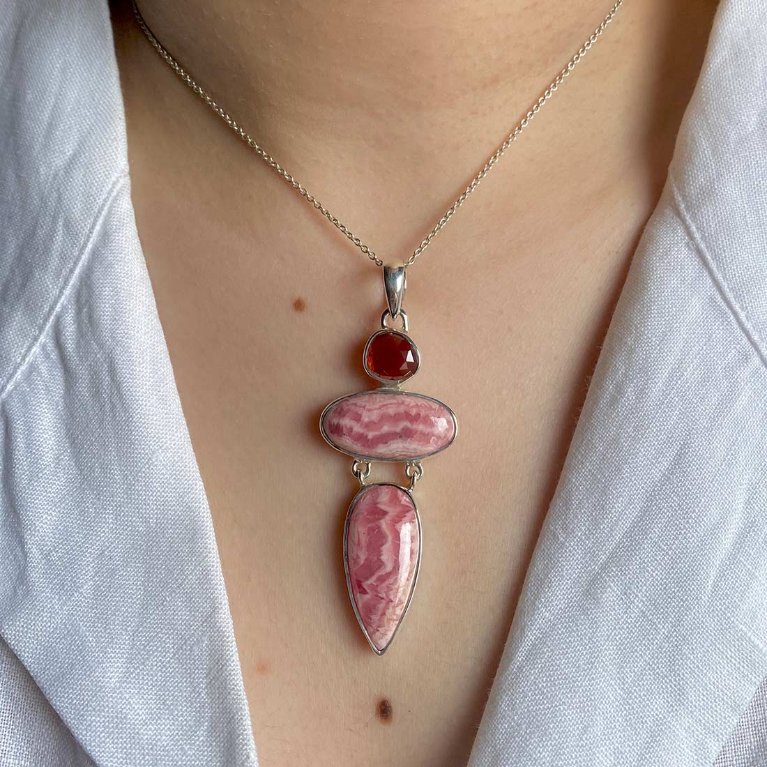 Sagacia’s Statement Rhodochrosite Pendants in the Most Stunning Shades of Pinkish-Red