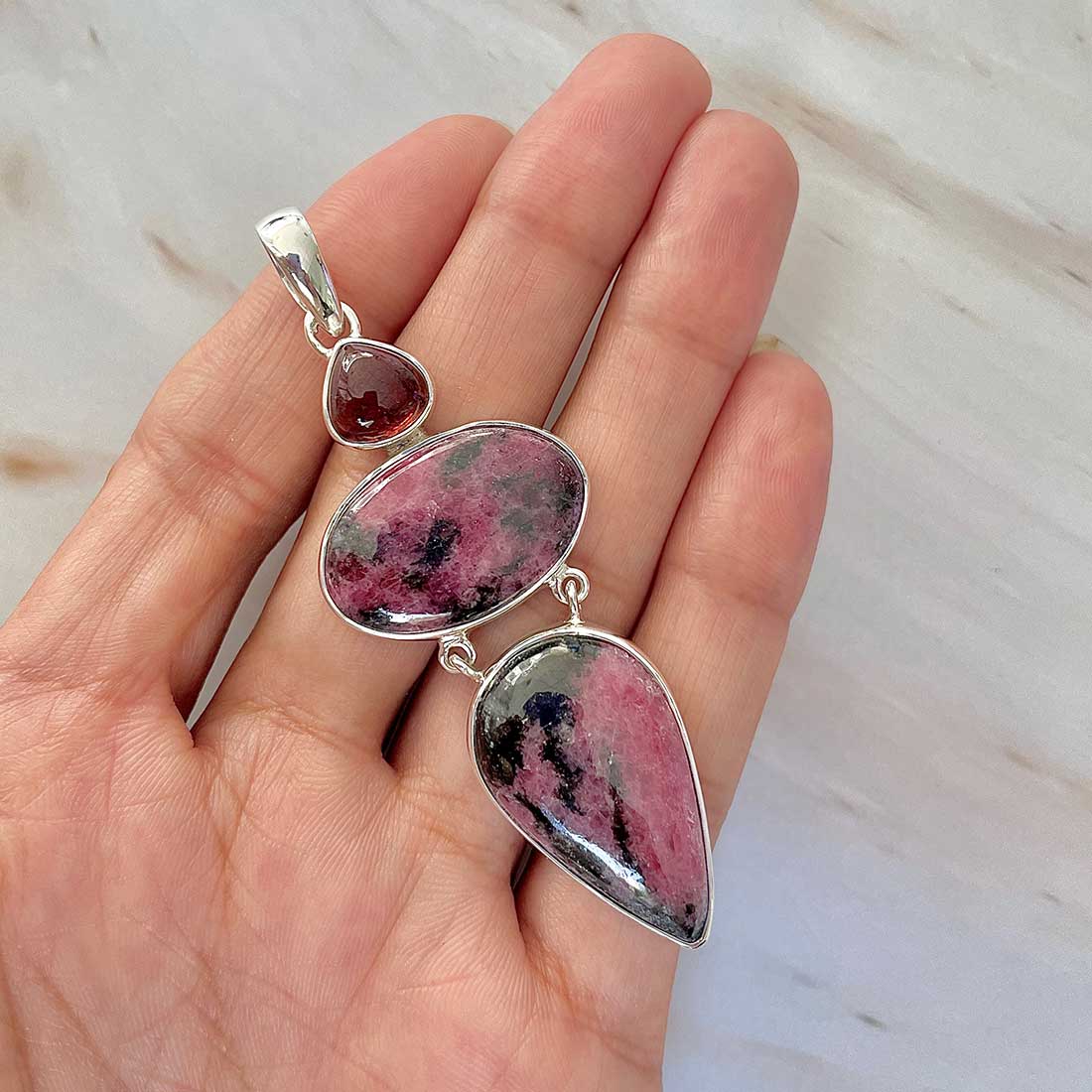 Sagacia’s Statement Rhodonite Pendants in the Most Alluring Shades of Crimson