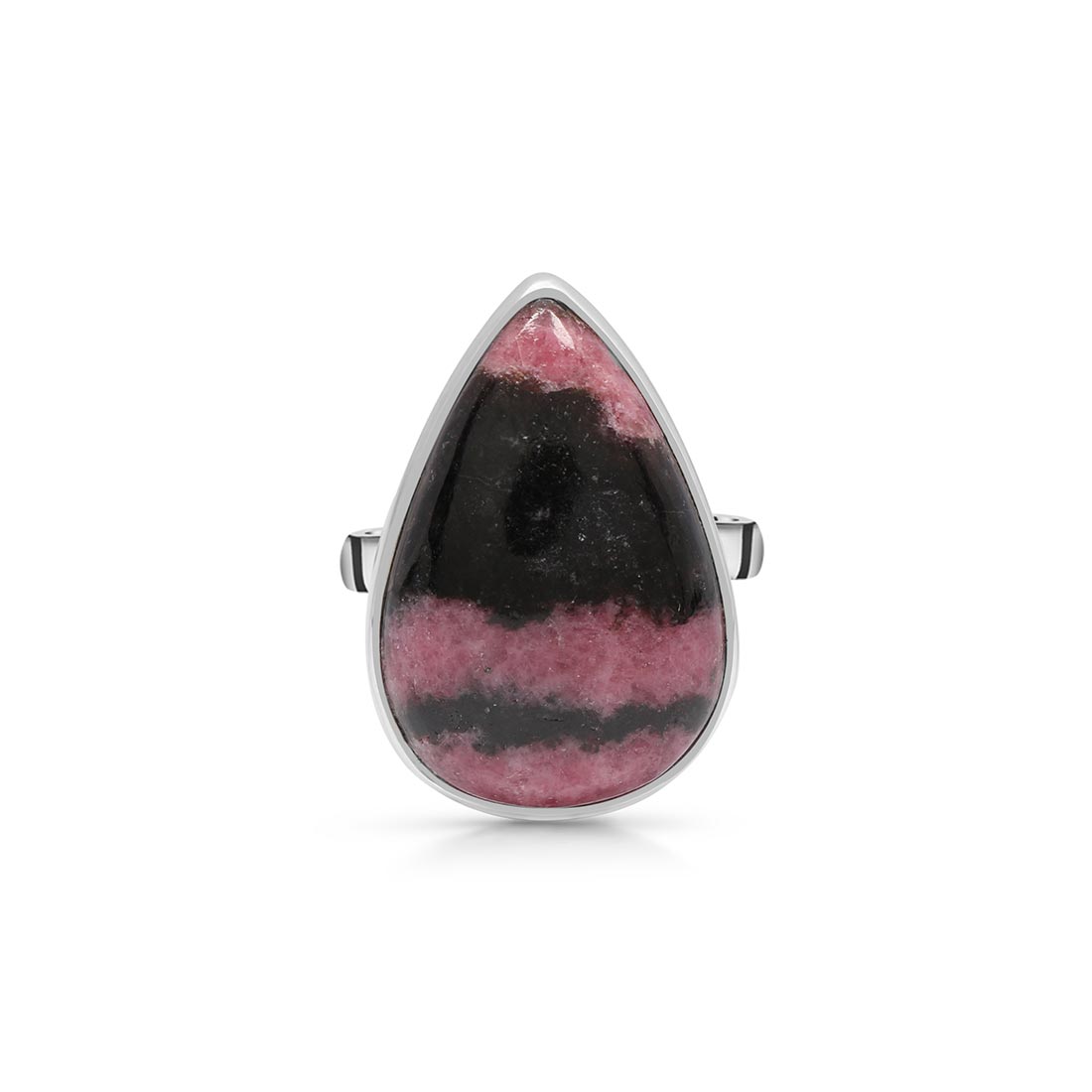 Rhodonite is a shade of pink to red and is often used as a gemstone ring? e. It is pink in color with black or brownish-colored stripes or lines running through it. Rhodonite is a manganese inosilicate and has a stunning and quite distinct look to it, which makes it somewhat desirable. The name in their classification is a result received from the Greek word "rhodon," which stands for rose, due to the pink hue of the gemstone. Rhodonite is used as a gemstone for carving and jewelry products because of its beautiful color and relatively high degree of hardness. As for the beliefs, wearing a rhodonite ring will serve as a symbol of balanced nurturing emotions and compassion. Rhodonite can be made into different classes of jewelry, like rhodonite rings, rhodonite necklaces, rhodonite pendants, rhodonite bracelets, and rhodonite earrings. Also, it is believed to help deal with emotions and to enhance love and healing processes. All in all, Rhodonite is an eye-catching gemstone that is appreciated for its aesthetic properties and its inherent energy attributes.
