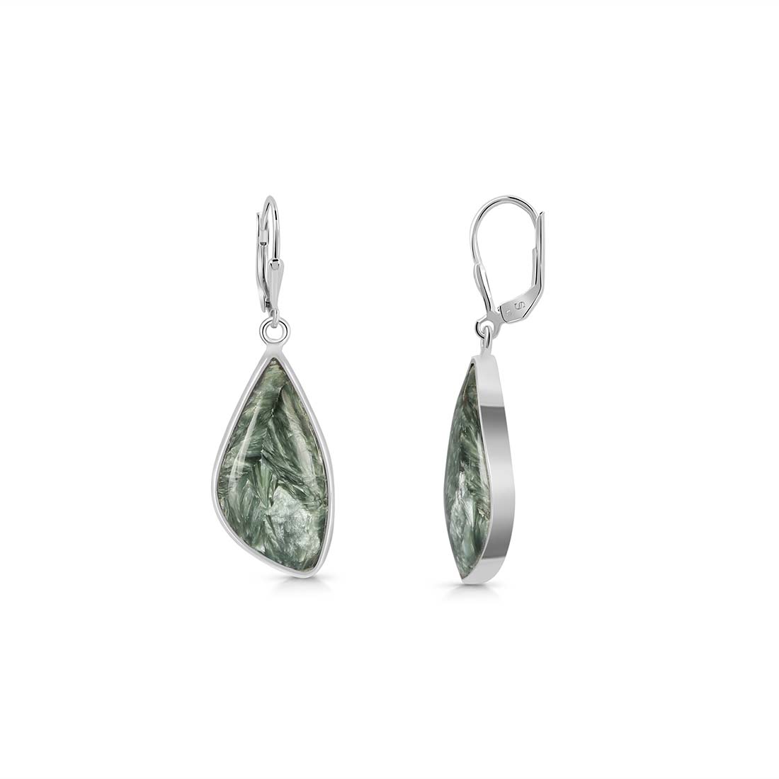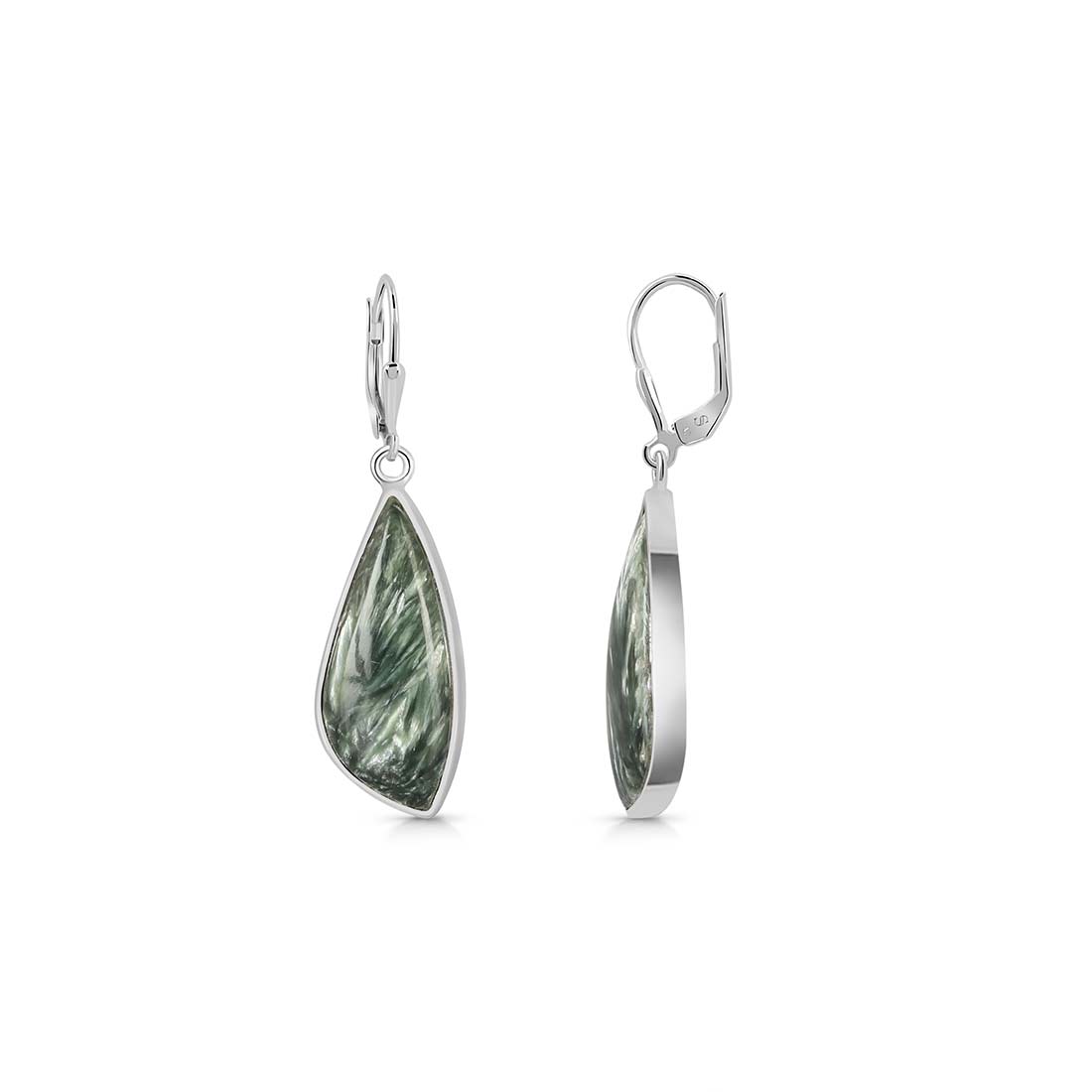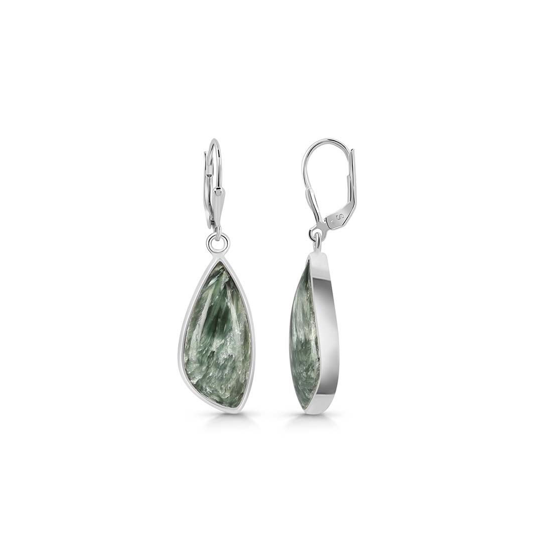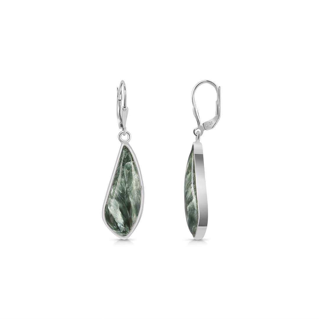 Seraphinite is a gorgeous semi-precious gemstone that creates the most sumptuous statement Seraphinite earrings that you can add to your wardrobe to exude class and grace. It comes with deep forest green to gray shades with silvery, feather-like patterns, making the stone a hot topic among connoisseurs and gem collectors. When crafted with pure 925 sterling silver, gold, or platinum, the beauty of Seraphinite earrings goes to the next level, spellbinding everyone. No wonder the stone's popularity is increasing daily among fashionistas, celebrities and Jewelry influencers seeking something unconventional and offbeat to add to their Jewelry box.