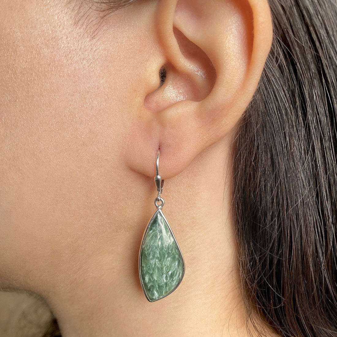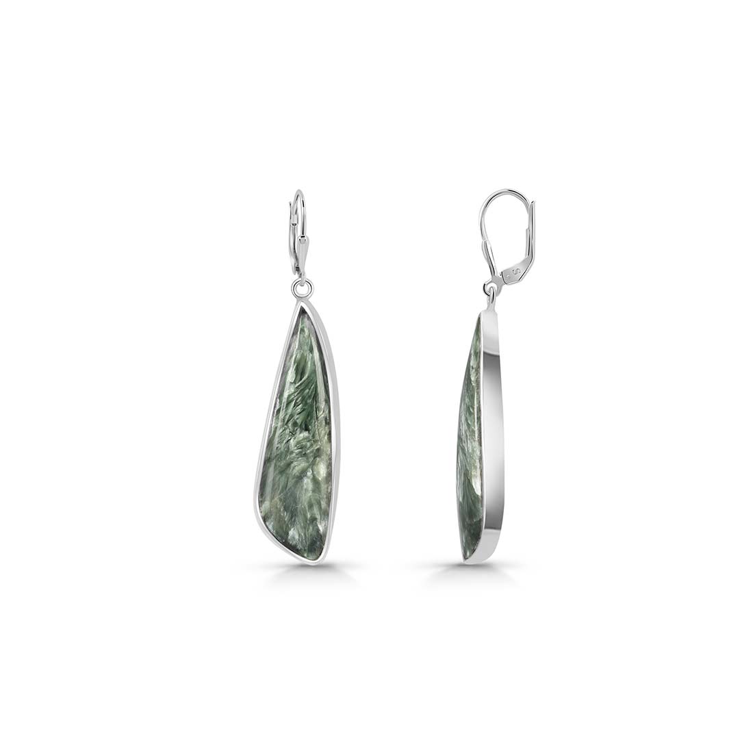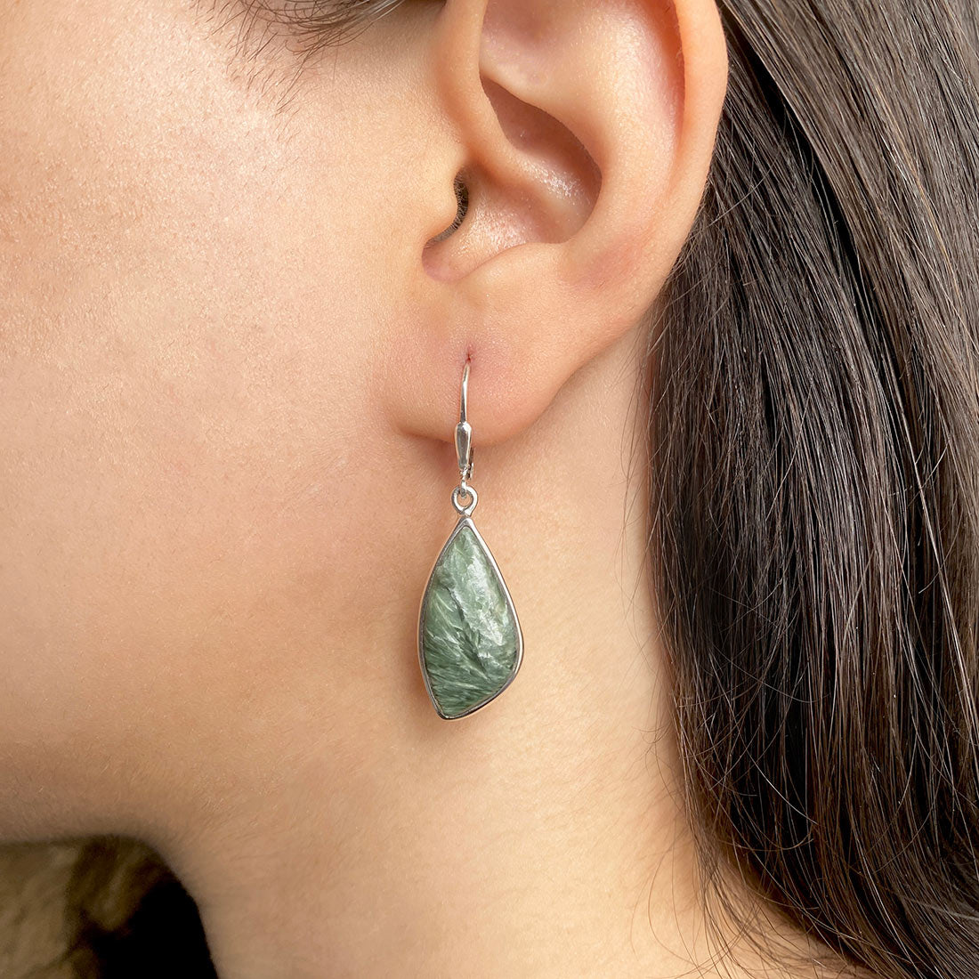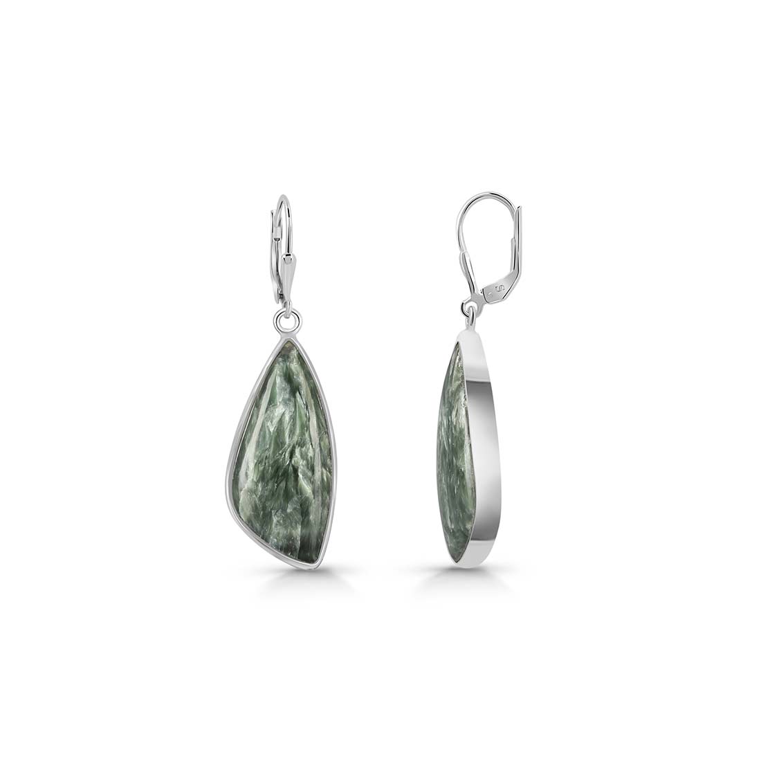 Seraphinite is a gorgeous semi-precious gemstone that creates the most sumptuous statement Seraphinite earrings that you can add to your wardrobe to exude class and grace. It comes with deep forest green to gray shades with silvery, feather-like patterns, making the stone a hot topic among connoisseurs and gem collectors. When crafted with pure 925 sterling silver, gold, or platinum, the beauty of Seraphinite earrings goes to the next level, spellbinding everyone. No wonder the stone's popularity is increasing daily among fashionistas, celebrities and Jewelry influencers seeking something unconventional and offbeat to add to their Jewelry box.