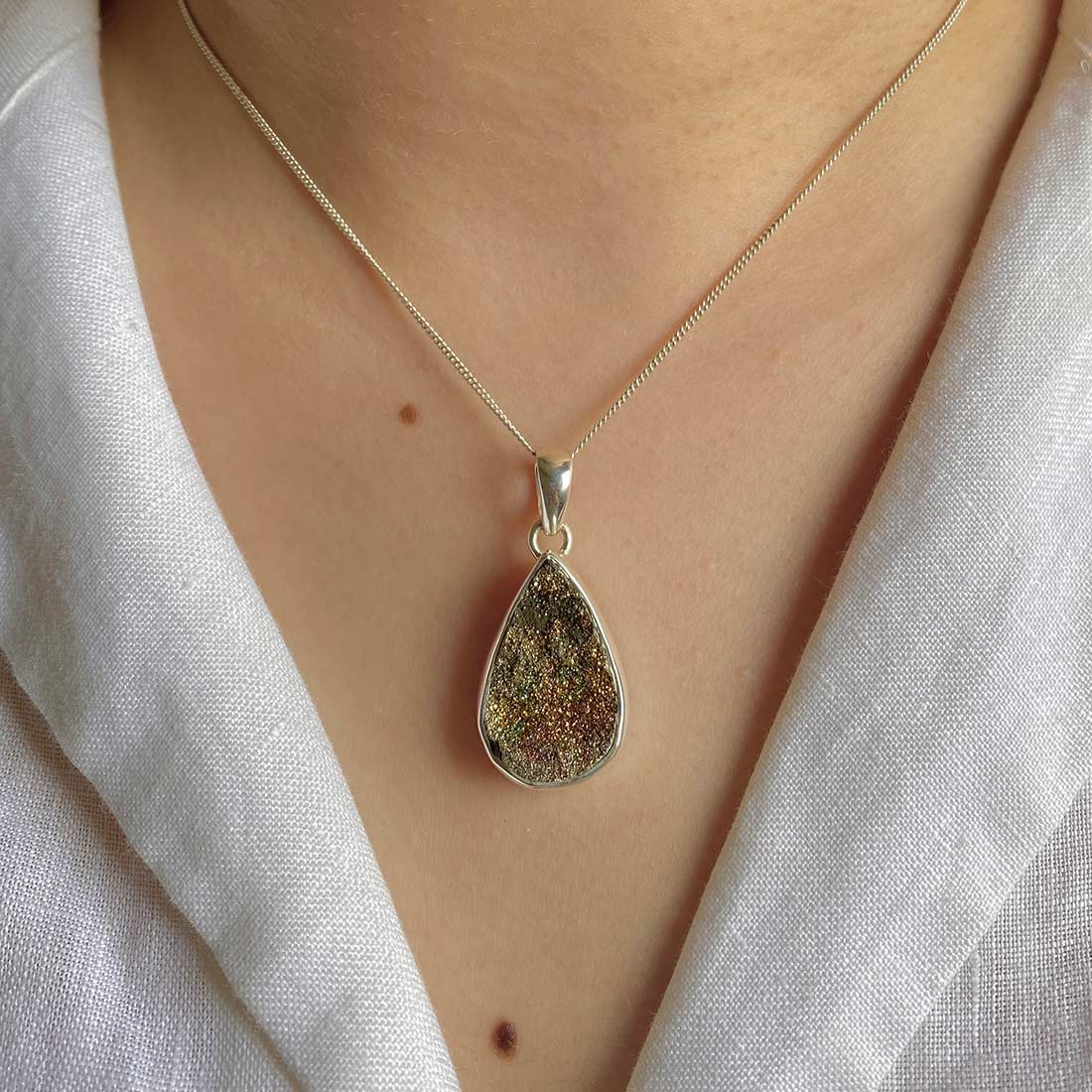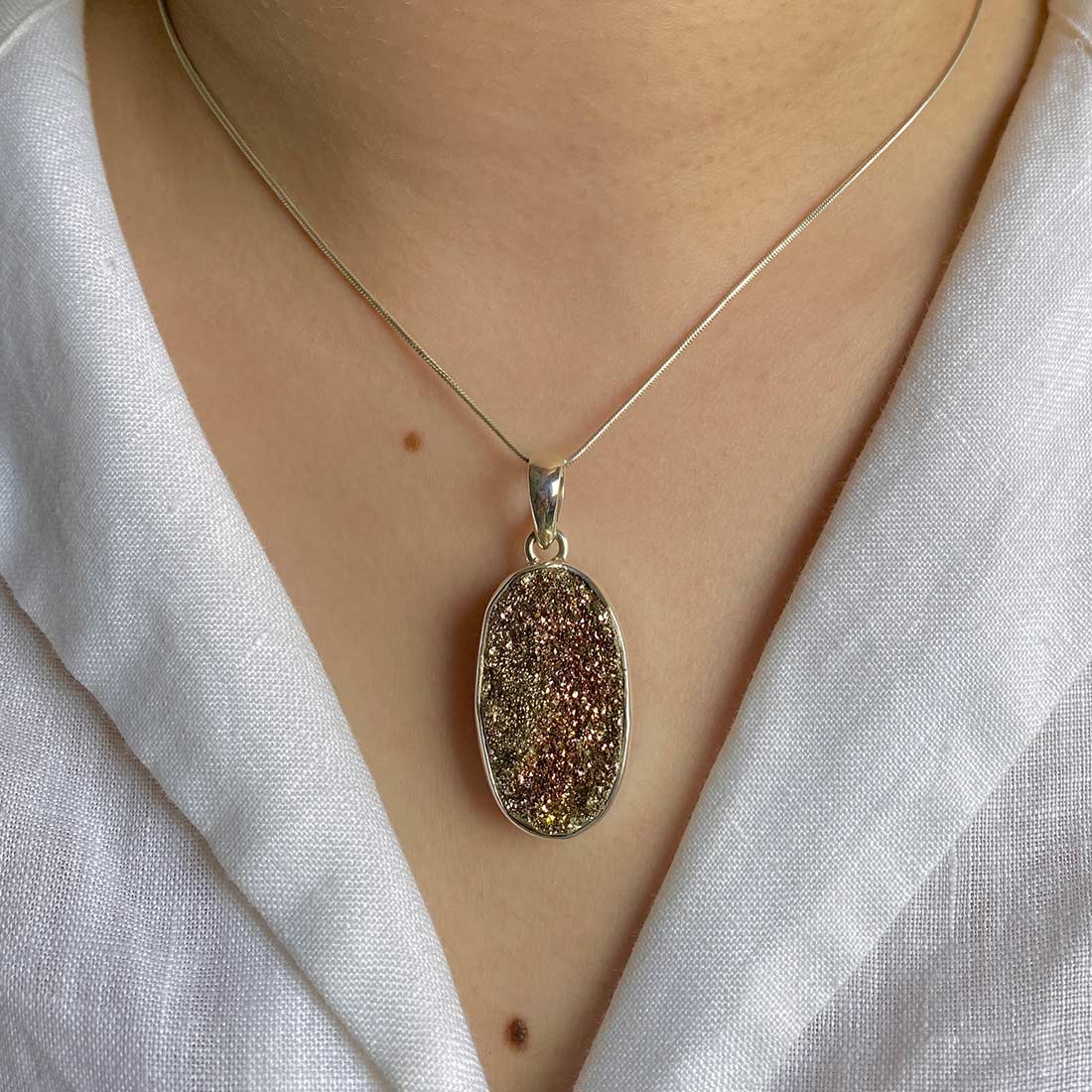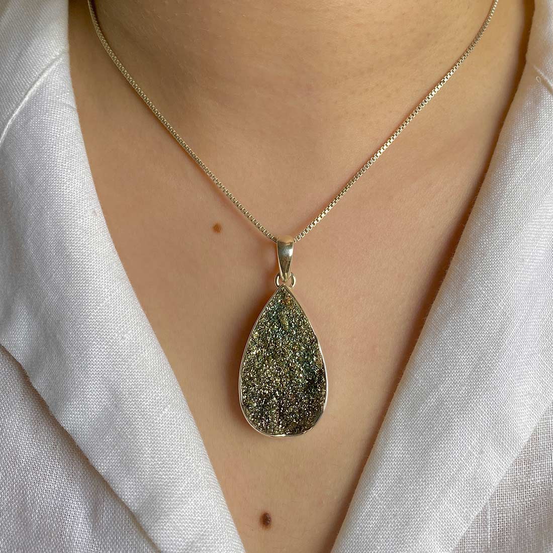 People say, “First impression is the last impression, and you won’t get any second opportunity to make up for it.” Quite true, after all, the way we carry our personality and present ourselves in front of others surely leaves a lasting mark on our presence at a place. But have you ever thought that the kind of accessory you wear could say unspoken things about you? Well, yes, your choice of Jewelry can uplift curtains off your personality. Not only this, it serves as a medium for others to communicate about who you are.Among all types of Jewelry, pendants like spectropyrite druzy pendants play a vital role in elevating our whole personality by finely defining our elegant neckline and clavicles.