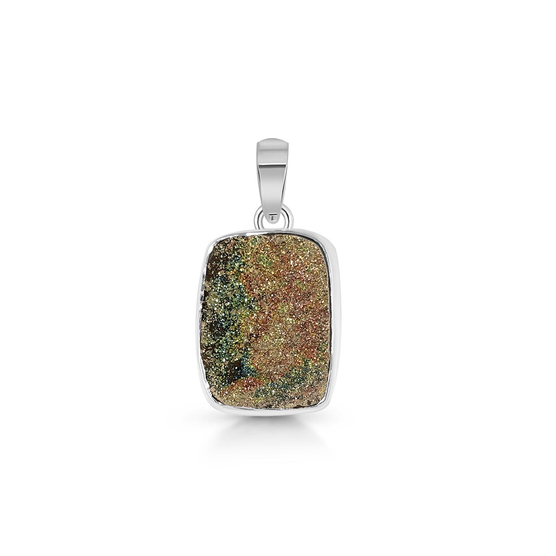 Spectropyrite Druzy, also known as Rainbow Pyrite, is a gorgeous and exceptional gemstone that showcases a spectacular display of metallic sheen and sparkling colors. Undoubtedly, it creates irresistible statement Spectropyrite Druzy pendants and other beautiful accessories like rings, bracelets, etc. When exposed to light, the iridescent crystal exhibits a spectrum of color phenomena ranging from metallic Gold and silver to vibrant blue, green, purple, and sometimes pink and red. Its unique yet mind-blowing dance of colors makes Spectropyrite Druzy a popular stone in the world of gemstone Jewelry.