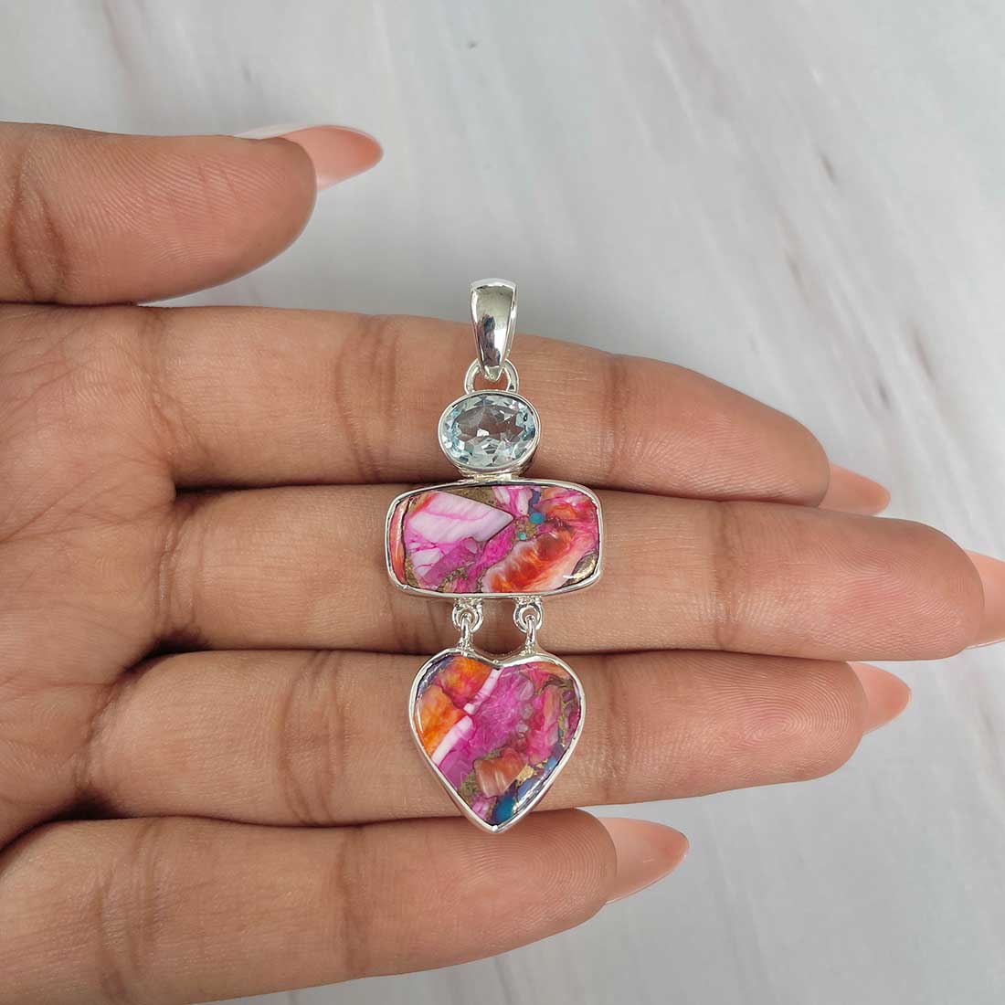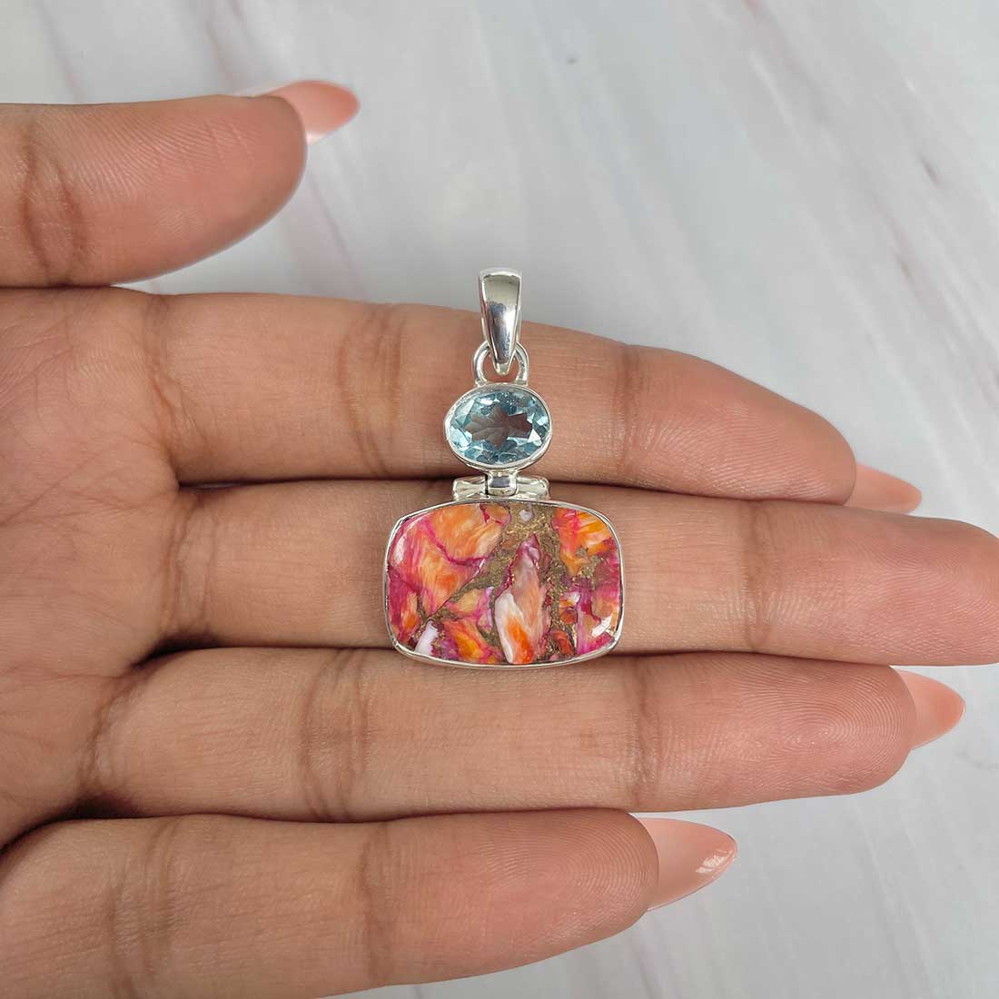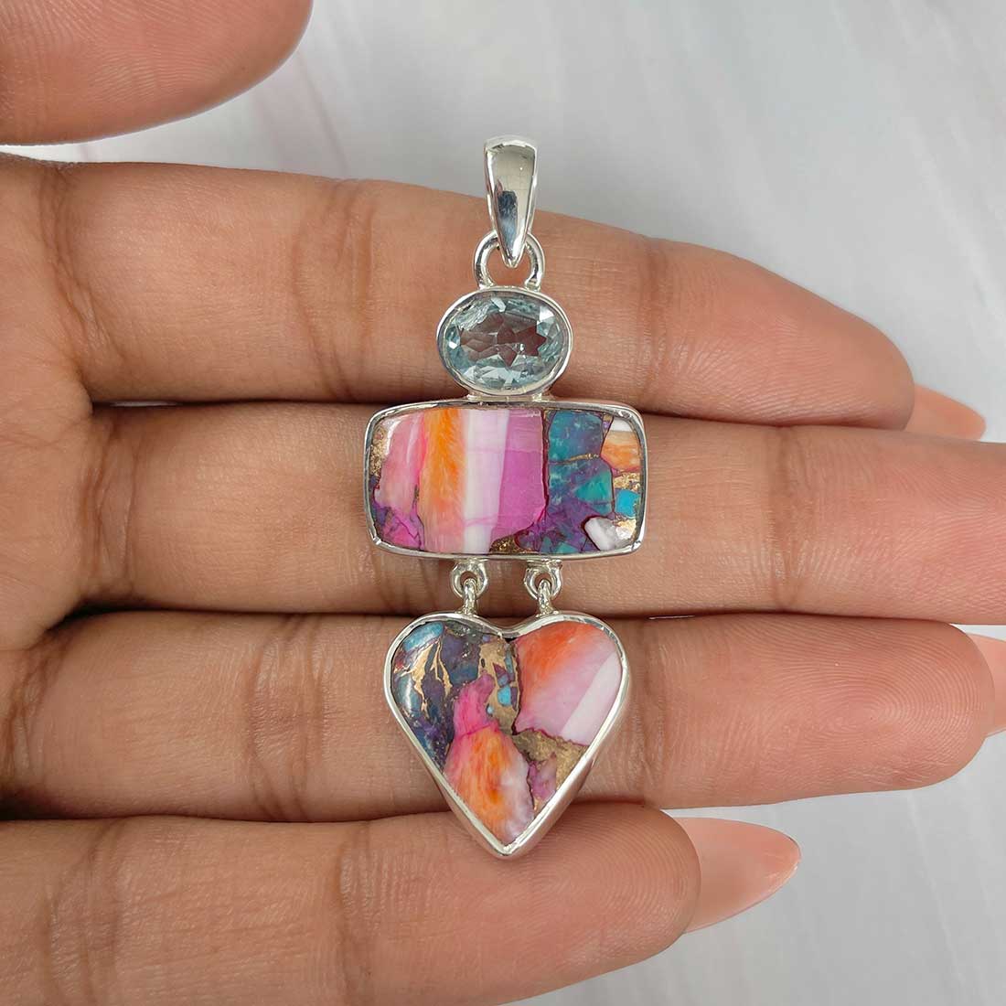 Due to their rarity and unique harvesting methods, Spiny Oyster Turquoise is a highly coveted gemstone, which makes it a worthy collection to your wardrobe. Besides their compelling appearance, wearing Spiny Oyster Turquoise Jewelry can bring you impeccable metaphysical properties. For example, The Spiny Oyster Turquoise pendants wrapped around the neck and close to the heart help activate our throat chakra, further unlocking one’s communication and self-expression skills. Apart from this, they also encourage you to leave toxic and negative thoughts behind so you can move on with peace. Emotionally, it assists you with kindness, forgiveness, self-acceptance, and inner strength.