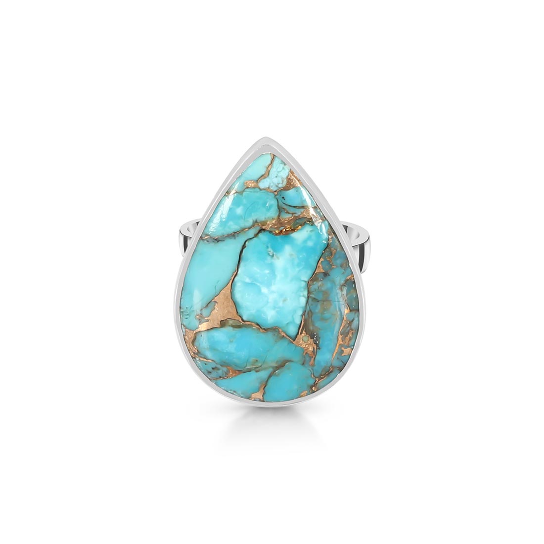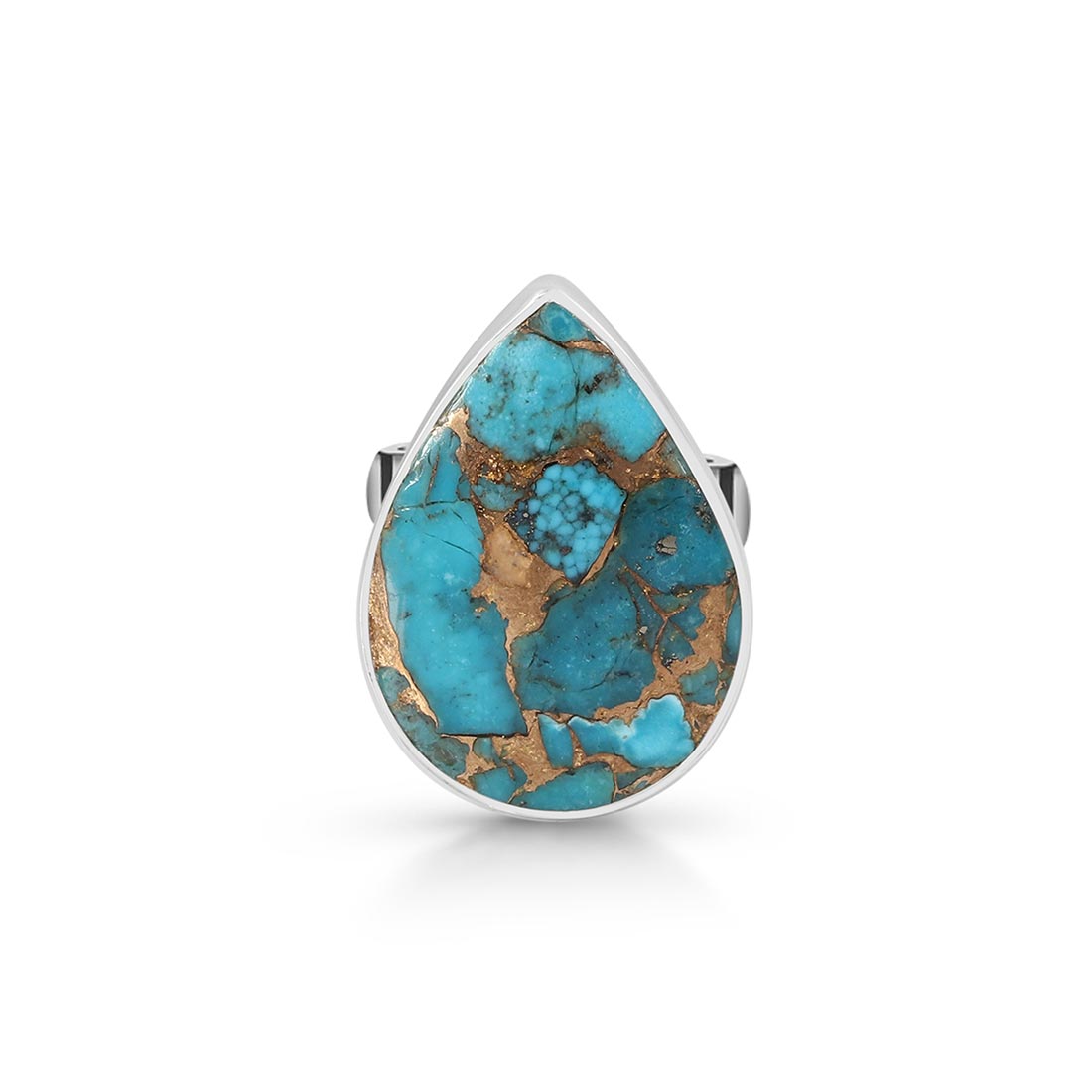 The copper Turquoise cabochon set into our 925 sterling silver jewelry will mainly aid in your meditation journey as it helps clear the mind of unwanted thoughts while at the same time aligning your energy centers or chakra fields. Moreover, some people believe that copper turquoise jewelry, like Copper turquoise rings, can help improve the immune system and ease physical ailments. It is also ascribed with properties believed to enhance creativity and problem-solving skills. Many individuals feel a personal connection and sense of solace when wearing a copper turquoise ring or copper turquoise pendant because of its perceived metaphysical benefits.
