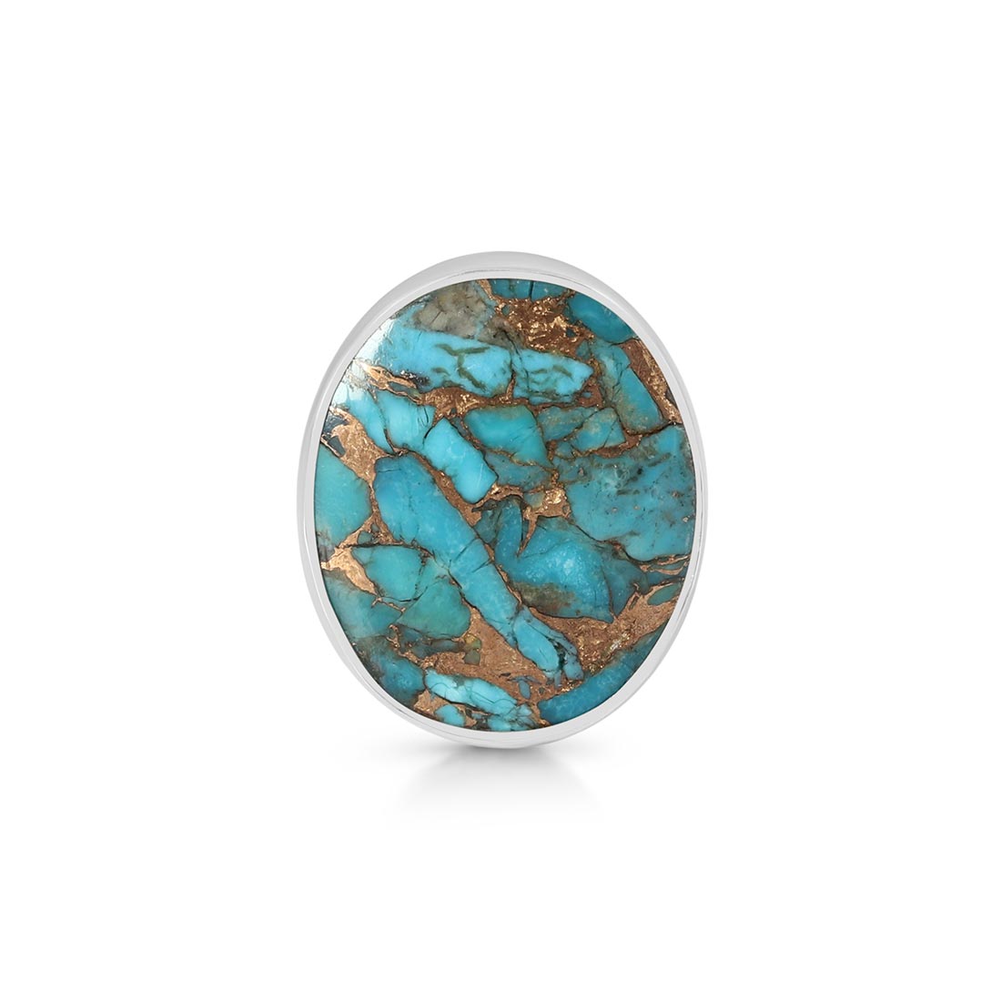 Copper turquoise is a gemstone that is produced by treating turquoise with copper salts. This treatment creates veins of copper that wind their way through the stone, giving the gemstone a unique, striking look. The blue-green tones of the turquoise contrast beautifully with the reddish hues of the copper, making copper turquoise a much sought-after material for crafting jewelry. Copper turquoise is thought to have healing properties that encourage balance, positive energy, and wisdom. It is frequently used in meditative practices for its grounding and calming effects. Copper turquoise jewelry is highly desired as an aesthetically pleasing and potentially therapeutic gemstone. In fashion and accessories, copper turquoise is often used to create one-of-a-kind pieces such as Copper turquoise rings, pendants, earrings, and bracelets.