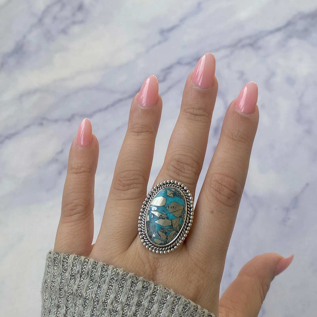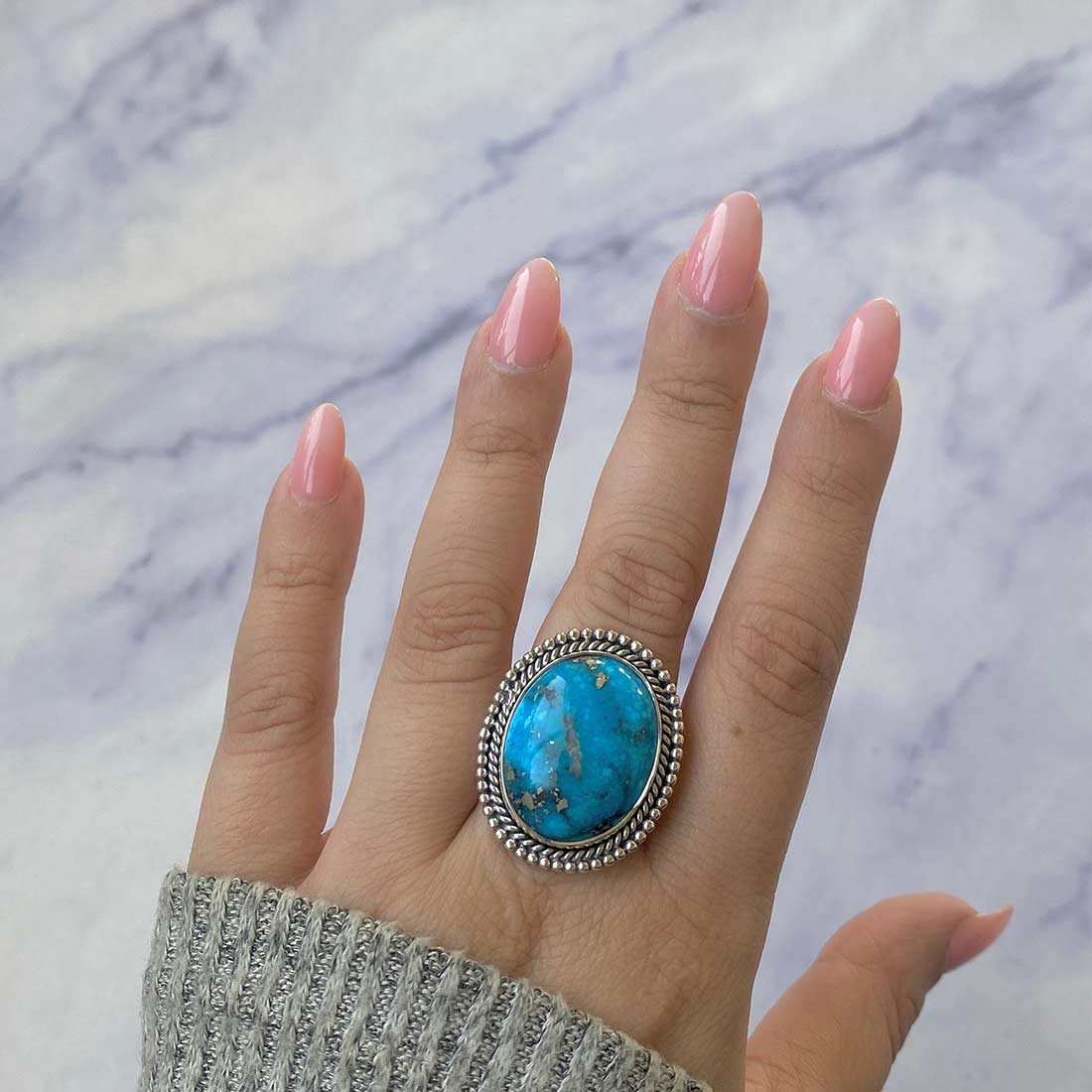 Layering: Engage the other rings into your turquoise rings and stack it with Turquoise bracelets that have similar or different designs or patterns. Stacking rings leads to creativity and various ways to edit them to retrieve the most suitable style they desire.