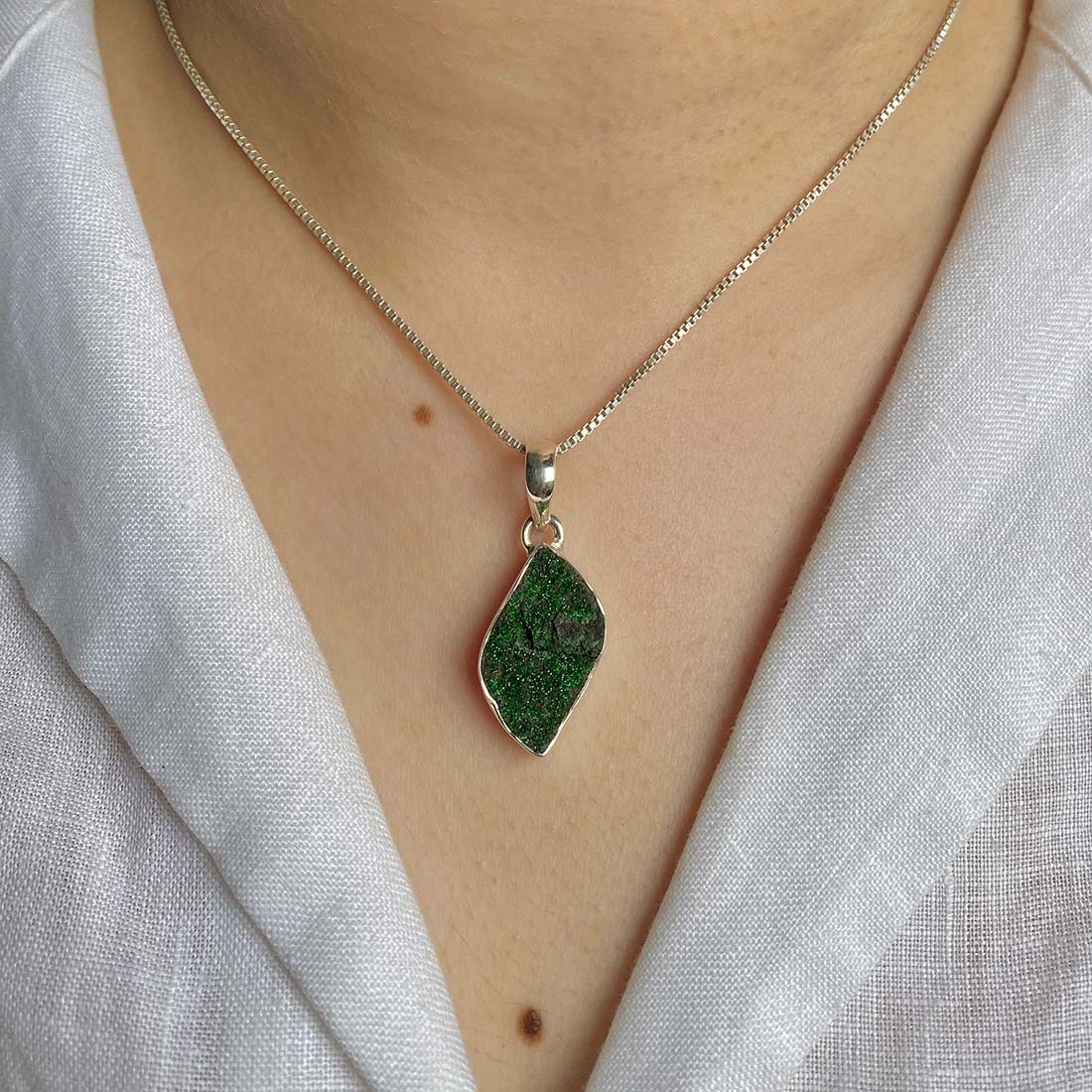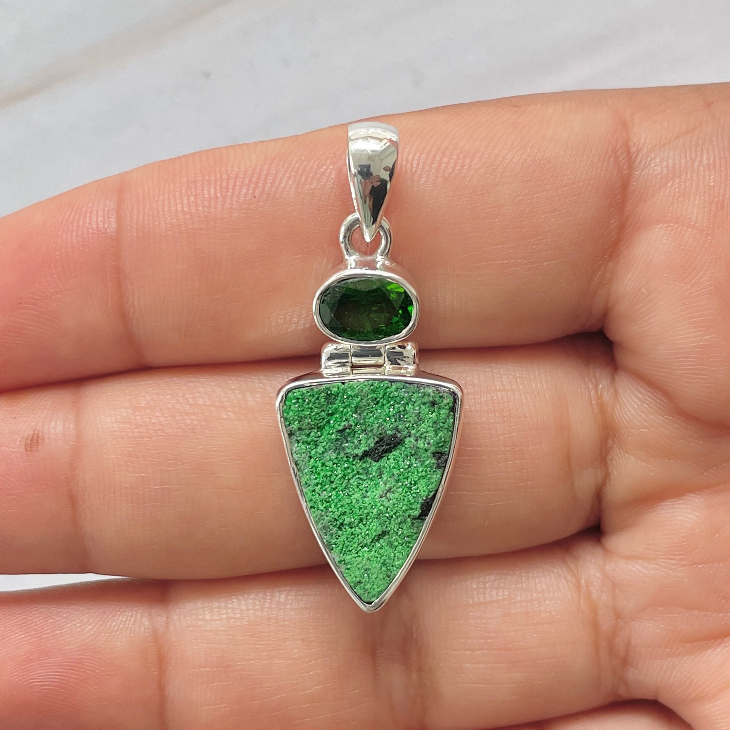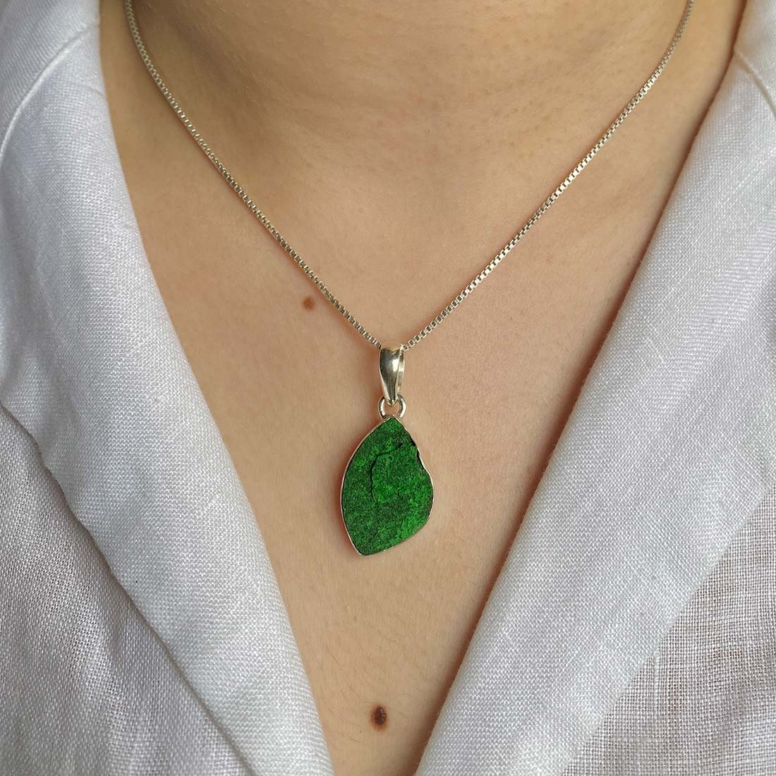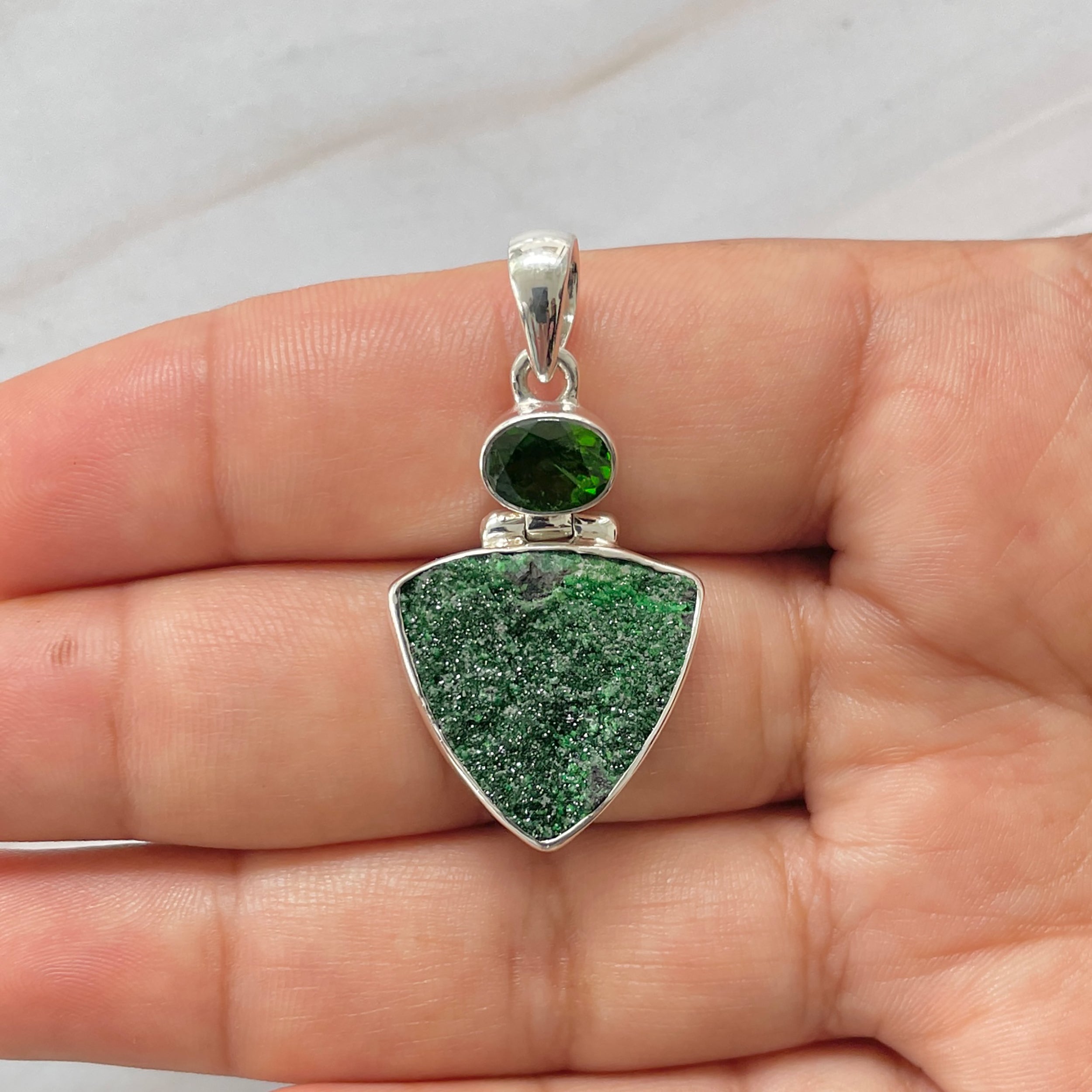 Let’s adorn your statement uvarovite pendant with style. Whether you are looking for a jewelry piece for an office party, a birthday or an anniversary, this enthralling green jewel will set fire on stage. Everywhere, everyone will just roam around to ask where you got this astonishing neckpiece from because it is purely handmade and curated in authentic 925 sterling silver.