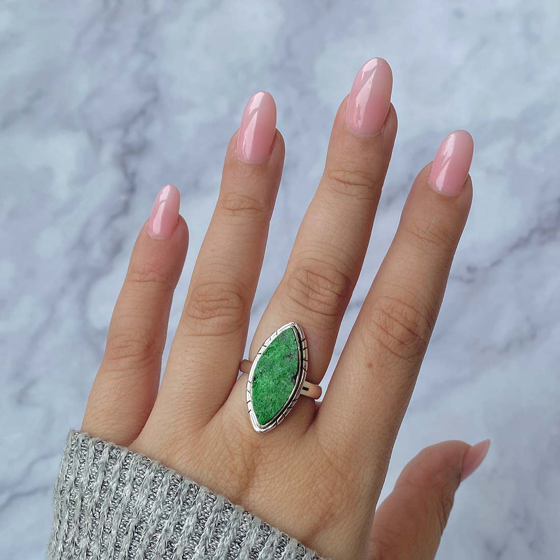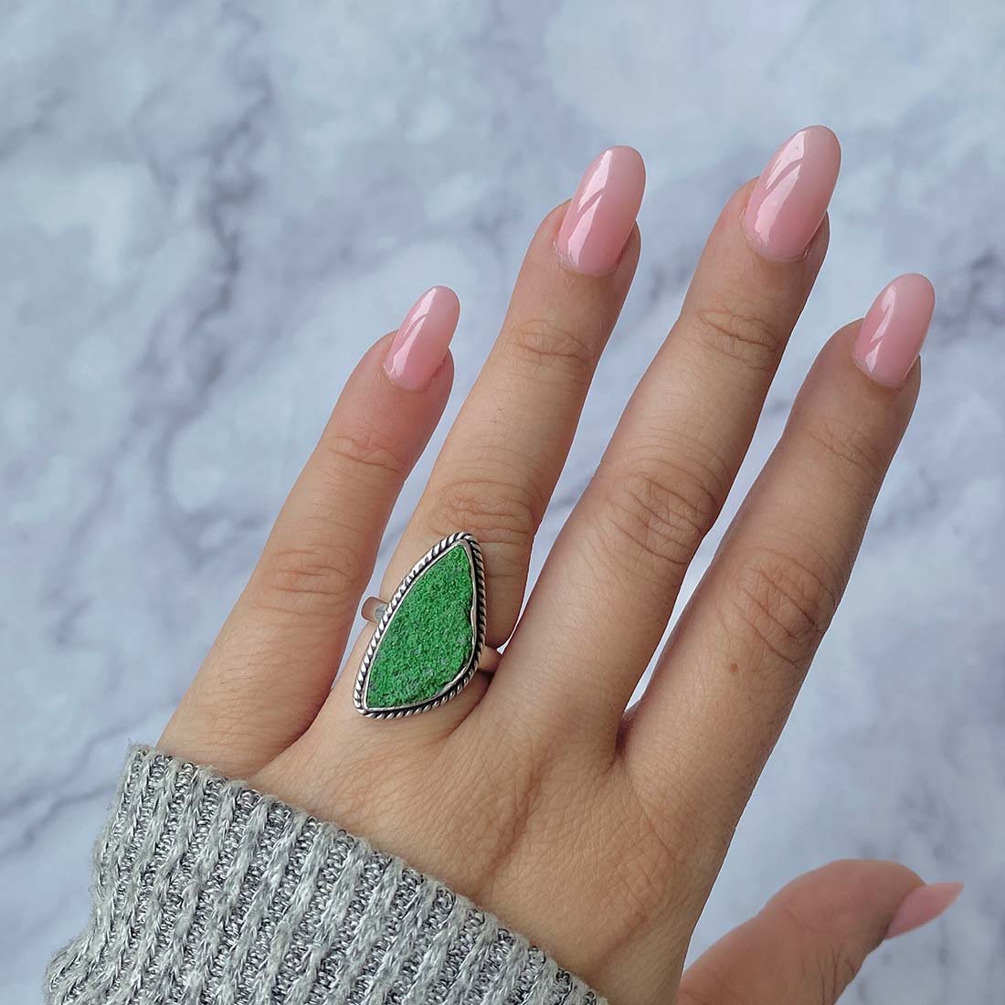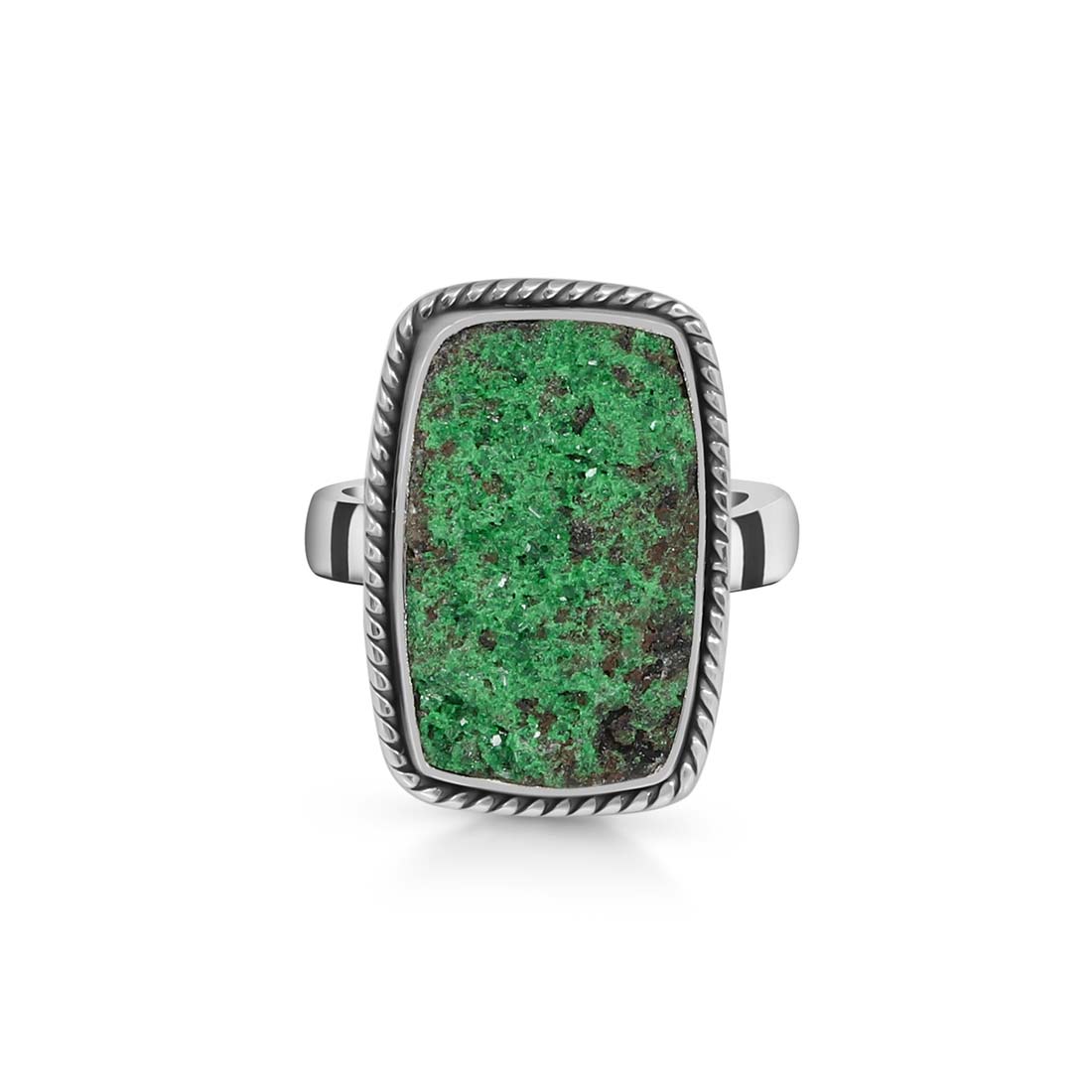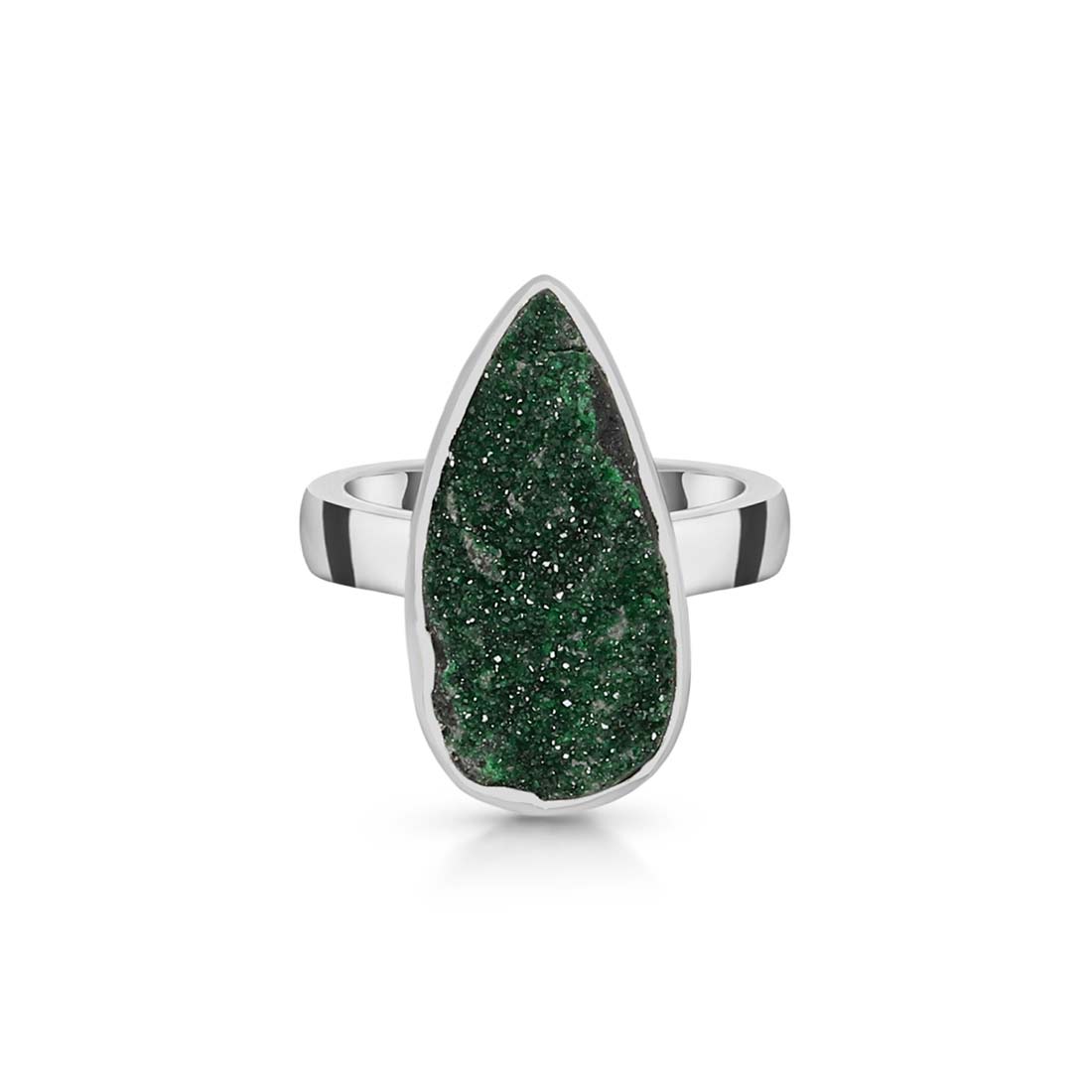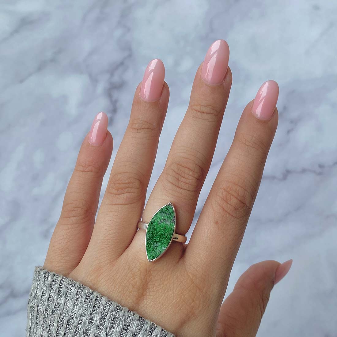 Before leaving for an important event, we don't forget to check out ourselves one last time to ensure that we're dressed properly or whether our Jewelry complements our outfit. It signifies how influential Jewelry can be; after all, it's all in the details. Some say shoes or handbags help you make a noticeable arrival, but we beg to differ. Undoubtedly, Jewelry is an essential addition to everyone's wardrobe that lets us accentuate our body features, and pleasingly flaunt them, like wrist, fingers, ears, or neck. If you're also a gem enthusiast, we would love to introduce you a charismatic gemstone, Uvarovite, that can effortlessly create a sumptuous and unique look to reflect the style. Its brilliant emerald green color theme infused within a granulated and Druzy surface makes the exceptional statement Uvarovite rings you can ever desire.