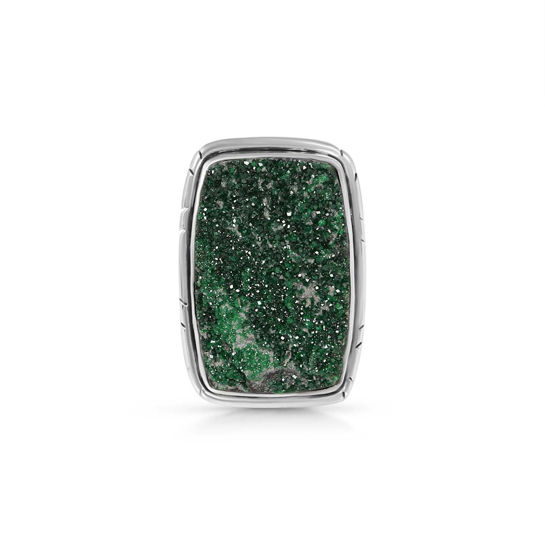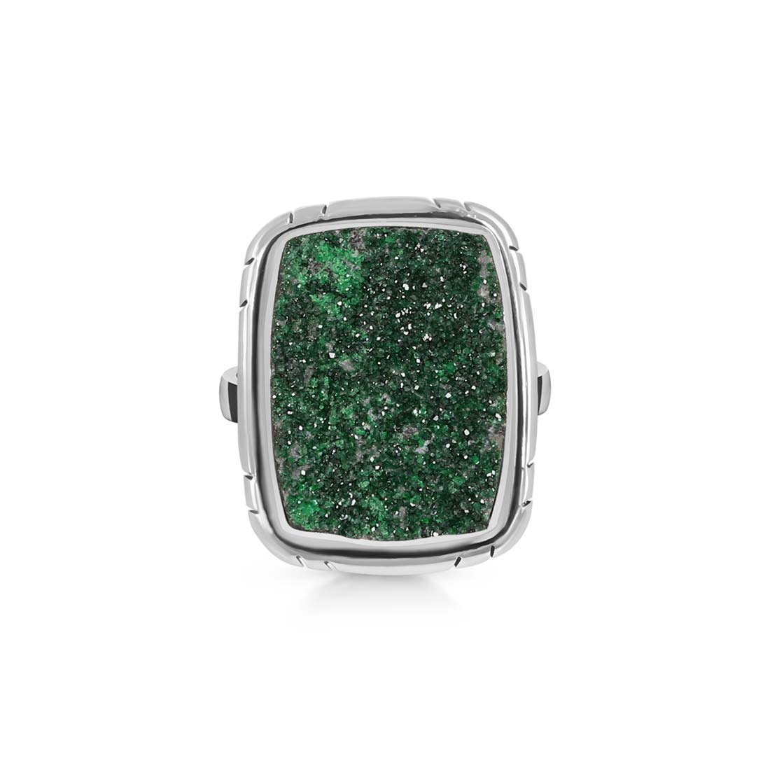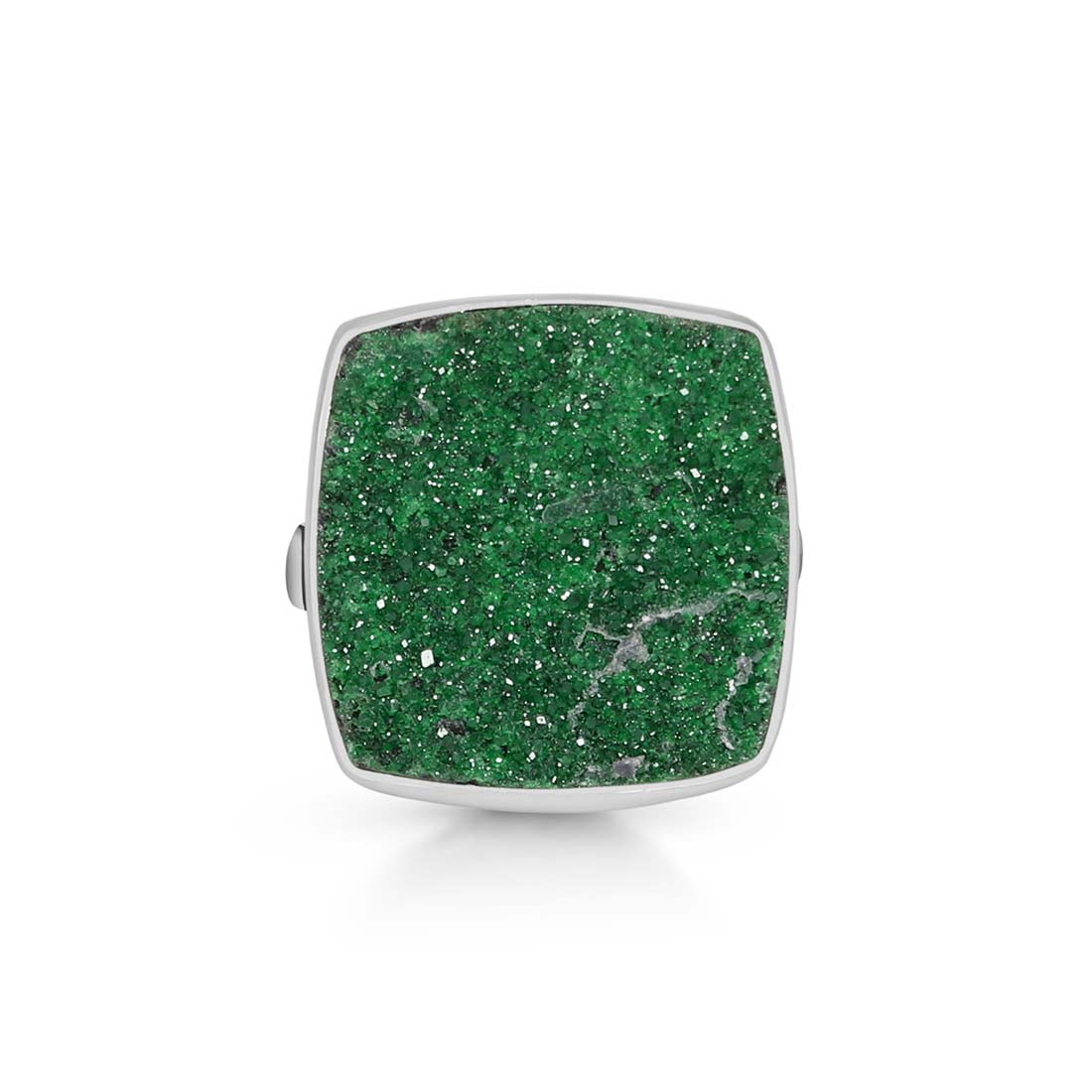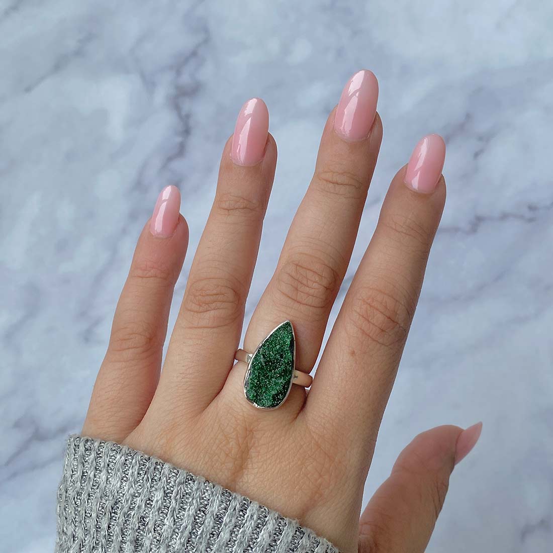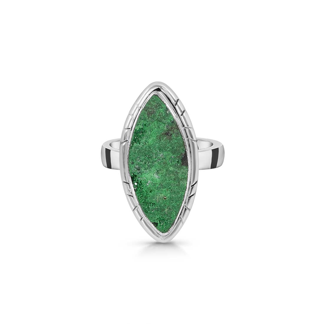 Before leaving for an important event, we don't forget to check out ourselves one last time to ensure that we're dressed properly or whether our Jewelry complements our outfit. It signifies how influential Jewelry can be; after all, it's all in the details. Some say shoes or handbags help you make a noticeable arrival, but we beg to differ. Undoubtedly, Jewelry is an essential addition to everyone's wardrobe that lets us accentuate our body features, and pleasingly flaunt them, like wrist, fingers, ears, or neck. If you're also a gem enthusiast, we would love to introduce you a charismatic gemstone, Uvarovite, that can effortlessly create a sumptuous and unique look to reflect the style. Its brilliant emerald green color theme infused within a granulated and Druzy surface makes the exceptional statement Uvarovite rings you can ever desire.