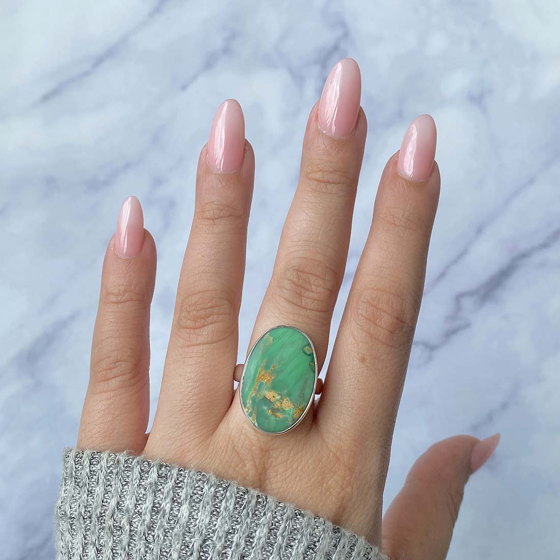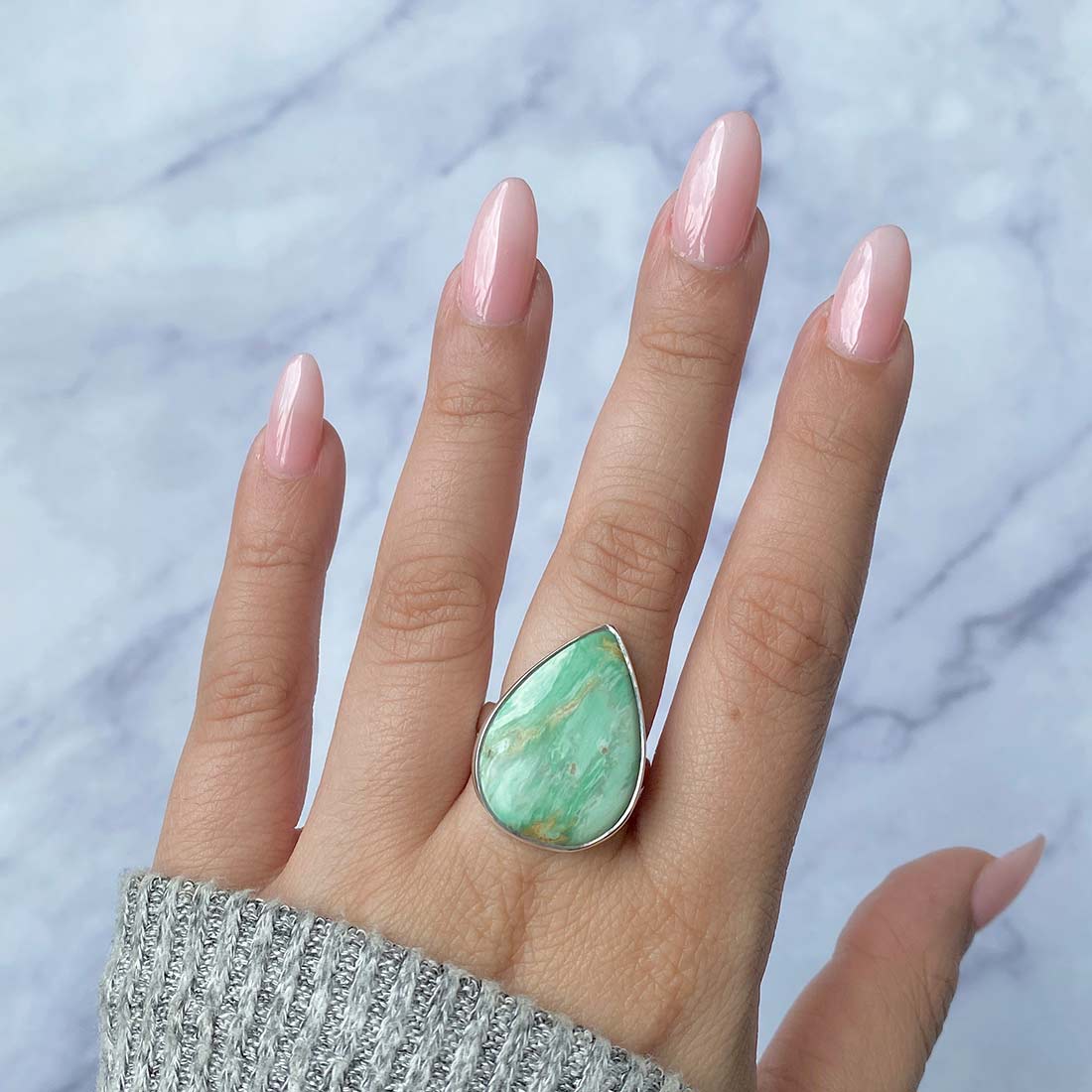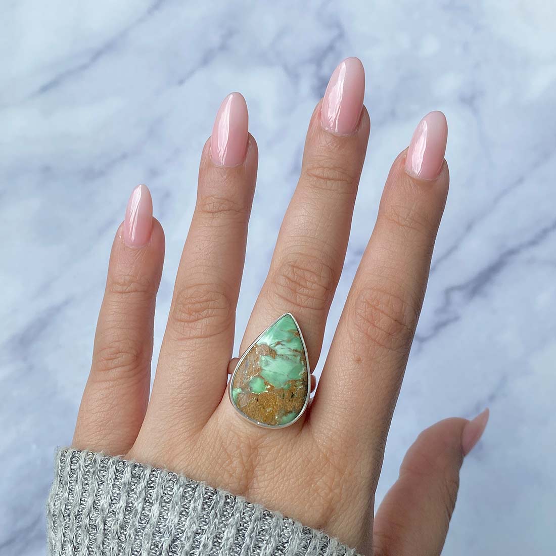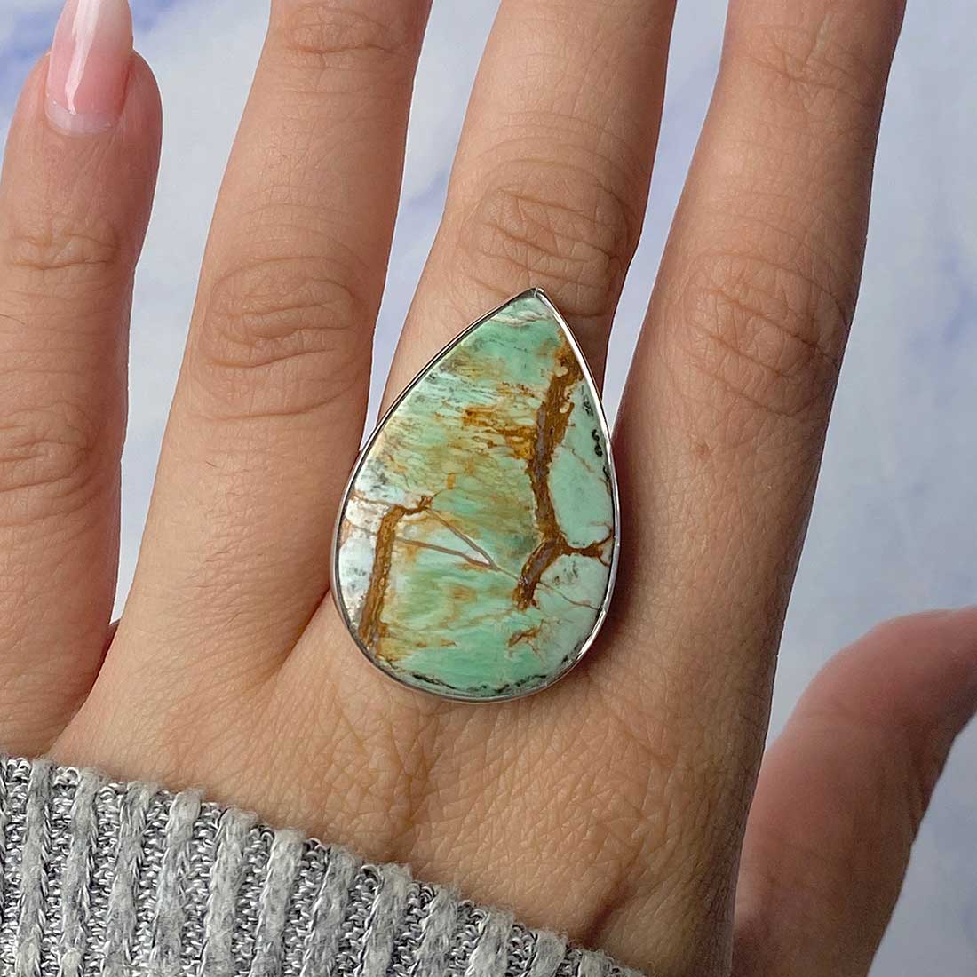 So, now that you know everything about the variscite gemstone and the multiple ways in which you can style a variscite ring, we would like to ask you – do you want to purchase beautiful variscite rings that are all handmade and one-of-a-kind? Would you prefer buying statement variscite rings, that feature variscite stones in different shapes and different patterns? One more interesting fact: many of these rings are adjustable, and because of this, you don’t have to worry about the size of the ring.