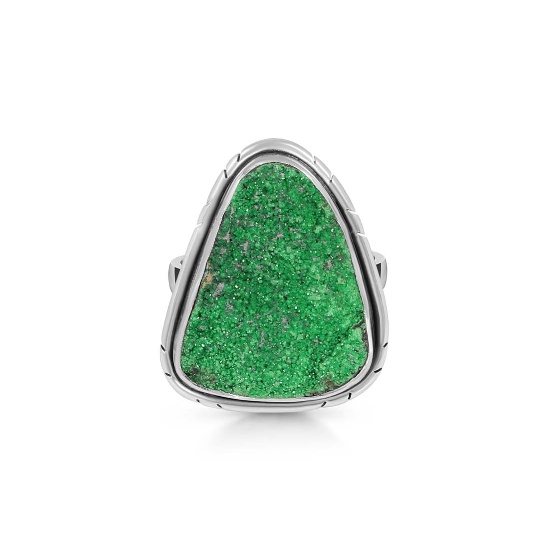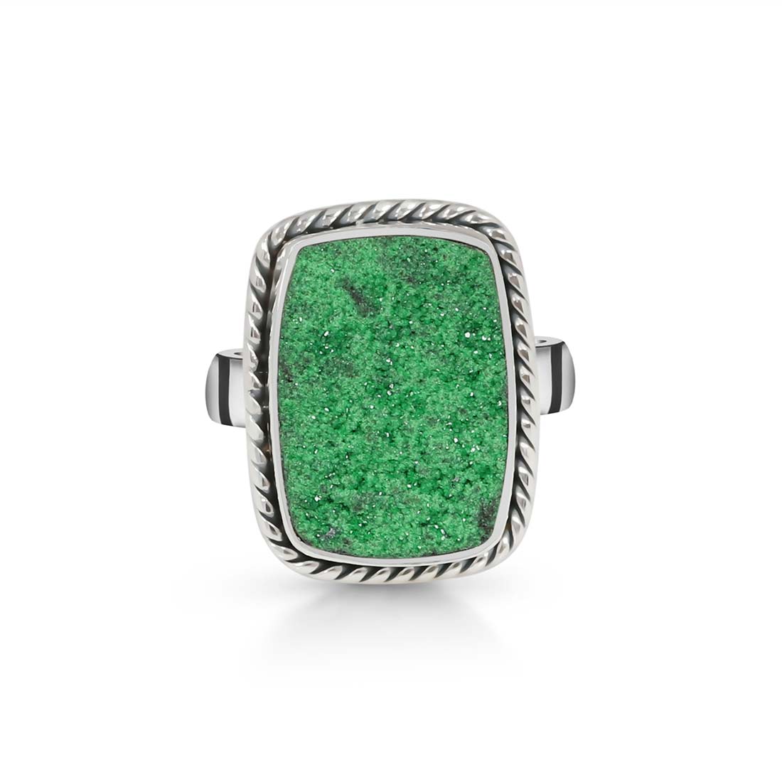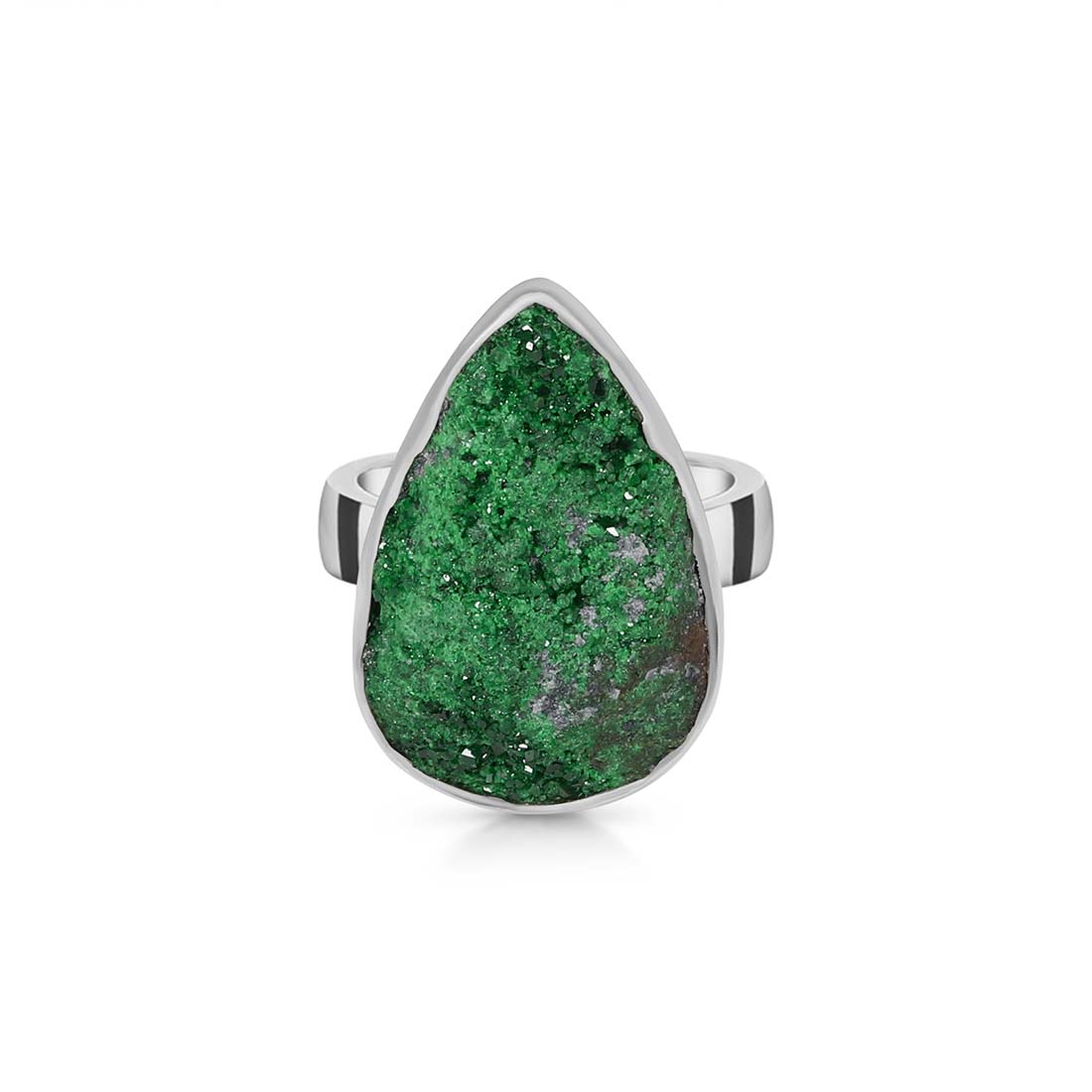 Although uvarovite does occur in extremely small crystals, which is rare, these crystals are not big enough for jewelry purposes. This is why the druzy form of uvarovite is used in making jewelry. In crystal form, uvarovite ranges from transparent to translucent, however, the druzy form which is used in making uvarovite jewelry is opaque.