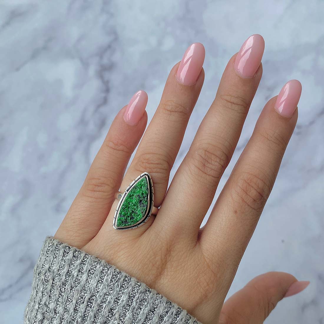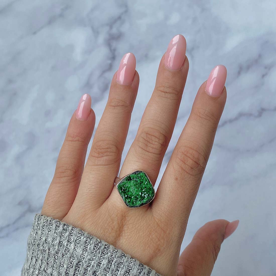 When it comes to love and relationships, uvarovite allows you to get over the feelings of inadequacy, thus turning you more secure and empowering you to trust the right kind of people. It also enables individuals to shift from a scarcity mindset to an abundance mindset when it comes to money, thus allowing them to enjoy their life. Uvarovite makes you more confident, making you have a firm belief in your strengths and abilities. Last but not least, wearing uvarovite jewelry will inspire you to seek positive changes in life, thus making your overall life better.