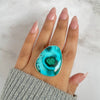 - 925 Sterling Silver - Main Stone :- Azurite Malachite - Stone Details :- Fancy-Cab - Ring Head Size :- 35x28 mm - Ring Size :- Adjustable - Authentic Sagacia Statement Azurite Malachite Ring-(AZM-R-30.)