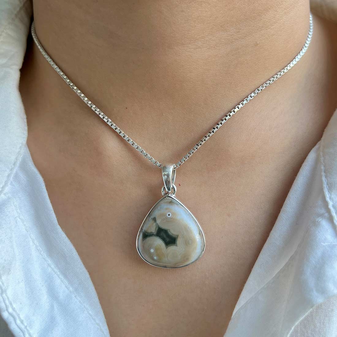 The most exciting thing about Ocean Jasper Pendants is its versatility of embellishing any attire whether you’re styling yourself on a regular working day or any special occasion of weddings, anniversaries, birthdays, parties, and engagements. Generally, this gorgeous pendant is paired with a simple white top, denim jacket, black gown, or red saree to enhance the natural beauty and let the pendant stand out in the crowd. Explore your actual personality in the spiritual world and enjoy the amazing artistry of nature in your journey with mesmerizing Ocean Jasper Pendants.